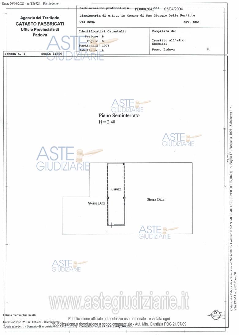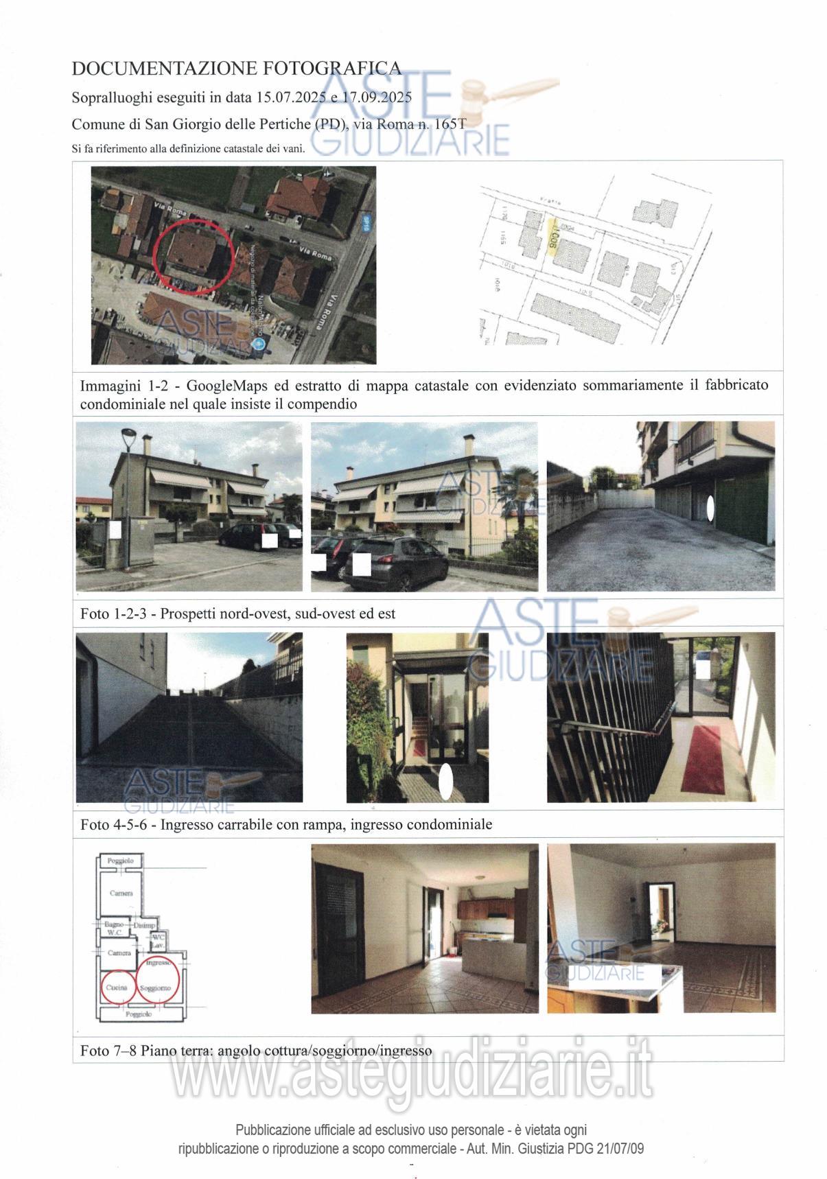 Vendita all'asta Senza incanto, con gara telematica sincrona - LOTTO UNICO: LOTTO UNICO - Intera piena proprietà di porzioni immobiliari facenti parte del fabbricato condominiale del tipo isolato sito in Comune di San Giorgio delle Pertiche (PD), via Roma n. 165 /Ter, e precisamente: appartamento per civile abitazione al piano rialzato e garage doppio al piano seminterrato. L’appartamento è composto da ingresso /soggiorno / angolo cottura, disimpegno, bagno, Wc / lavanderia, due camere e due poggioli. Libero da persone. Ordine di Liberazione in fase di attuazione. Prezzo base € 55.800,00 (offerta minima € 41.850,00). Data vendita 10/06/2026 ore 11:00. Giudice Paola Rossi. Professionista delegato alla vendita Avv. Ana Elisa Marti Garro - Email "martigarro.aste@gmail.com"; Tel. 0496892448. Custode Giudiziario Ana Elisa Marti Garro. Rif. Tribunale di Padova - Espropriazione immobiliare (cartabia) n. 364/2024