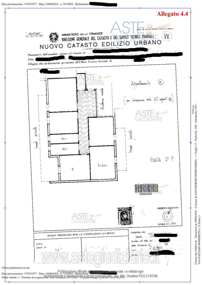 Vendita all'asta Senza incanto, con gara telematica asincrona - LOTTO UNICO: Piena proprietà di un appartamento sito nel Comune di San Giorgio Jonico (TA) alla ViaDonizetti n. 12. Prezzo base € 78.517,50 (offerta minima € 58.888,12). Data inizio operazioni di vendita: 10/02/2026 ore 16:00. Professionista delegato alla vendita Avv. Cosimo Buonfrate. Custode Giudiziario Ivg - Email "ivgta.visiteimmobili@gmail.com". Rif. Tribunale di Taranto - Espropriazione immobiliare (cartabia) n. 150/2024