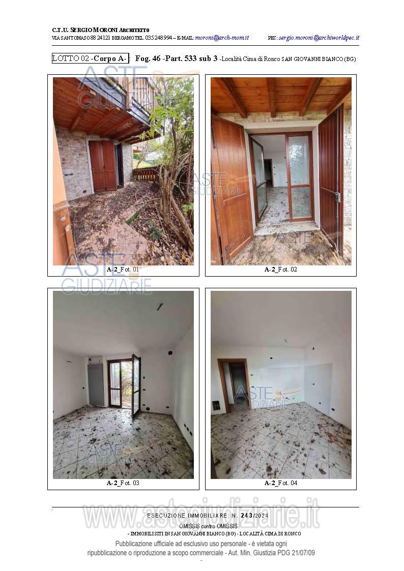 Vendita all'asta Senza incanto, con gara telematica asincrona - LOTTO 2: Appartamento bilocale a piano terra con due aree esterne esclusive. Prezzo base € 25.800,00 (offerta minima € 19.350,00). Data inizio operazioni di vendita: 11/12/2025 ore 15:00. Professionista delegato alla vendita Avv. Francesca Donati - Email "francesca.donati@dfgs.it"; Tel. 0352285711. Custode Giudiziario Avv. Francesca Donati - Email "francesca.donati@dfgs.it"; Tel. 0352285711. Rif. Tribunale di Bergamo - Espropriazione immobiliare (cartabia) n. 243/2024