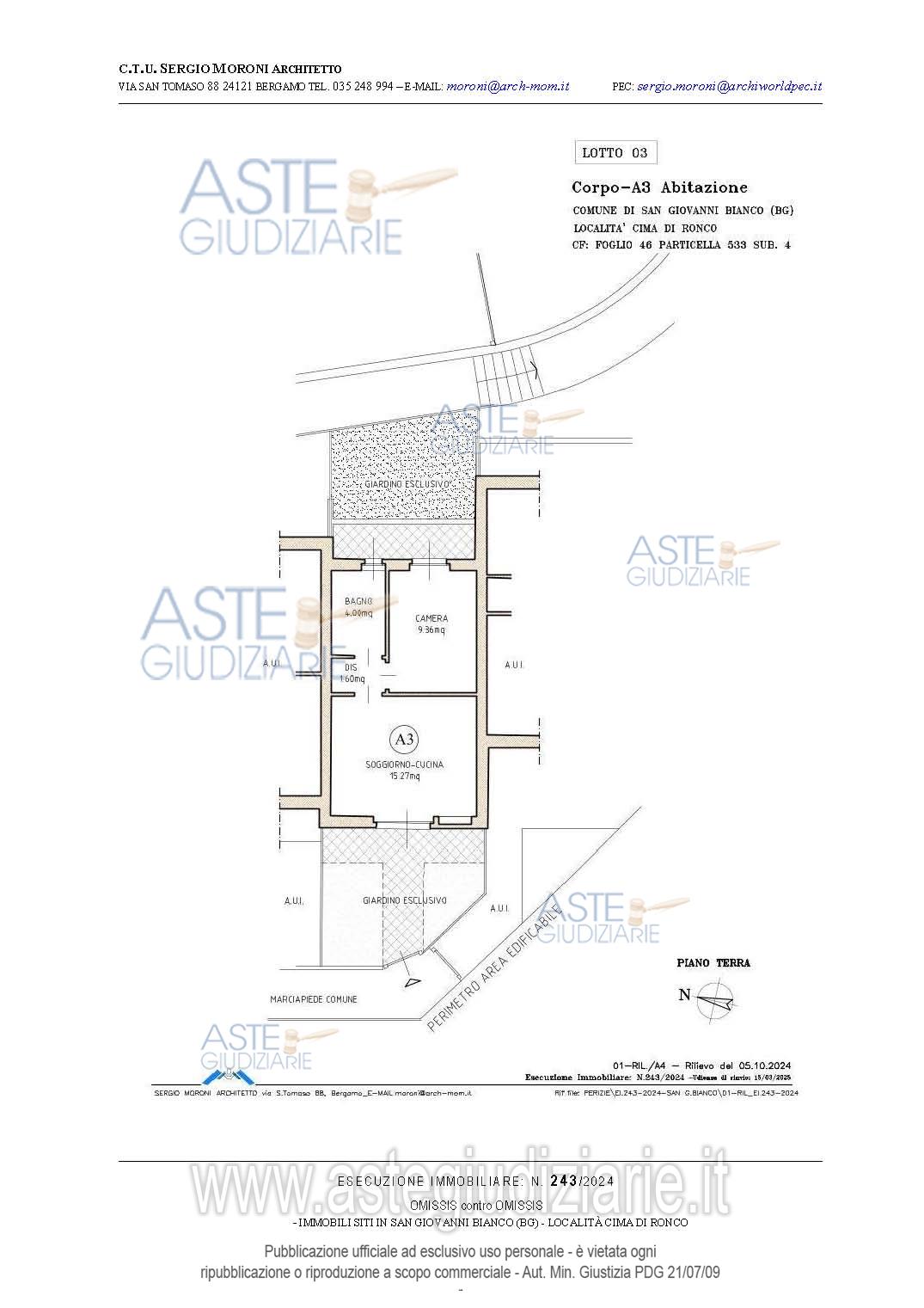 Vendita all'asta Senza incanto, con gara telematica asincrona - LOTTO 3: Appartamento bilocale a piano terra con due aree esterne esclusive. Prezzo base € 19.350,00 (offerta minima € 14.512,50). Data inizio operazioni di vendita: 26/03/2026 ore 15:00. Professionista delegato alla vendita Avv. Francesca Donati - Email "francesca.donati@dfgs.it"; Tel. 0352285711. Custode Giudiziario Avv. Francesca Donati - Email "francesca.donati@dfgs.it"; Tel. 0352285711. Rif. Tribunale di Bergamo - Espropriazione immobiliare (cartabia) n. 243/2024
