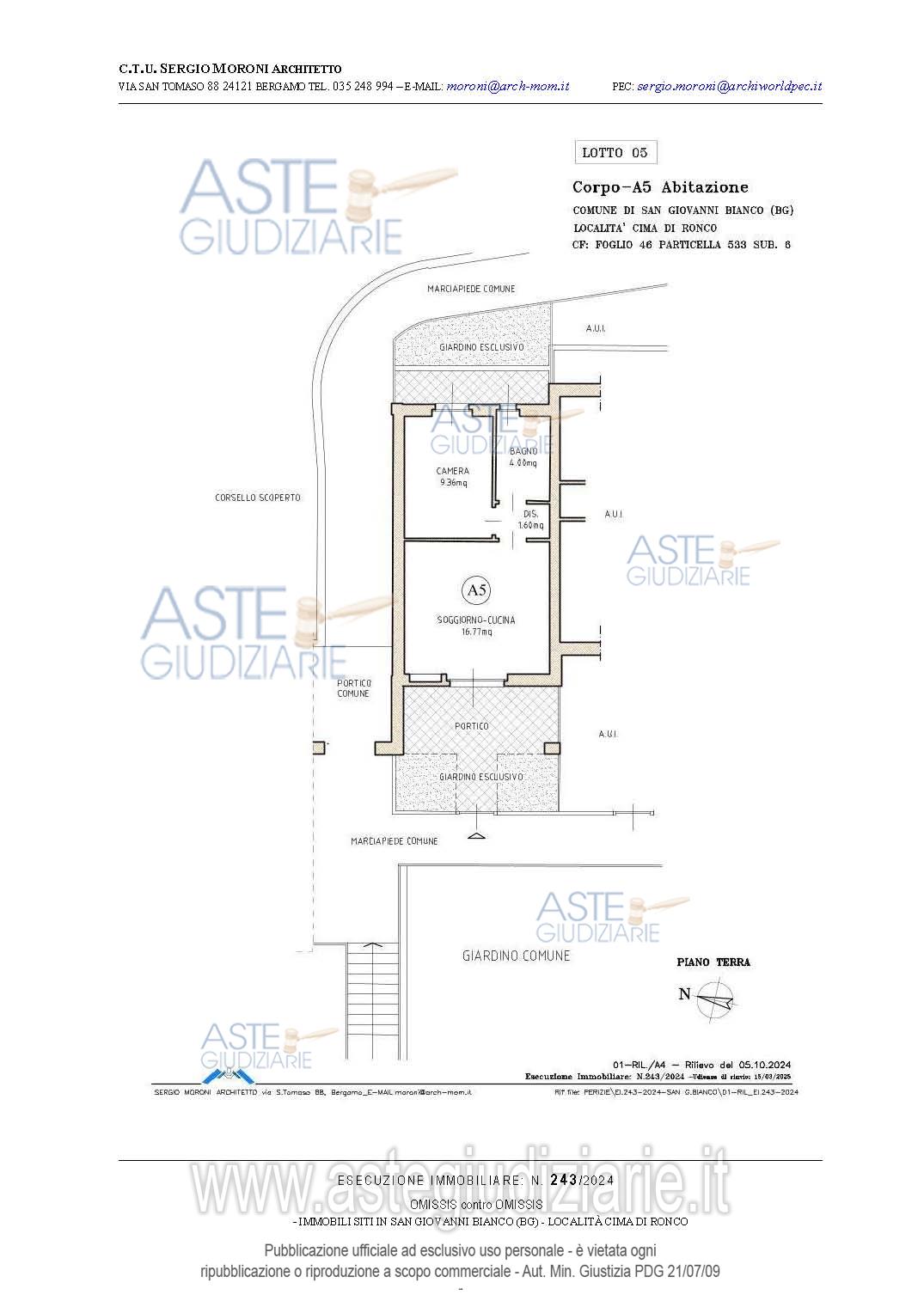 Vendita all'asta Senza incanto, con gara telematica asincrona - LOTTO 5: Appartamento bilocale a piano terra con due aree esterne esclusive, e Autorimessa al piano interrato della consistenza di mq.15. Prezzo base € 27.375,00 (offerta minima € 20.531,25). Data inizio operazioni di vendita: 26/03/2026 ore 15:00. Professionista delegato alla vendita Avv. Francesca Donati - Email "francesca.donati@dfgs.it"; Tel. 0352285711. Custode Giudiziario Avv. Francesca Donati - Email "francesca.donati@dfgs.it"; Tel. 0352285711. Rif. Tribunale di Bergamo - Espropriazione immobiliare (cartabia) n. 243/2024