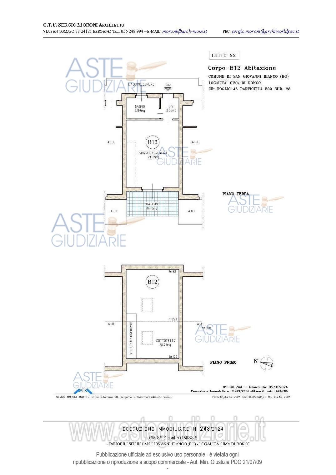 Vendita all'asta Senza incanto, con gara telematica asincrona - LOTTO 22: Appartamento bilocale al piano primo, con balcone e locale sottotetto non abitabile, nonché Autorimessa al piano secondo interrato della consistenza di mq.21. Prezzo base € 46.800,00 (offerta minima € 35.100,00). Data inizio operazioni di vendita: 11/12/2025 ore 15:00. Professionista delegato alla vendita Avv. Francesca Donati - Email "francesca.donati@dfgs.it"; Tel. 0352285711. Custode Giudiziario Avv. Francesca Donati - Email "francesca.donati@dfgs.it"; Tel. 0352285711. Rif. Tribunale di Bergamo - Espropriazione immobiliare (cartabia) n. 243/2024