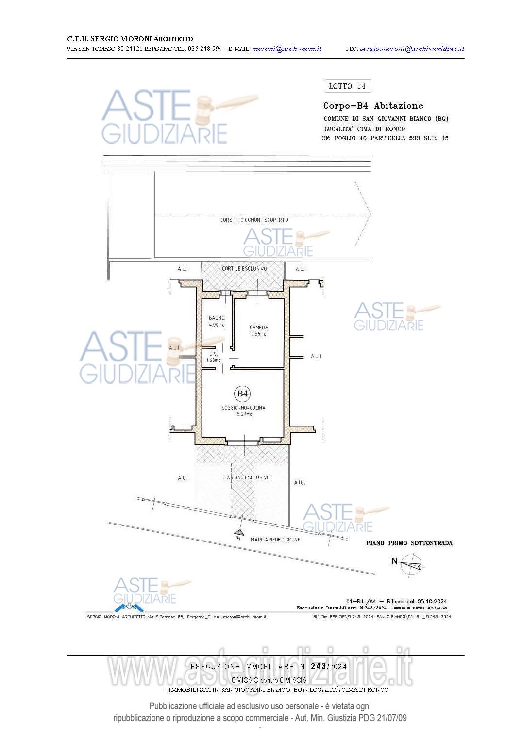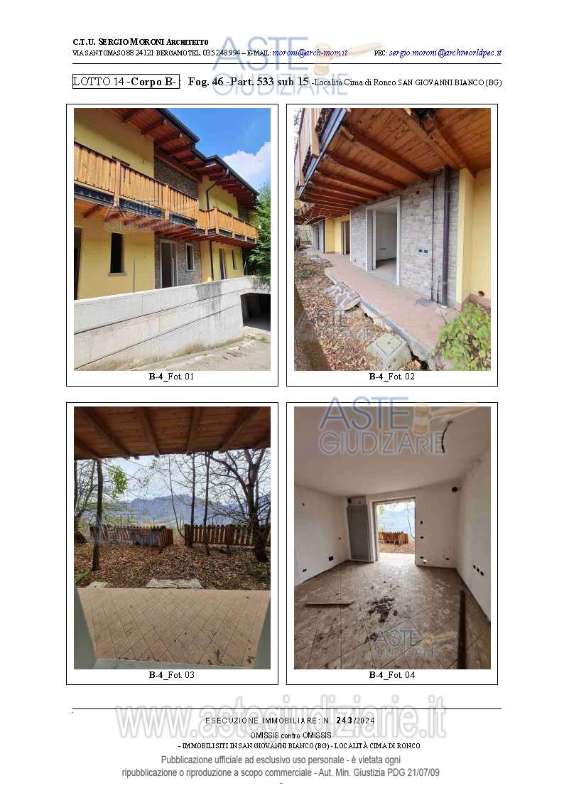 Vendita all'asta Senza incanto, con gara telematica asincrona - LOTTO 14: Appartamento bilocale a piano terra con due aree esterne esclusive. Prezzo base € 14.175,00 (offerta minima € 10.631,25). Data inizio operazioni di vendita: 26/03/2026 ore 15:00. Professionista delegato alla vendita Avv. Francesca Donati - Email "francesca.donati@dfgs.it"; Tel. 0352285711. Custode Giudiziario Avv. Francesca Donati - Email "francesca.donati@dfgs.it"; Tel. 0352285711. Rif. Tribunale di Bergamo - Espropriazione immobiliare (cartabia) n. 243/2024