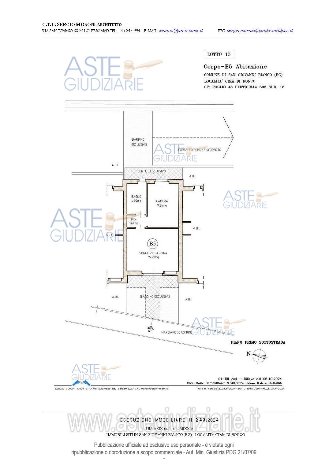 Vendita all'asta Senza incanto, con gara telematica asincrona - LOTTO 15: Appartamento bilocale a piano terra con due aree esterne esclusive. Prezzo base € 13.650,00 (offerta minima € 10.237,50). Data inizio operazioni di vendita: 26/03/2026 ore 15:00. Professionista delegato alla vendita Avv. Francesca Donati - Email "francesca.donati@dfgs.it"; Tel. 0352285711. Custode Giudiziario Avv. Francesca Donati - Email "francesca.donati@dfgs.it"; Tel. 0352285711. Rif. Tribunale di Bergamo - Espropriazione immobiliare (cartabia) n. 243/2024