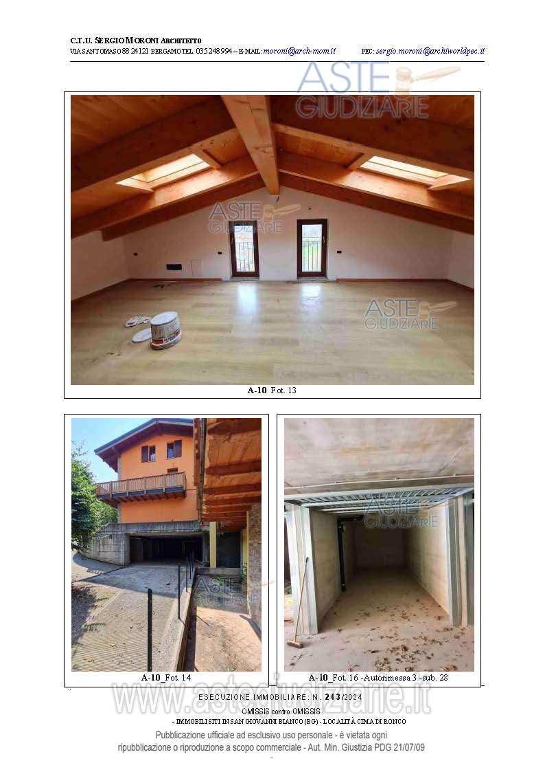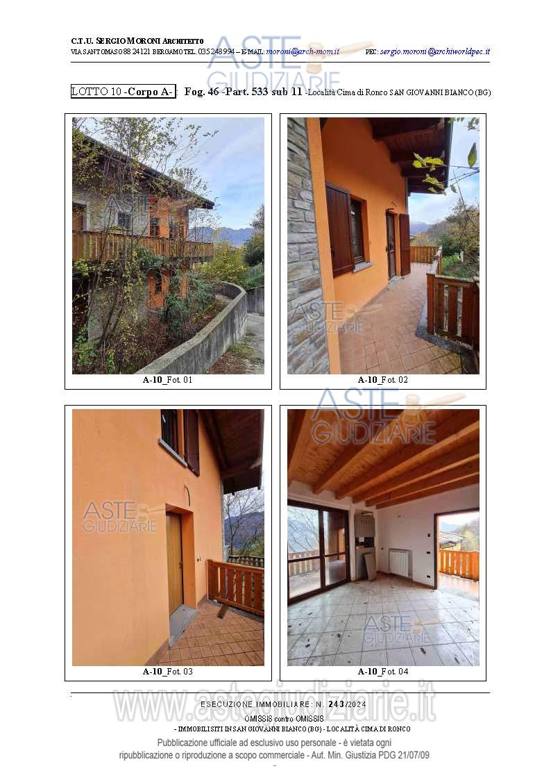 Vendita all'asta Senza incanto, con gara telematica asincrona - LOTTO 10: Appartamento trilocale al piano primo con due balconi e locale sottotetto non abitabile, nonché Autorimessa al piano interrato della consistenza di mq.15. Prezzo base € 48.825,00 (offerta minima € 36.618,75). Data inizio operazioni di vendita: 26/03/2026 ore 15:00. Professionista delegato alla vendita Avv. Francesca Donati - Email "francesca.donati@dfgs.it"; Tel. 0352285711. Custode Giudiziario Avv. Francesca Donati - Email "francesca.donati@dfgs.it"; Tel. 0352285711. Rif. Tribunale di Bergamo - Espropriazione immobiliare (cartabia) n. 243/2024