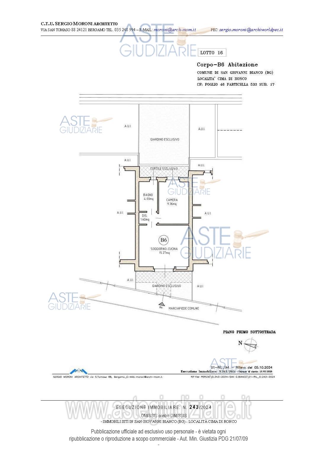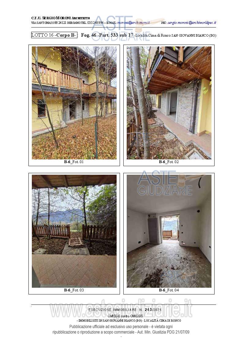 Vendita all'asta Senza incanto, con gara telematica asincrona - LOTTO 16: Appartamento bilocale a piano terra con due aree esterne esclusive. Prezzo base € 19.700,00 (offerta minima € 14.775,00). Data inizio operazioni di vendita: 11/12/2025 ore 15:00. Professionista delegato alla vendita Avv. Francesca Donati - Email "francesca.donati@dfgs.it"; Tel. 0352285711. Custode Giudiziario Avv. Francesca Donati - Email "francesca.donati@dfgs.it"; Tel. 0352285711. Rif. Tribunale di Bergamo - Espropriazione immobiliare (cartabia) n. 243/2024