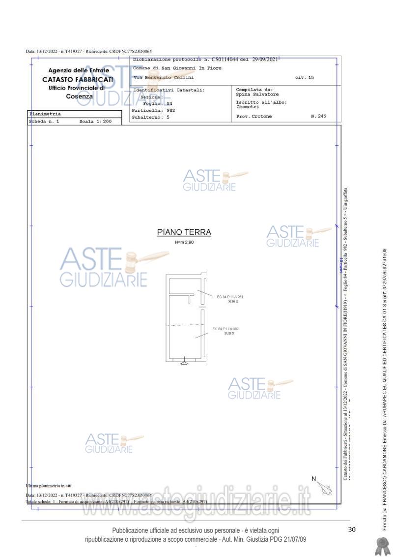 Rif. Tribunale di Cosenza - Esecuzione immobiliare post legge 80 n. 21/2022