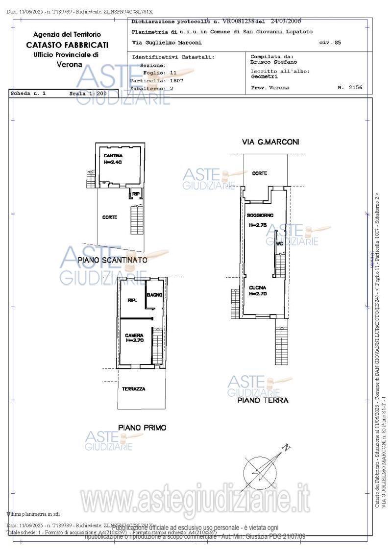 Vendita all'asta Senza incanto, con gara telematica sincrona mista - LOTTO UNICO: LOTTO UNICO - In Comune di San Giovanni Lupatoto (VR), Via Guglielmo Marconi n. 85, piena proprietà di porzione di immobile cielo terra di superficie totale calpestabile 110 mq oltre a 75 mq di corti e terrazze. Sono compresi nella vendita i proporzionali diritti di comproprietà su enti comuni e spazi di uso comune ai sensi dell’art. 1117 c.c., ivi compresa l’area di sedime e pertinenza del fabbricato. Prezzo base € 95.000,00 (offerta minima € 71.250,00). Data vendita 02/04/2026 ore 14:00. Giudice Dott. Francesco Fontana. Professionista delegato alla vendita Not. Laura Curzel - Email "notes@notariato.it"; Tel. 0458006661. Custode Giudiziario Istituto Vendite Giudiziarie Vegi Srls - Email "visiteimmobili@ivgverona.it"; Tel. 0459813484. Rif. Tribunale di Verona - Espropriazione immobiliare (cartabia) n. 46/2025