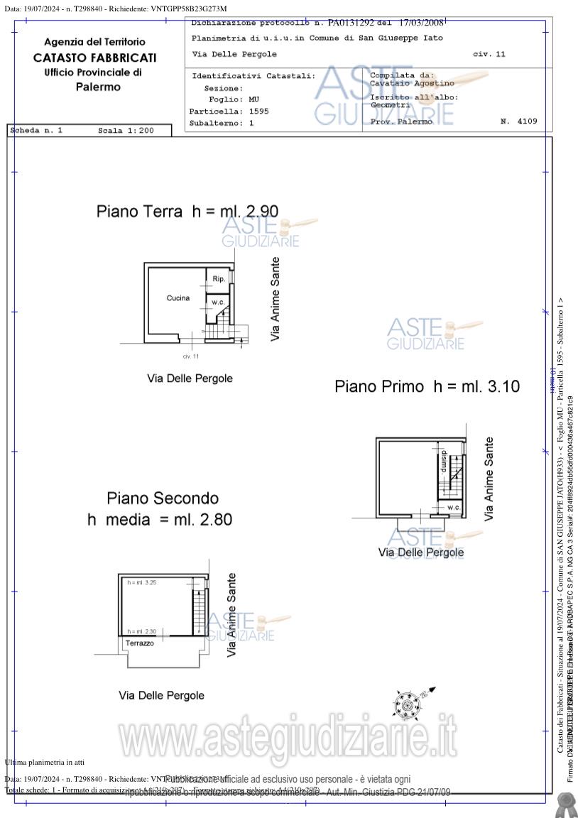 Vendita in attesa dell'emissione del nuovo bando d'asta. LOTTO 0: piena proprietà dell’abitazione di tipo popolare composto: al piano terra, da soggiorno, vano adibito a cucinino, w.c. bagno e scala interna per il collegamento ai piani superiori; al piano primo, da zona letto, w.c. e balcone; al piano secondo, da vano sottotetto con terrazzo coperto che si estende oltre il filo del fabbricato. Ultimo prezzo base € 17.634,38 (offerta minima € 13.225,80). Giudice Dott. Valentina Imperiale. Professionista delegato alla vendita Avv. Giuseppe Serio - Email "serio.giuseppe@libero.it"; Tel. 0915089482. Custode Giudiziario Avv. Giuseppe Serio - Email "serio.giuseppe@libero.it"; Tel. 0915089482. Rif. Tribunale di Palermo - Espropriazione immobiliare (cartabia) n. 330/2023