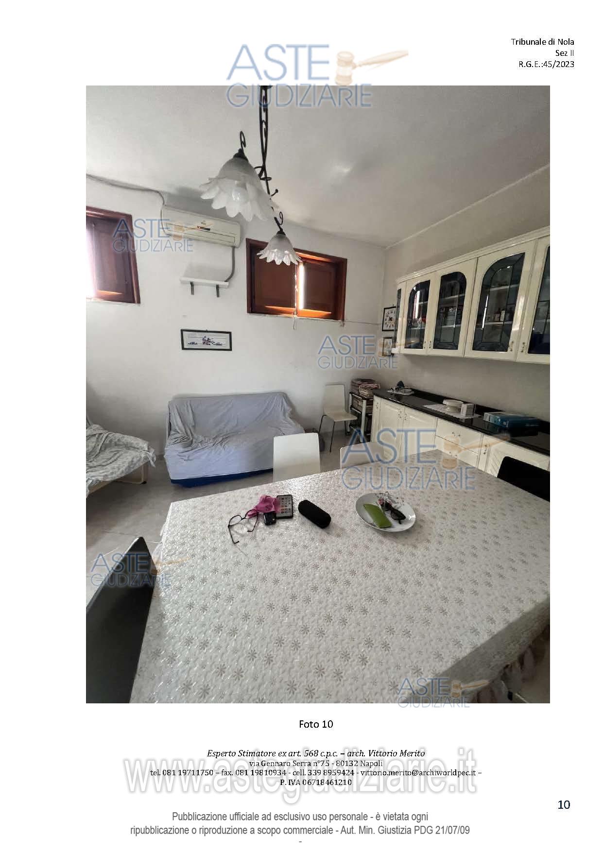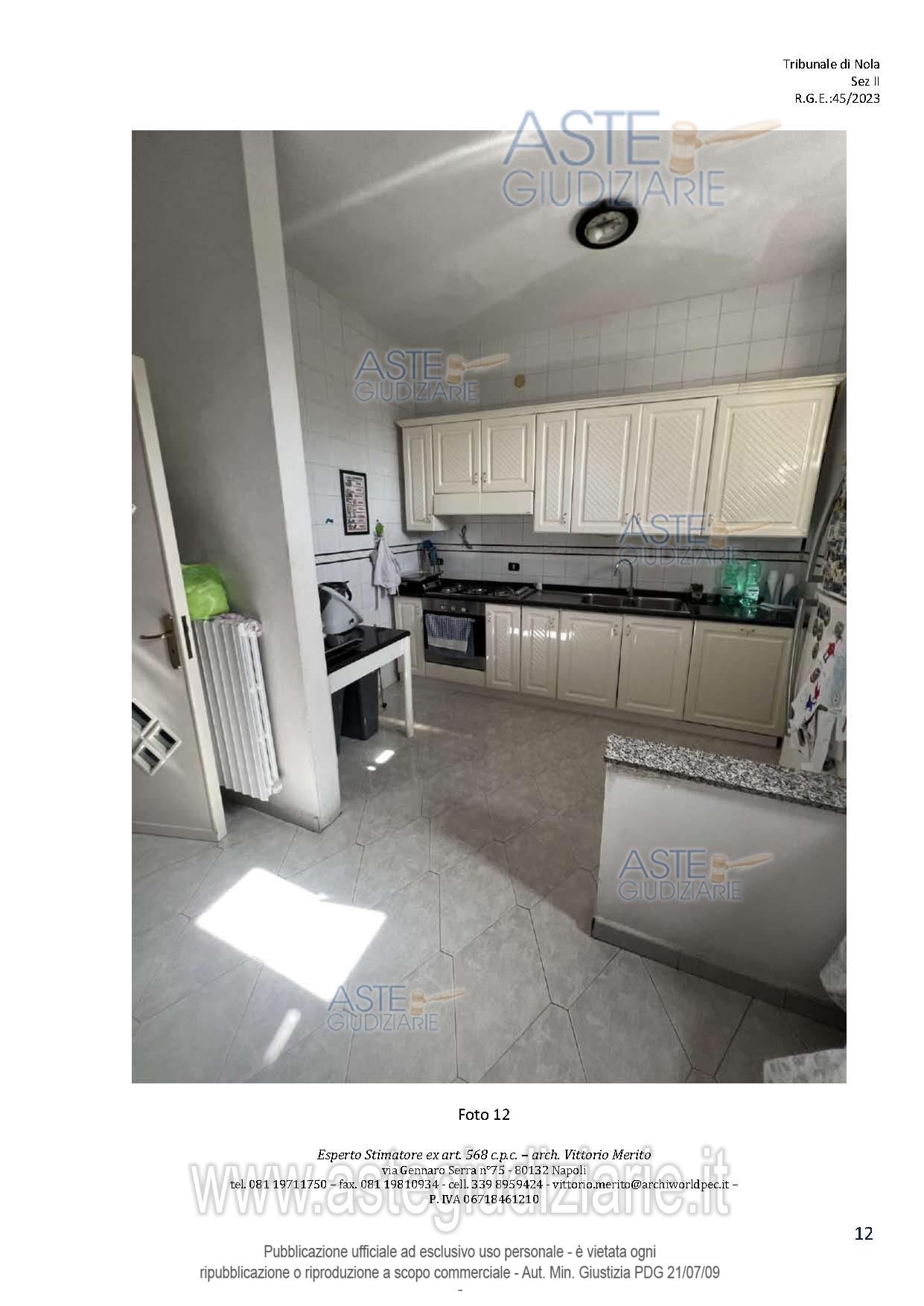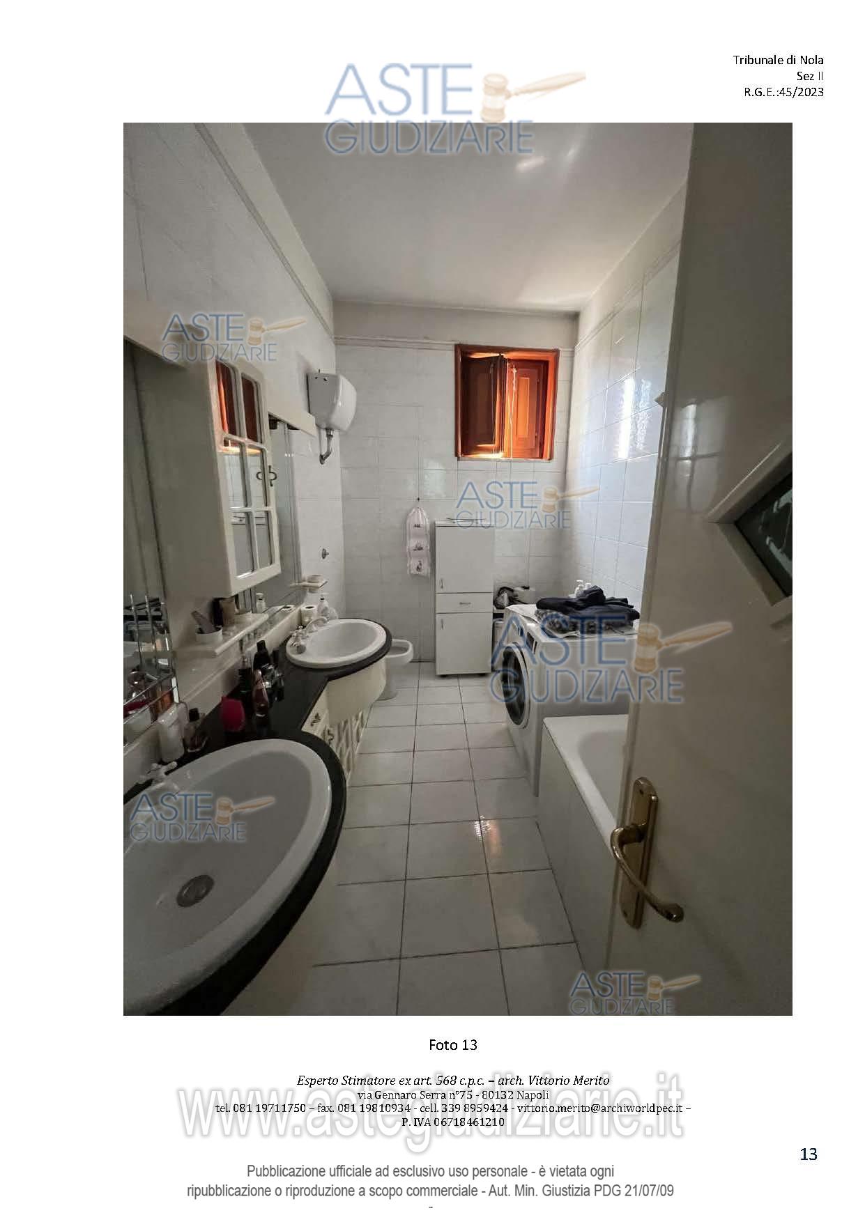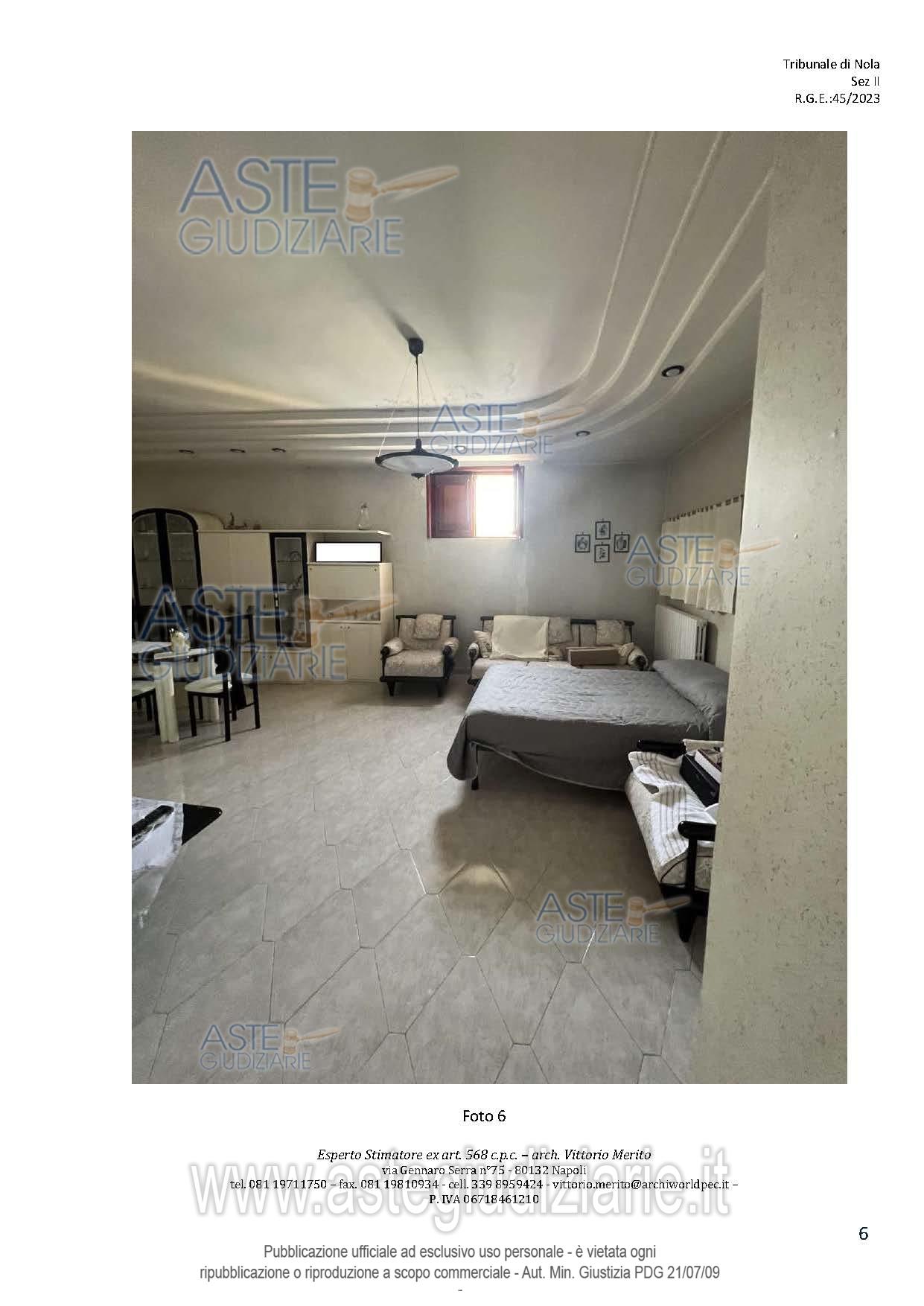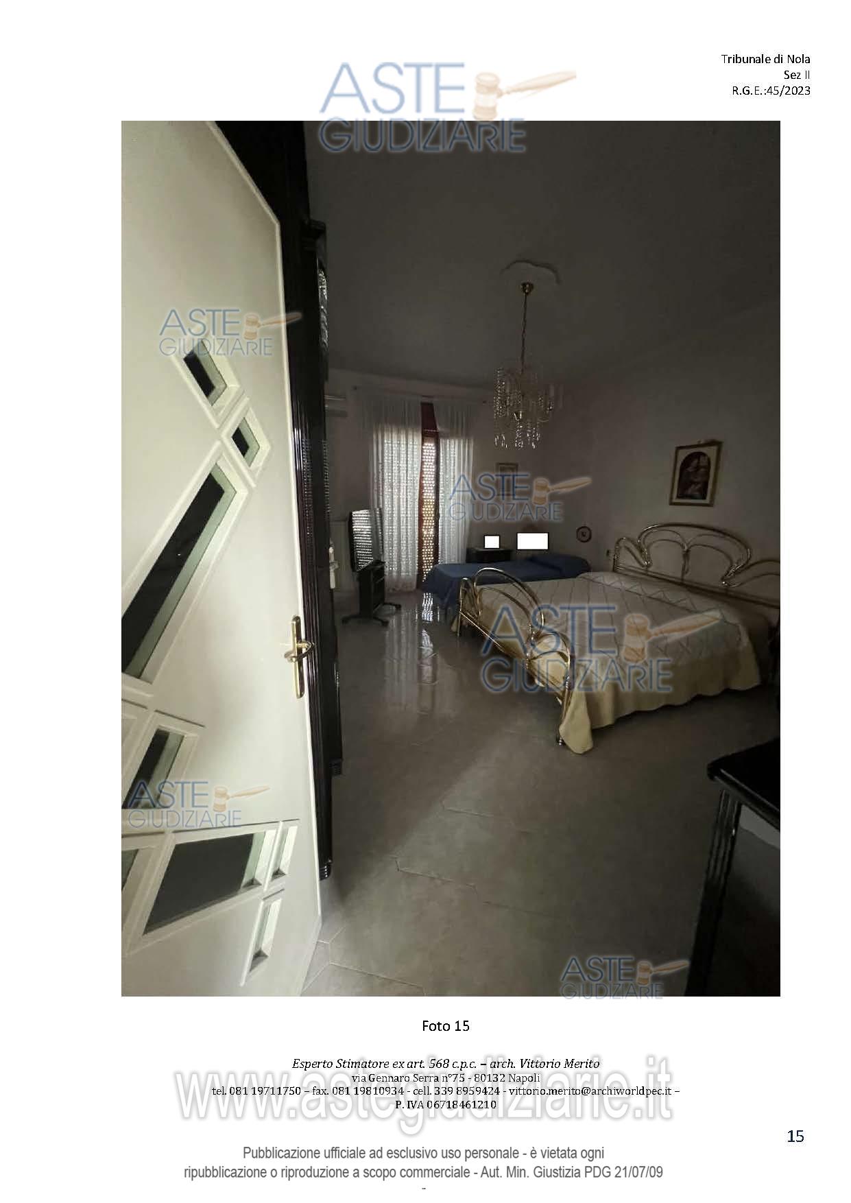 Vendita all'asta Senza incanto, con gara telematica asincrona - LOTTO 2: San Giuseppe Vesuviano, via Lucarelli n. 55/14, piano 3, proprietà appartamento, composto da ingresso, 4 ambienti, cucina, corridoio, 2 w.c. e terrazzo con ripostiglio in alluminio. Sup. netta abitazione 140 mq, terrazza 63. Occupato dal debitore esecutato. Realizzato senza titolo edilizio e istanza di condono incompleta e priva di grafici, ma ancora in corso di definizione. Difformità non sanabili rispetto a planimetria catastale: realizzazione scala di accesso al lastrico solare. Prezzo base € 30.131,77 (offerta minima € 22.598,83). Data inizio operazioni di vendita: 10/12/2025 ore 09:00. Professionista delegato alla vendita Avv. Maria Luigia Miccio - Email "marialuigiamiccio@libero.it"; Tel. 3497580644. Custode Giudiziario Avv. Maria Luigia Miccio - Email "marialuigiamiccio@libero.it"; Tel. 3497580644. Rif. Tribunale di Nola - Espropriazione immobiliare (cartabia) n. 45/2023