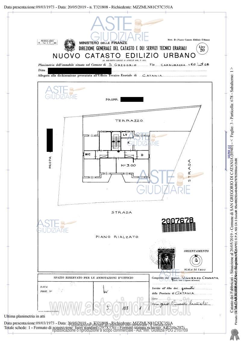 Vendita all'asta Senza incanto, con gara telematica sincrona - LOTTO 1: Appartamento per civile abitazione nel Comune di San Gregorio di Catania (CT), al piano primo di un edificio a tre elevazioni avente accesso dal civico 20 di Via Leonardo Da Vinci (in catasto via Carrubbazza n. 50, piano terra). L’appartamento è dotato di ampia terrazza e di due balconi. Censito nel N.C.E.U. al Foglio 3, particella 678, subalterno 1, Categ. catastale A/2 di classe 3, piano primo, superficie comm. mq. 240, consistenza 10 vani, superficie catastale mq. 207, rendita catastale € 464,81. Prezzo base € 124.144,00 (offerta minima € 93.108,00). Data vendita 16/06/2026 ore 16:00. Professionista delegato alla vendita: Avv. Saverio Vacirca - Email "visite@aavg.it"; Tel. 095/2163386.