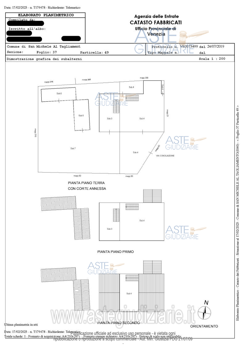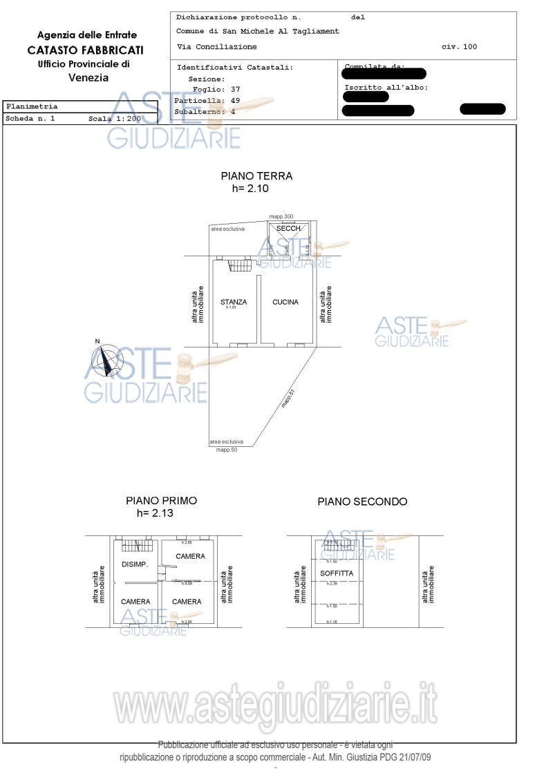 Custode Giudiziario: Custode Giudiziario - Email "custodi@associazionenotarile.pn.it"; Cell. 329/4536349.