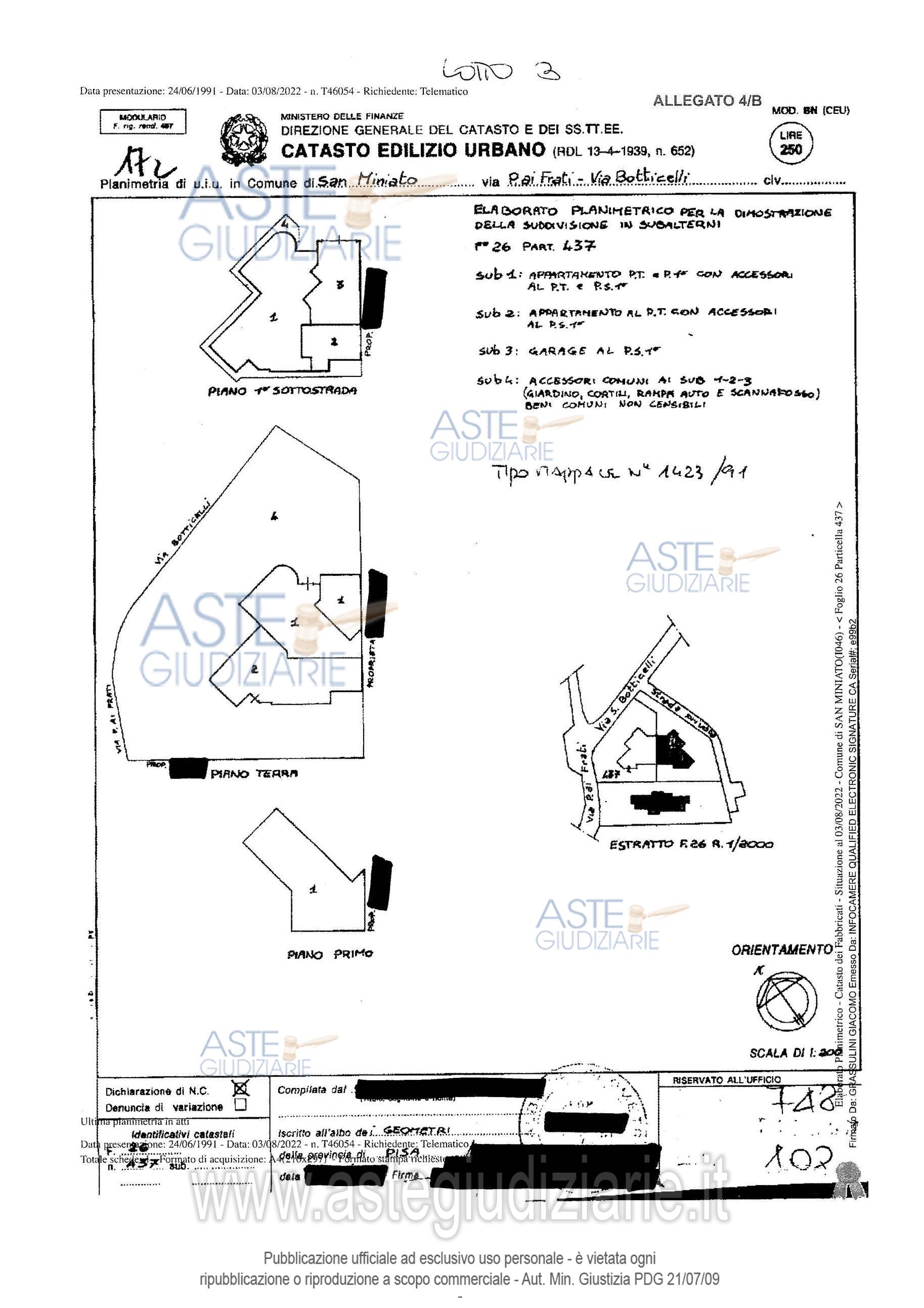 Vendita all'asta Senza incanto, con gara telematica sincrona mista - LOTTO 3: due appartamenti e un garage. Prezzo base € 465.281,35 (offerta minima € 348.961,01). Data vendita 07/10/2025 ore 10:15. Professionista delegato alla vendita Dott. Katiuscia Orsucci - Email "korsucci@yahoo.it"; Cell. 3441230449; Tel. 0587354860. Custode Giudiziario Dott. Istituto Vendite Giudiziarie Di Pisa - Email "prenotazionipisa@astagiudiziaria.com"; Tel. 050554790. Rif. Tribunale di Pisa - Esecuzione immobiliare post legge 80 n. 16/2022