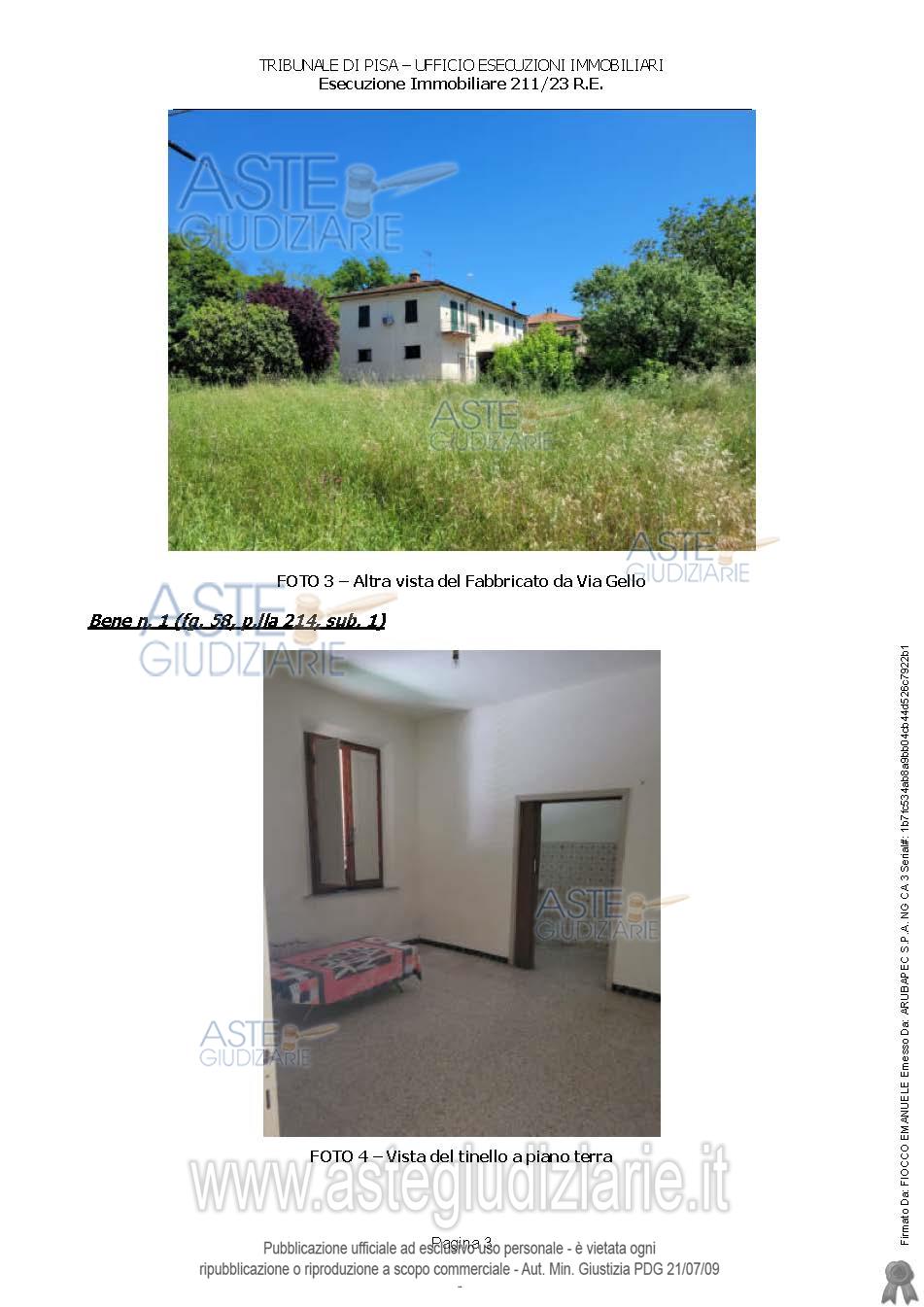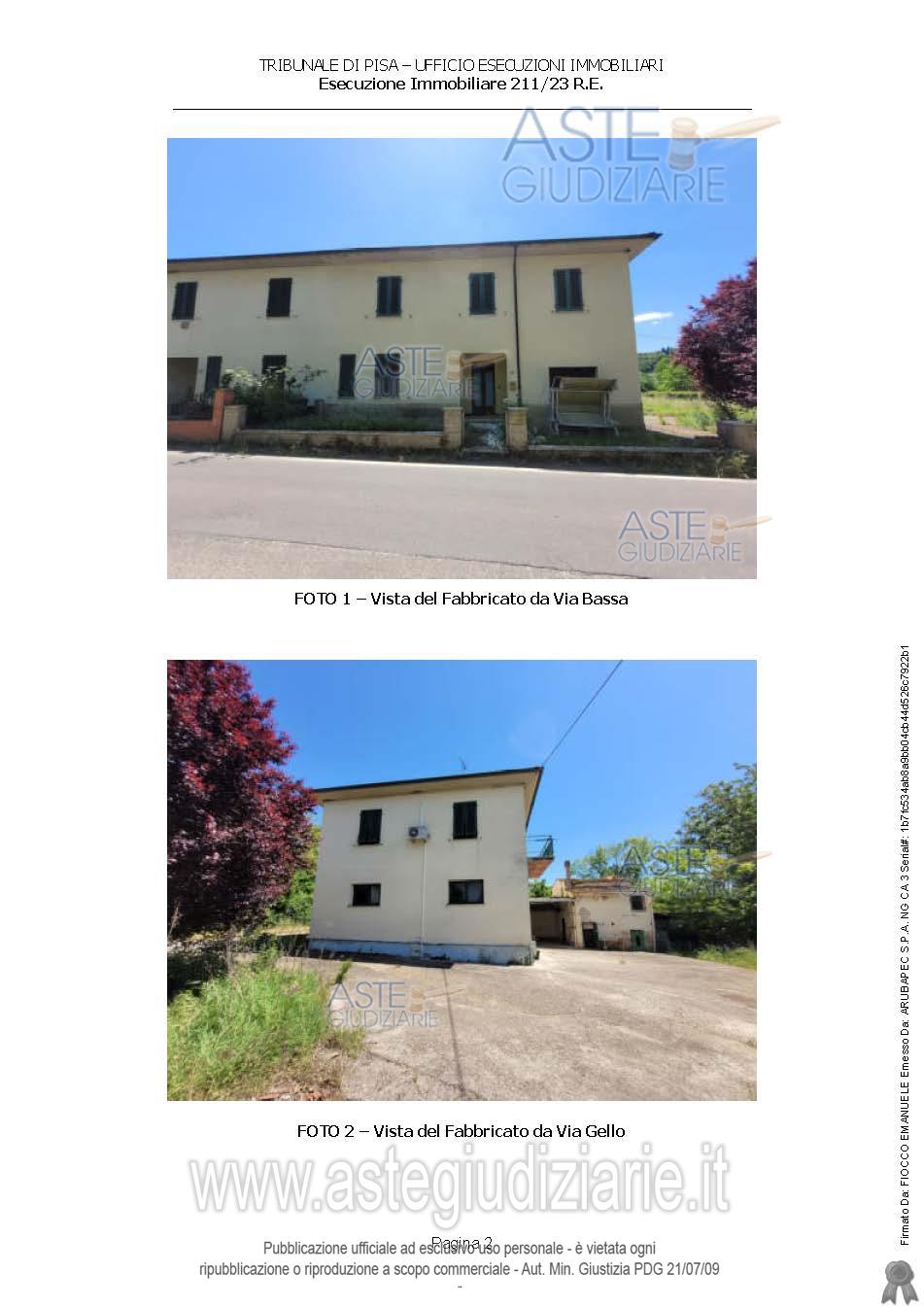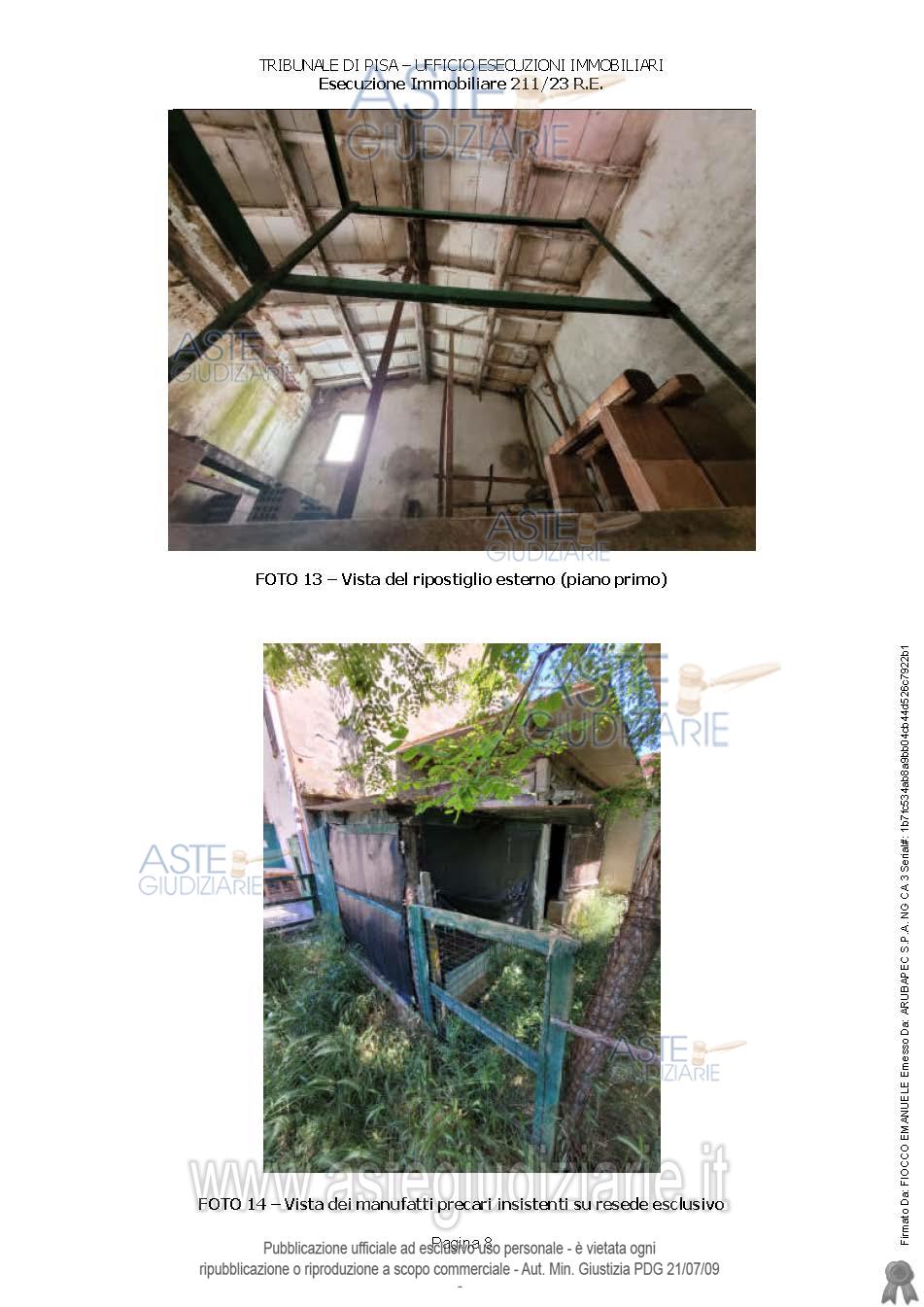 Vendita all'asta Senza incanto, con gara telematica asincrona - LOTTO UNICO: Piena proprietà di appartamento per civile abitazione al piano terra e primo di maggior fabbricato in linea con annesso magazzino. Prezzo base € 111.375,00 (offerta minima € 83.531,25). Data inizio operazioni di vendita: 26/11/2025 ore 17:00. Giudice Marco Zinna. Professionista delegato alla vendita Avv. Fabrizio Possenti. Custode Giudiziario Dott. Cosimo Erriquez - Email "prenotazionipisa@astagiudiziaria.com". Rif. Tribunale di Pisa - Esecuzione immobiliare post legge 80 n. 211/2023