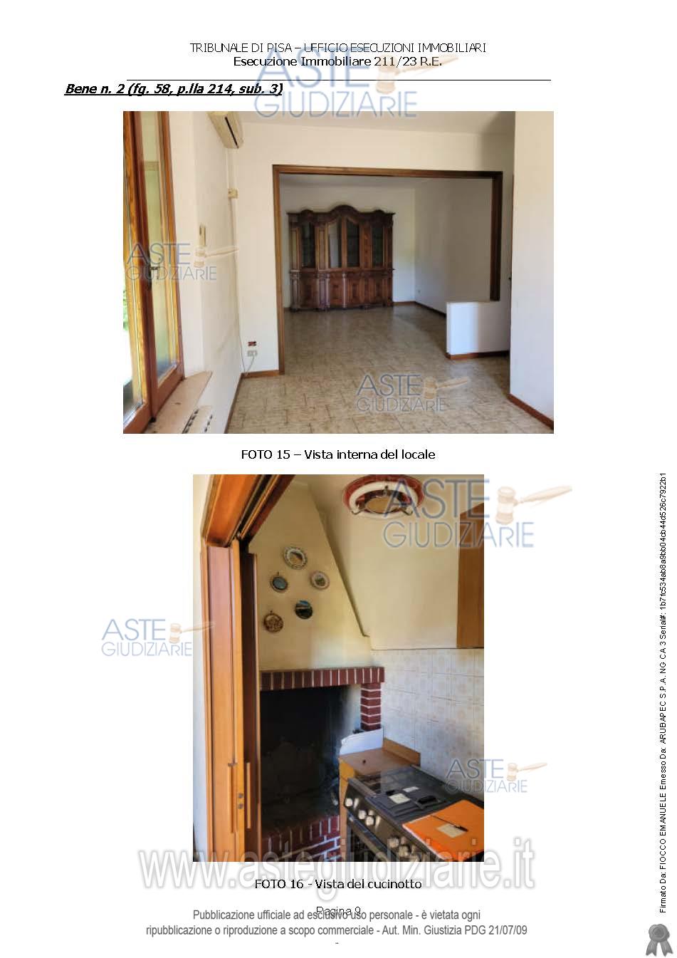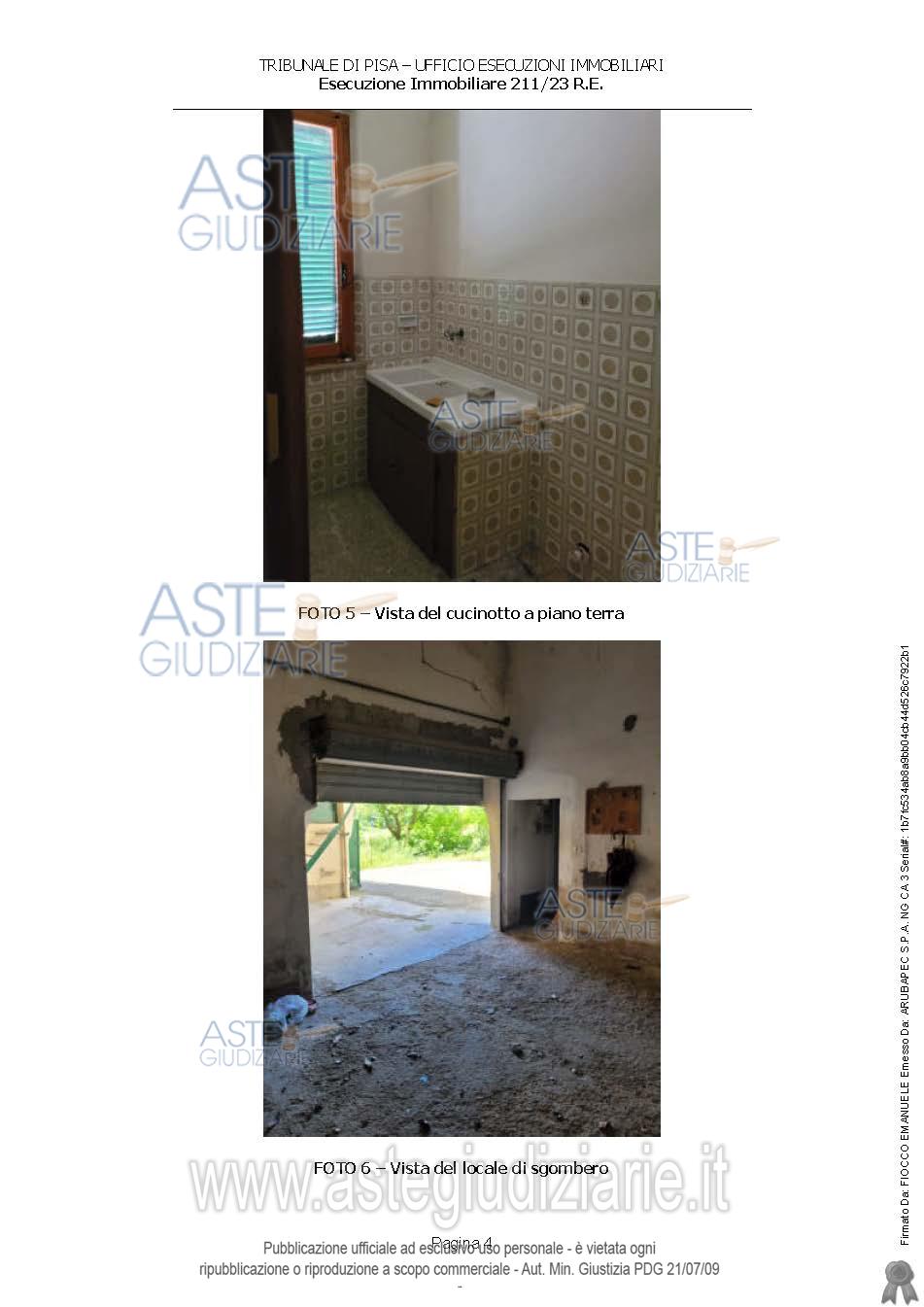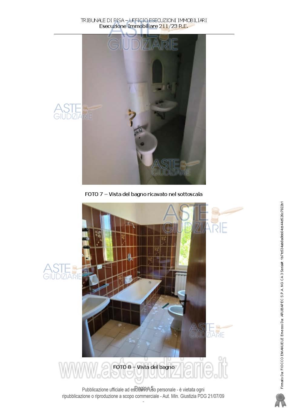 Vendita all'asta Senza incanto, con gara telematica asincrona - LOTTO UNICO: Piena proprietà di appartamento per civile abitazione al piano terra e primo di maggior fabbricato in linea con annesso magazzino. Prezzo base € 111.375,00 (offerta minima € 83.531,25). Data inizio operazioni di vendita: 26/11/2025 ore 17:00. Giudice Marco Zinna. Professionista delegato alla vendita Avv. Fabrizio Possenti. Custode Giudiziario Dott. Cosimo Erriquez - Email "prenotazionipisa@astagiudiziaria.com". Rif. Tribunale di Pisa - Esecuzione immobiliare post legge 80 n. 211/2023