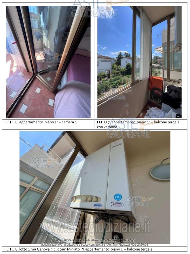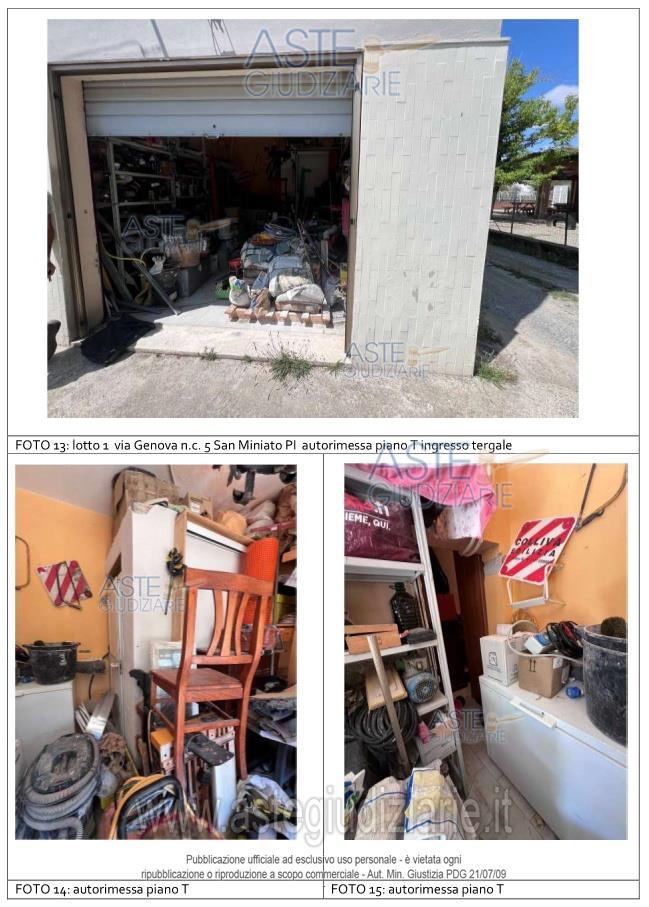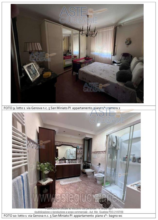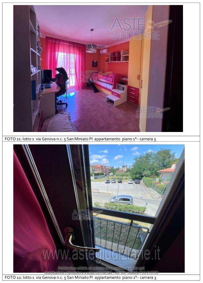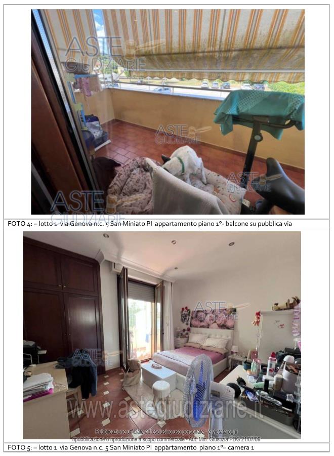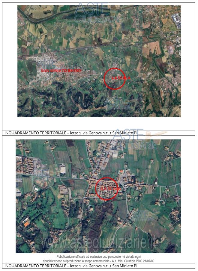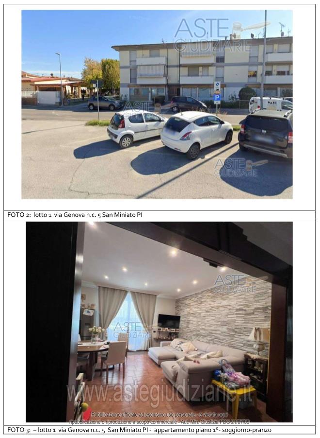 Vendita all'asta Senza incanto, con gara telematica asincrona - LOTTO UNICO: Appartamento per civile abitazione posto al primo piano di un fabbricato condominiale ubicato in San Miniato, Loc. La Scala, Via Genova n. 5. Composto da: ingresso, soggiorno - pranzo con angolo cottura, disimpegno, tre camere ed un servizio igienico. E' annesso quale pertinenza esclusiva un piccolo appezzamento di terreno ortivo. E' altresì annesso un magazzino/deposito di mq 21. Prezzo base € 204.100,00 (offerta minima € 153.075,00). Data inizio operazioni di vendita: 18/06/2026 ore 14:30. Giudice Pastacaldi. Professionista delegato alla vendita Avv. Barbara Pecchia. Custode Giudiziario Dott. Cosimo Erriquez - Email "prenotazionipisa@astagiudiziaria.com". Rif. Tribunale di Pisa - Esecuzione immobiliare post legge 80 n. 38/2025