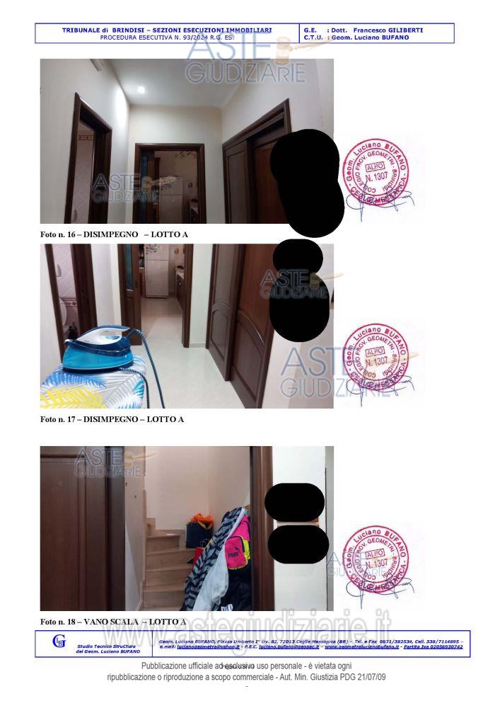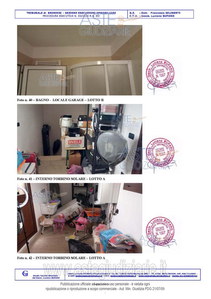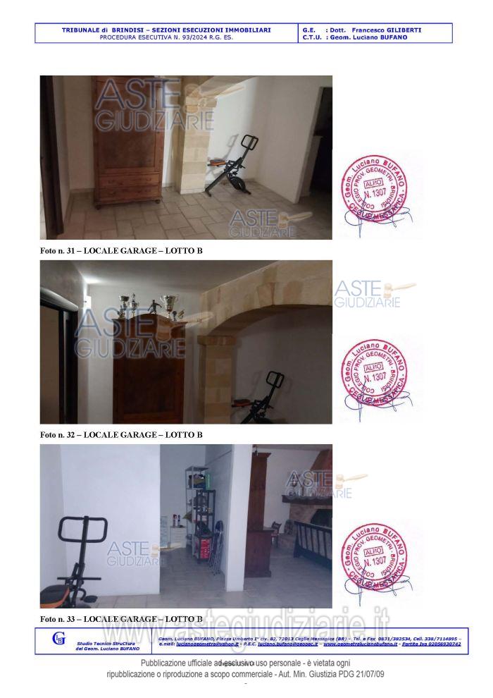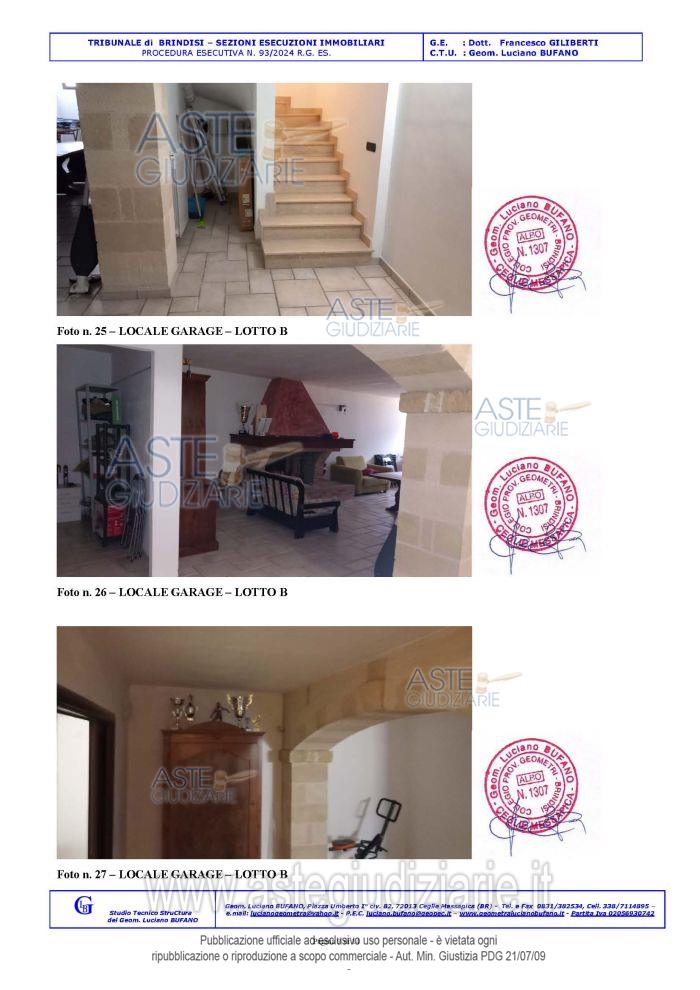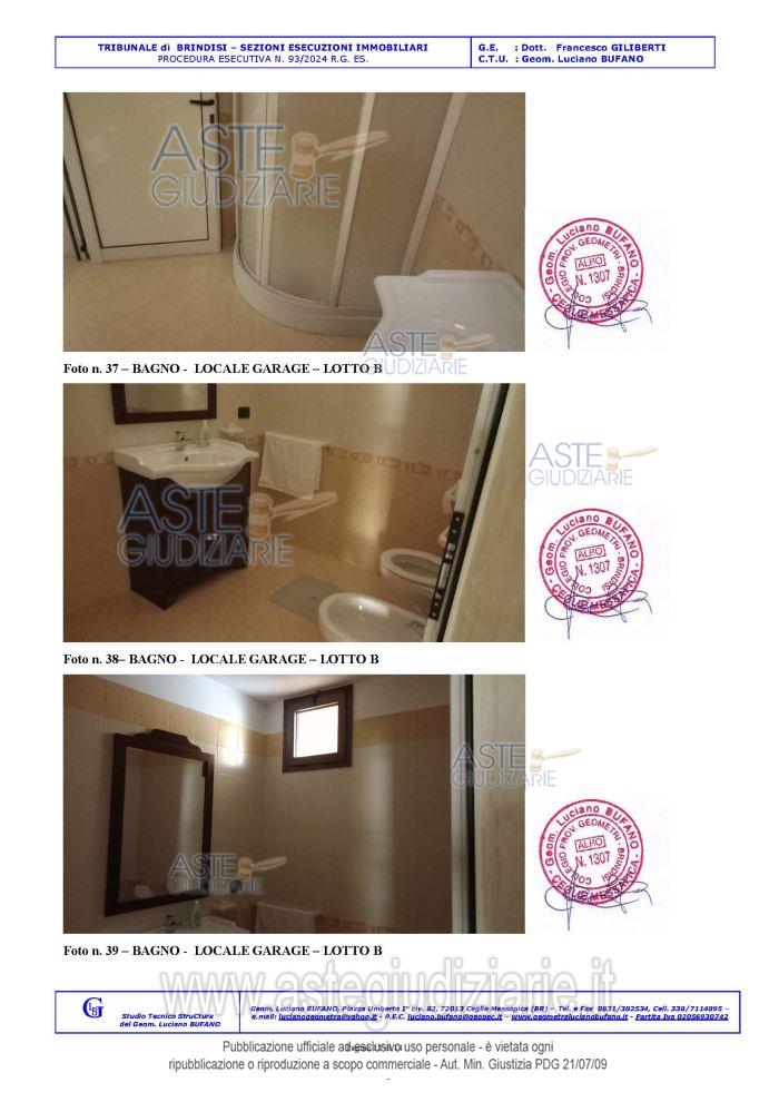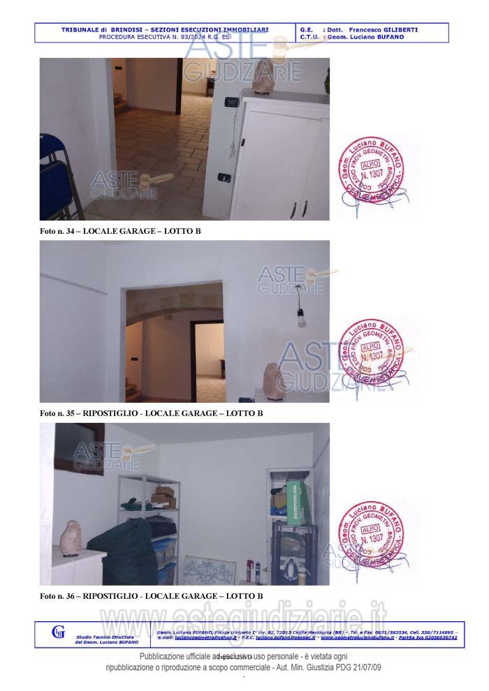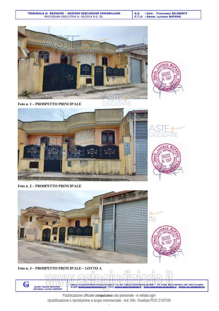 Vendita all'asta Senza incanto, con gara telematica asincrona - LOTTO 1: Piena proprietà di abitazione indipendente al piano terra e garage indipendente al piano seminterrato. Prezzo base € 97.927,50 (offerta minima € 73.445,63). Data inizio operazioni di vendita: 02/03/2026 ore 09:50. Giudice Francesco Giliberti. Professionista delegato alla vendita Avv. Silvana Cristofaro. Custode Giudiziario Avv. Silvana Cristofaro - Email "crisilvy@libero.it". Rif. Tribunale di Brindisi - Espropriazione immobiliare (cartabia) n. 93/2024