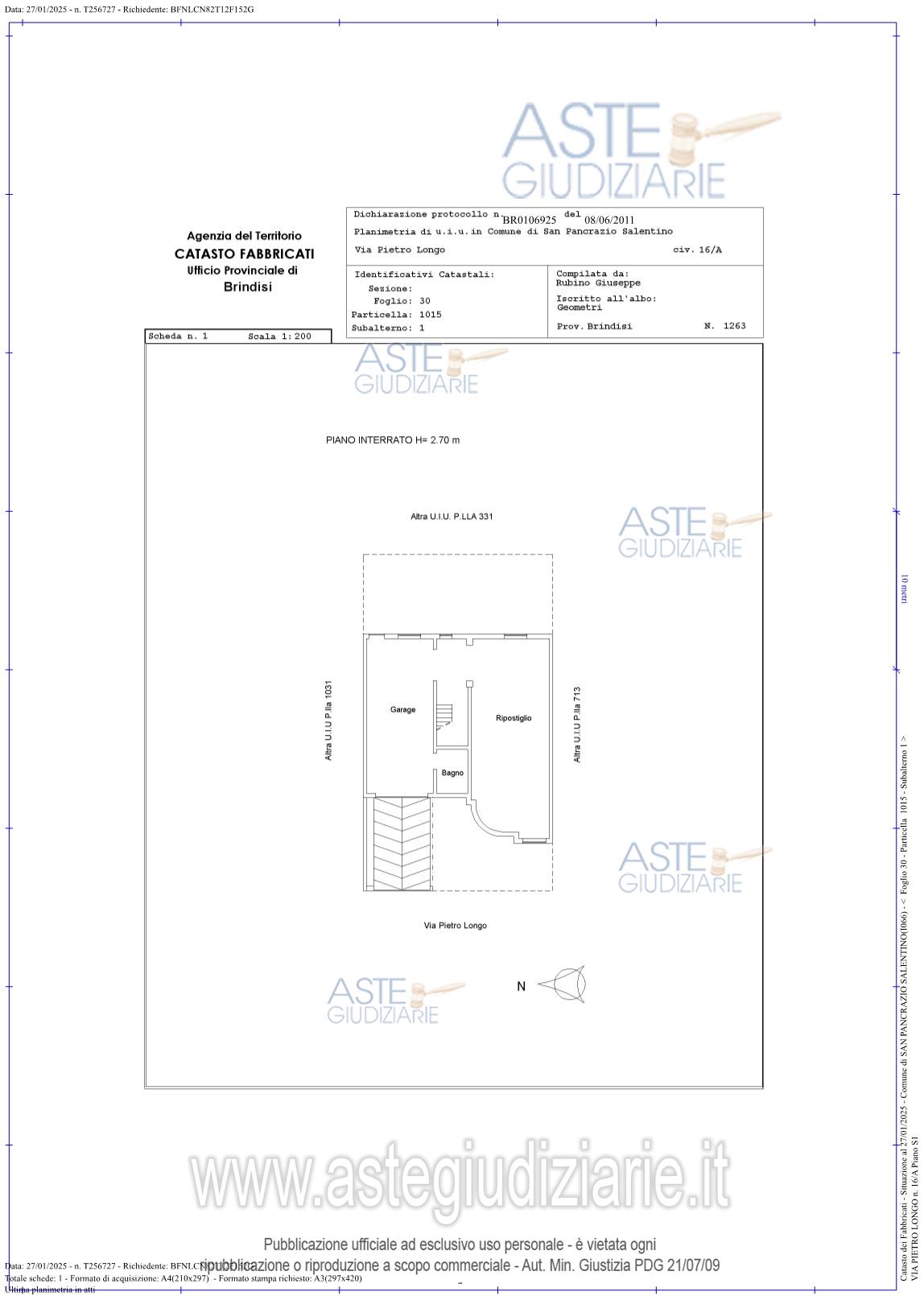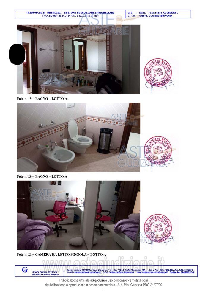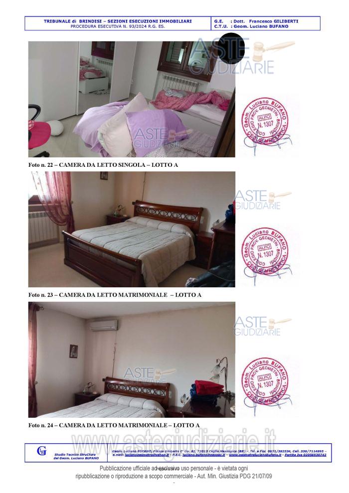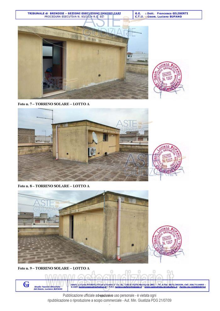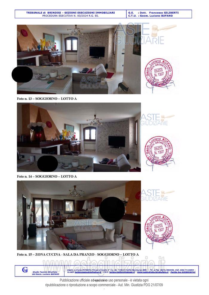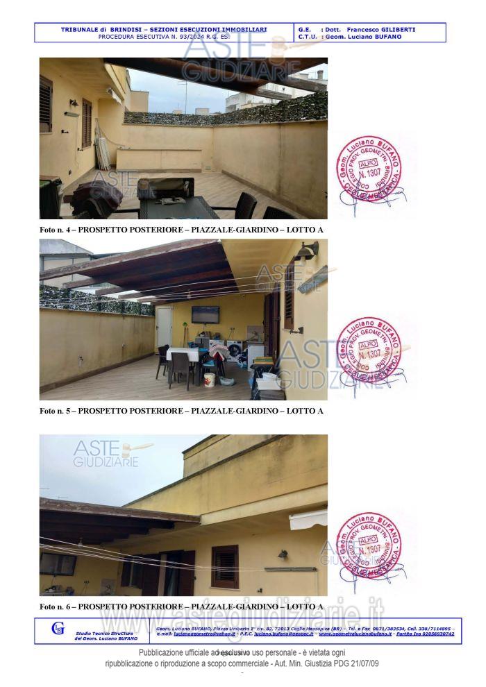 Vendita all'asta Senza incanto, con gara telematica asincrona - LOTTO 1: Piena proprietà di abitazione indipendente al piano terra e garage indipendente al piano seminterrato. Prezzo base € 97.927,50 (offerta minima € 73.445,63). Data inizio operazioni di vendita: 02/03/2026 ore 09:50. Giudice Francesco Giliberti. Professionista delegato alla vendita Avv. Silvana Cristofaro. Custode Giudiziario Avv. Silvana Cristofaro - Email "crisilvy@libero.it". Rif. Tribunale di Brindisi - Espropriazione immobiliare (cartabia) n. 93/2024