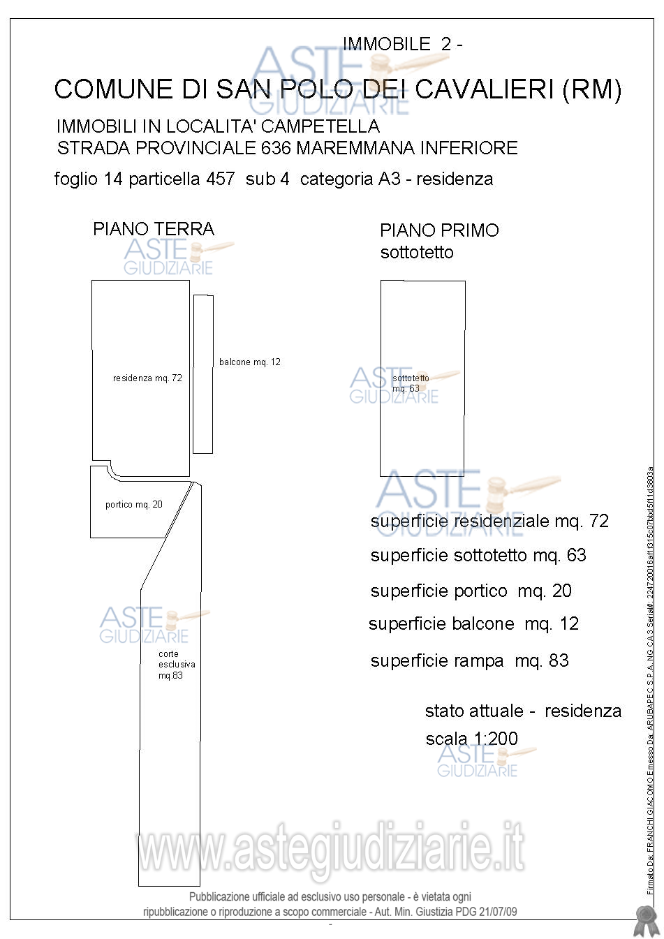 Custode Giudiziario: Ivg Di Roma Srl - Email "pvp@visiteivgroma.it"; Tel. 06/89569801.