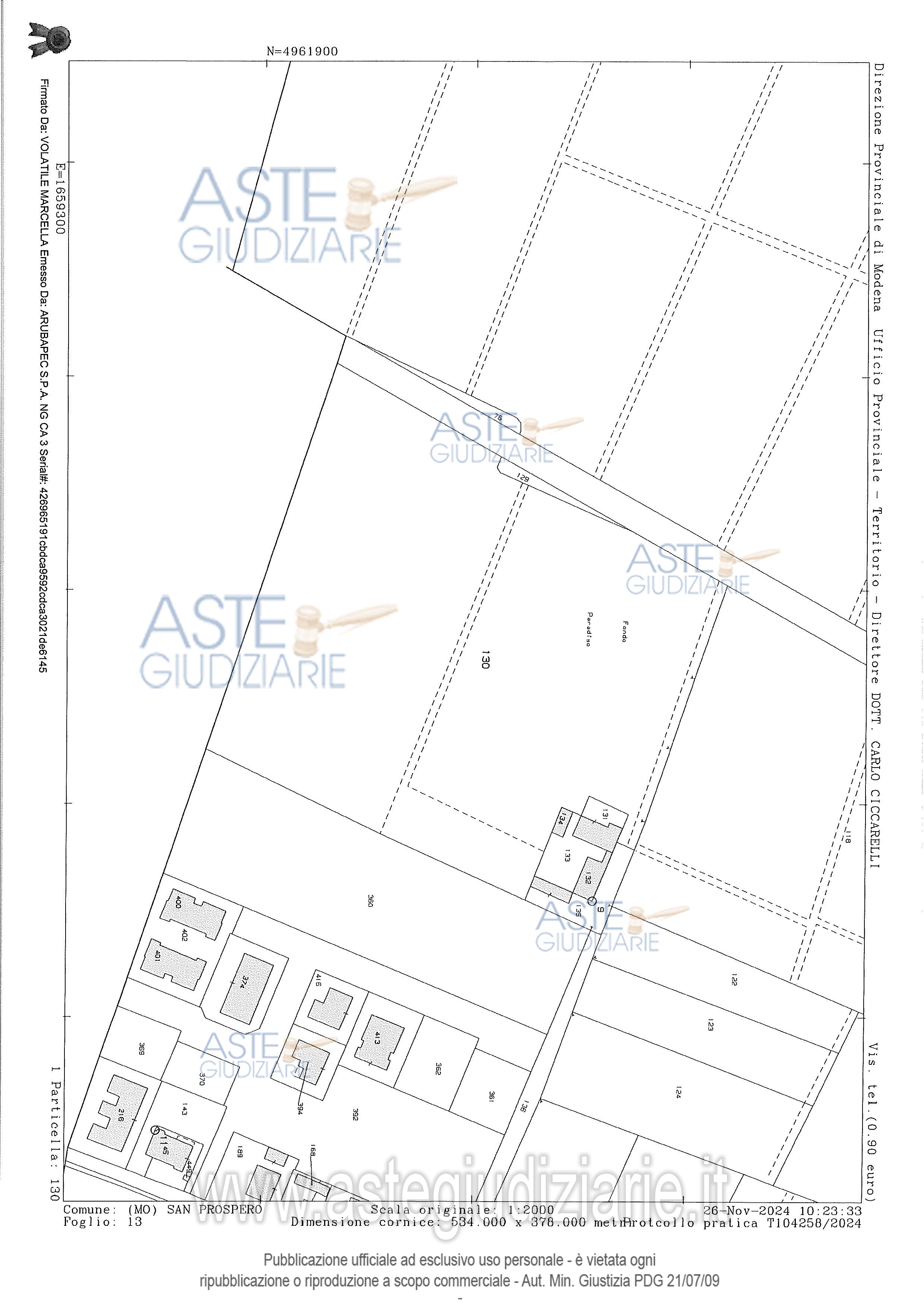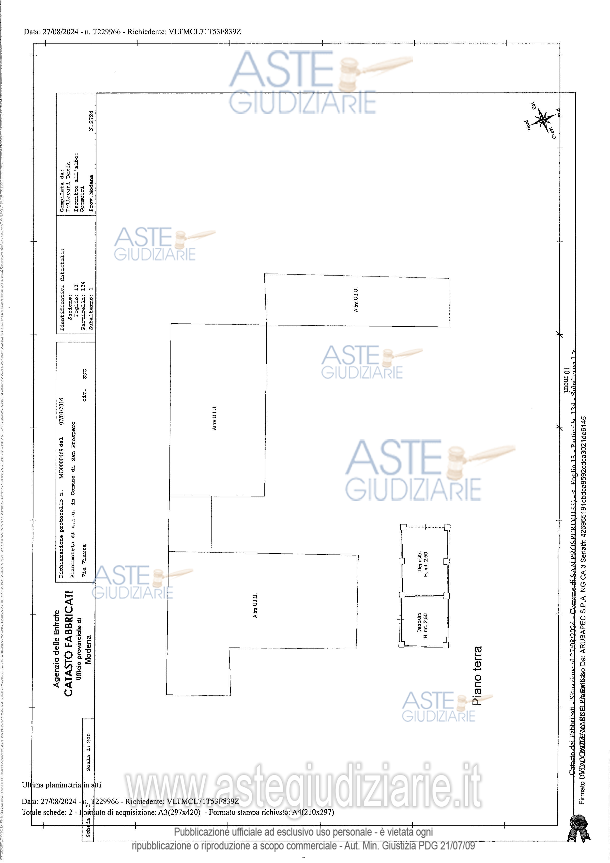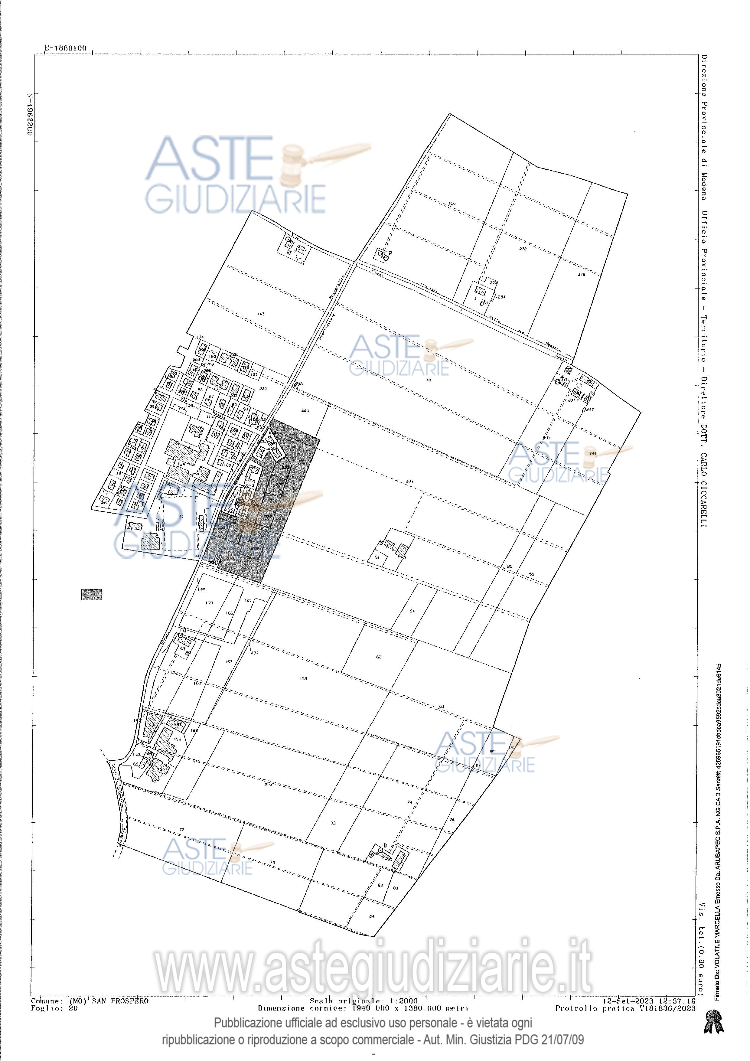 Vendita all'asta Senza incanto, con gara telematica asincrona - LOTTO 2: Il Lotto 2 è costituito dalla piena proprietà di:Complesso agricolo ubicato a San Prospero composto da depositi, abitazione e cantineTerreni agricoliTerreno edificabileTerreni edificabili e da cedere soggetti a convenzione. Prezzo base € 551.250,00 (offerta minima € 413.437,50). Data inizio operazioni di vendita: 11/06/2026 ore 11:30. Giudice Giulia Lucchi. Professionista delegato alla vendita Avv. Giulia Cavalieri - Email "giuliacavalieri@studiocavalieri.legal". Custode Giudiziario Alex Manelli - Email "visiteimmobili@ivgmodena.it"; Tel. 059847301. Rif. Tribunale di Modena - Esecuzione immobiliare post legge 80 n. 304/2022