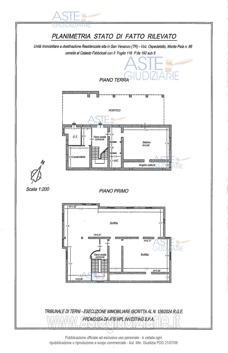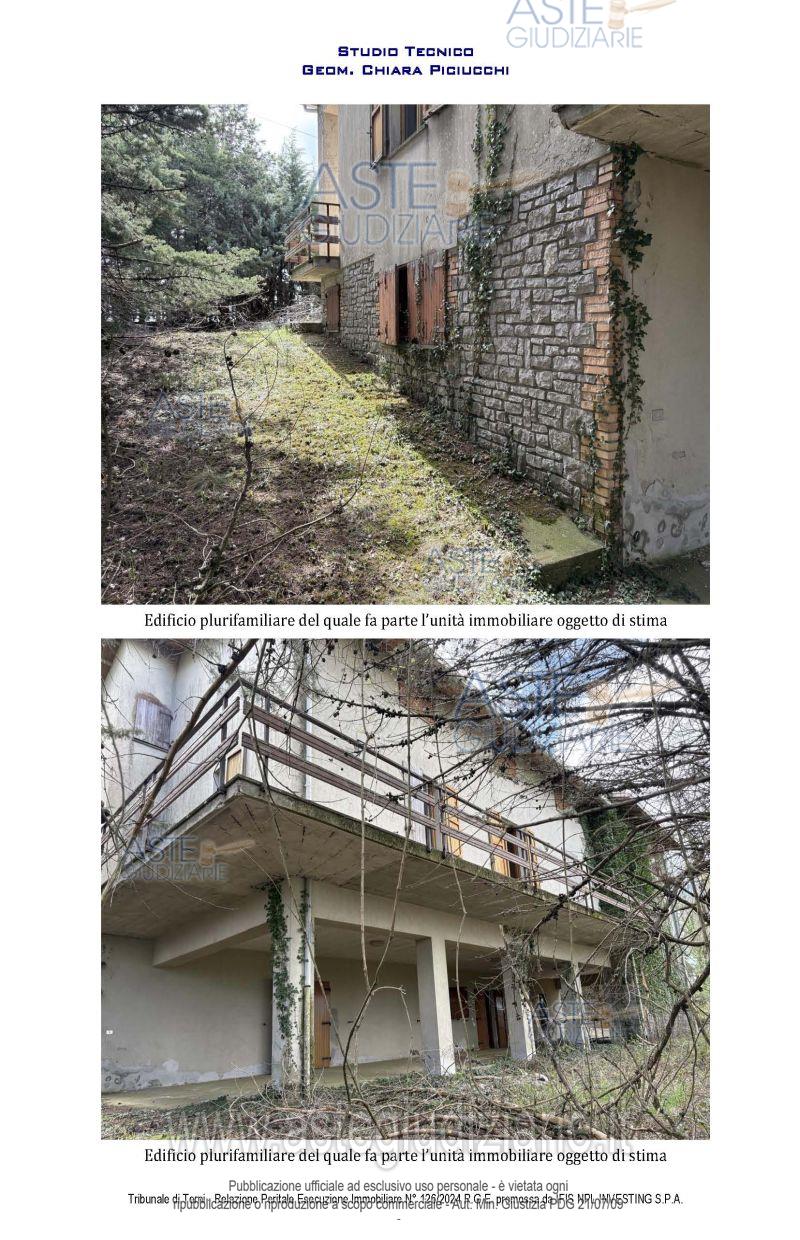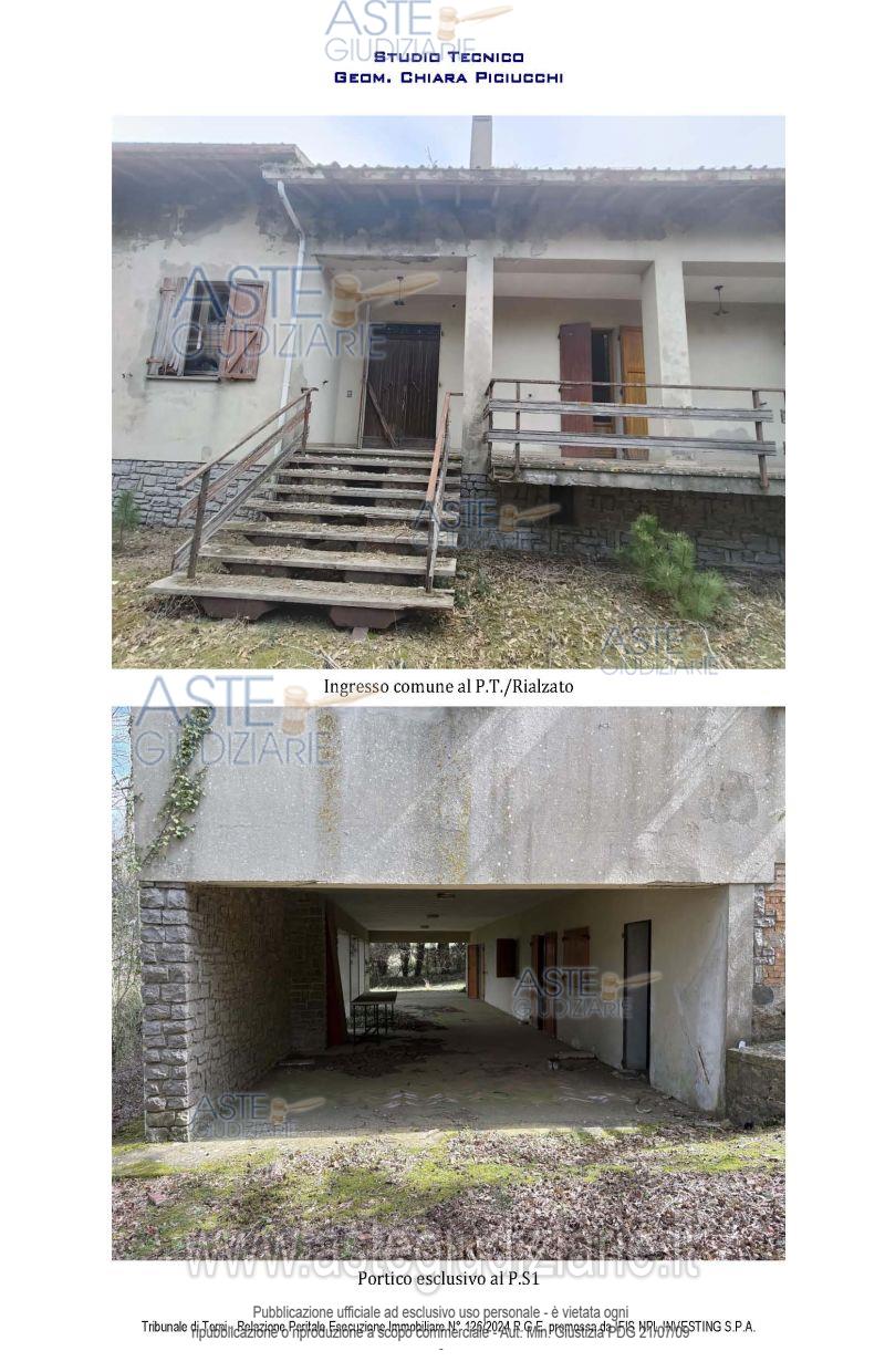 Vendita all'asta Senza incanto, con gara telematica asincrona - LOTTO 1: porzione di fabbricato plurifamiliare che si sviluppa su 3 livelli; trattasi di ampio vano residenziale al p. seminterrato con vani accessori quali ripostigli, lavanderia, centrale termica e grande portico antistante, nonchè vani soffitta al p. primo/sottotetto - il tutto meglio descritto nella perizia di stima. Prezzo base € 43.875,00 (offerta minima € 32.906,25). Data inizio operazioni di vendita: 19/05/2026 ore 11:00. Giudice Francesco Angelini. Professionista delegato alla vendita Avv. Francesco Ciaccolini - Email "studiolegale@cavallari-ciaccolini-catapano.it"; Tel. 0744403154. Custode Giudiziario Avv. Francesco Ciaccolini - Email "studiolegale@cavallari-ciaccolini-catapano.it"; Tel. 0744403154. Rif. Tribunale di Terni - Espropriazione immobiliare (cartabia) n. 126/2024