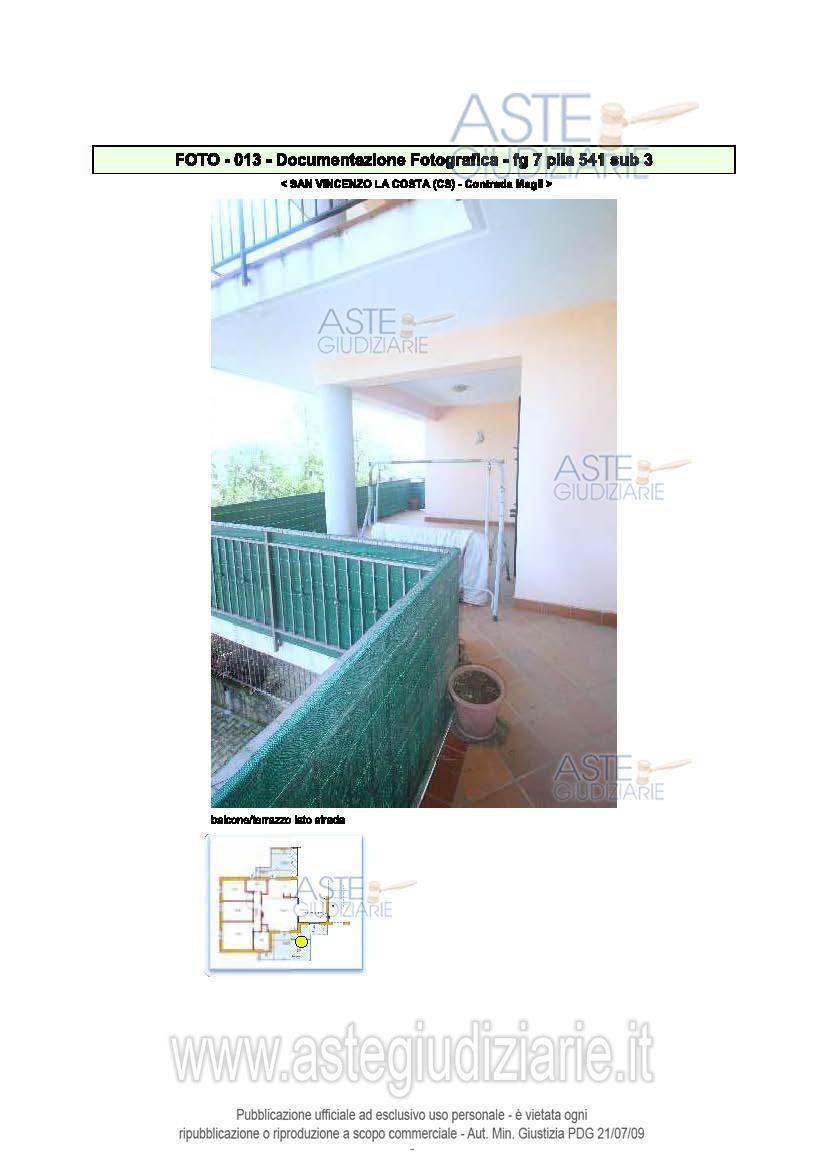 Vendita all'asta Senza incanto, con gara telematica sincrona - LOTTO UNICO: Appartamento: posto al primo piano in buono stato, composto da soggiorno con termo camino, cucina, tre camere, due bagni, due ampi terrazzi e riscaldamento autonomo. Superficie interna di 103,75 mq più 39,12 mq di terrazzi. Prezzo base € 36.050,00 (offerta minima € 27.037,50). Data vendita 27/02/2026 ore 10:00. Giudice Dott. Assunta Gioia. Professionista delegato alla vendita Dott. Maria Luisa Campise - Email "studiomlcampise@gmail.com"; Tel. 0984846338. Custode Giudiziario Dott. Maria Luisa Campise - Email "studiomlcampise@gmail.com"; Tel. 0984846338. Rif. Tribunale di Cosenza - Espropriazione immobiliare (cartabia) n. 151/2023