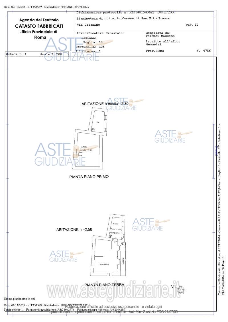 Vendita all'asta Senza incanto, con gara telematica asincrona - LOTTO UNICO: 100/100 del diritto di proprietà su appartamento, sito in San Vito Romano (Rm), Via Casarino n. 3, piano terra e primo, composto al piano terra da monolocale con bagno, disimpegno con accesso dal balcone esterno al piano terra e due soffitte al primo piano per complessivi mq. 57,19, oltre il balcone per mq. 1,50. Prezzo base € 18.375,00 (offerta minima € 13.781,75). Data inizio operazioni di vendita: 26/05/2026 ore 16:00. Giudice Dott. Francesco Lupia. Professionista delegato alla vendita Avv. Rita Proietti - Email "avv.ritaproietti@hotmail.com"; Tel. 0774331732. Custode Giudiziario Ivg Di Roma S.R.L. - Email "pvp@visiteivgroma.it"; Tel. 0689569801. Rif. Tribunale di Tivoli - Espropriazione immobiliare (cartabia) n. 224/2024