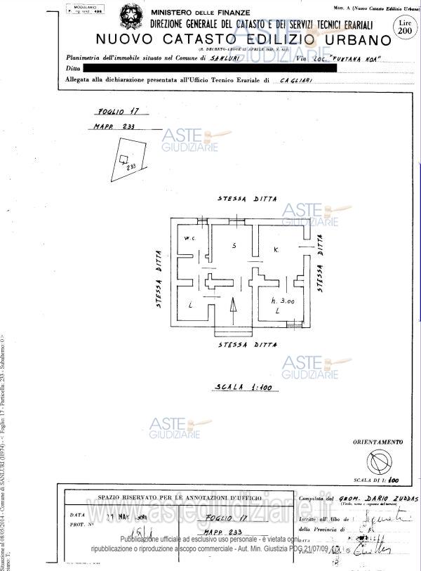 Vendita all'asta Senza incanto, con gara telematica asincrona - LOTTO UNICO: In Comune di Sanluri, località Funtana Noa, piena proprietà immobile per civile abitazione, con circostante giardino, identificata al N.C.E.U. del Comune di Sanluri Fg. 17 particella 233, categoria A/4, classe 1,vani 3,5, rendita 155,45 €. Superficie commerciale complessiva 116 mq. Prezzo base € 28.800,00 (offerta minima € 21.600,00). Data inizio operazioni di vendita: 29/04/2026 ore 15:00. Professionista delegato alla vendita Dott. Alessandro Casadio - Email "alessandro.casadio@tiscali.it"; Tel. 070485314. Custode Giudiziario Ivg Cagliari - Email "ivg.visiteimmobili@tiscali.it"; Tel. 0702299036. Rif. Tribunale di Cagliari - Esecuzione immobiliare post legge 80 n. 565/2012