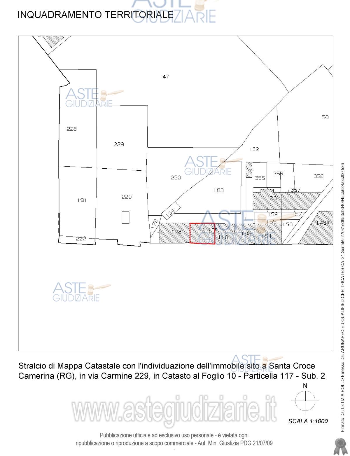 Vendita all'asta Senza incanto, con gara telematica sincrona mista - LOTTO UNICO: Fabbricato residenziale situato a circa 600 m dal centro città di Santa Croce Camerina. Prezzo base € 80.000,00 (offerta minima € 60.000,00). Data vendita 18/06/2026 ore 18:00. Giudice Dott. Francesco Rio.