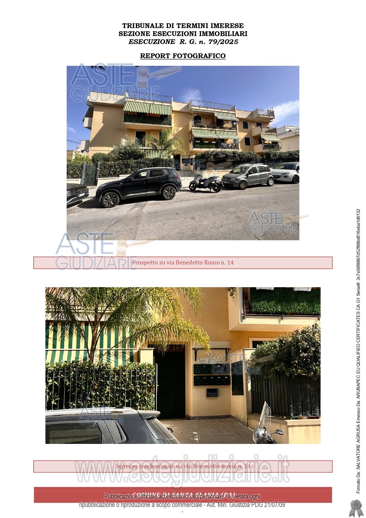 Vendita all'asta Senza incanto, con gara telematica sincrona - LOTTO 1: LOTTO 1: Piena proprietà di un appartamento ubicato a Santa Flavia (PA) - via Benedetto Romeo n. 14, piano T, composto da ingresso-soggiorno, cucina, doppio servizio igienico, due camere da letto, un ulteriore vano e disimpegno, inoltre è presente un ampio terrazzo di proprietà esclusiva. Identificato al catasto Fabbricati - Fg. 6, Part. 2582, Sub. 4, Categoria A2 , superficie catastale mq 117, rendita catastale €. 433,82. Prezzo base € 113.880,40 (offerta minima € 85.410,30). Data vendita 19/05/2026 ore 10:00. Professionista delegato alla vendita Avv. Gioacchino Greco - Email "avvgioacchinogreco@gmail.com"; Cell. 3284749388. Custode Giudiziario Avv. Gioacchino Greco - Email "avvgioacchinogreco@gmail.com"; Cell. 3284749388. Rif. Tribunale di Termini Imerese - Espropriazione immobiliare (cartabia) n. 79/2025