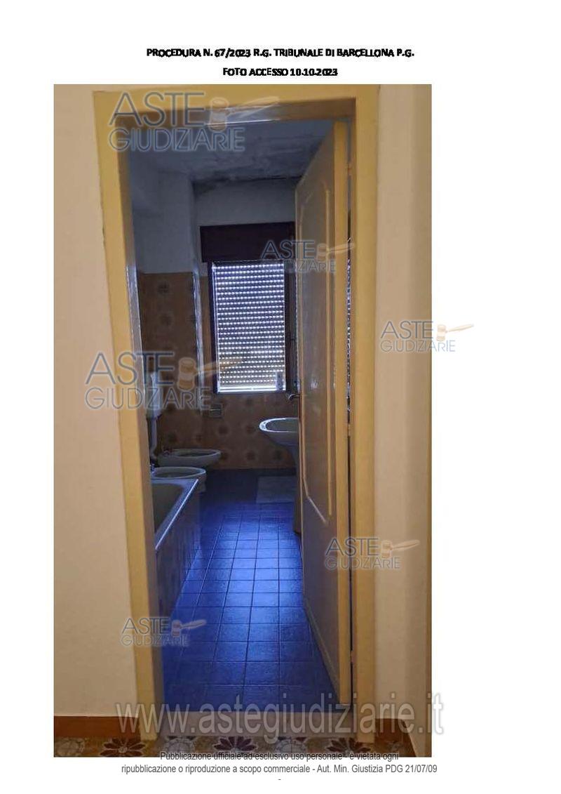 Vendita all'asta Senza incanto, con gara telematica sincrona - LOTTO UNICO: Appartamento per civile abitazione al piano II. In catasto al fg. 27, part. 17, sub. 3, cat. A/2, classe 5, mq. 148,39, rendita 300,58. Prezzo base € 54.675,00 (offerta minima € 41.010,00). Data vendita 16/01/2026 ore 16:30. Giudice Dott. Giuseppe Lo Presti. Professionista delegato alla vendita Avv. Melangela Scolaro. Custode Giudiziario Avv. Maria Letizia Navarra - Email "mlet.navarra@tiscali.it"; Tel. 090671582. Rif. Tribunale di Barcellona Pozzo di Gotto - Esecuzione immobiliare post legge 80 n. 67/2023