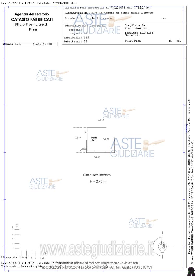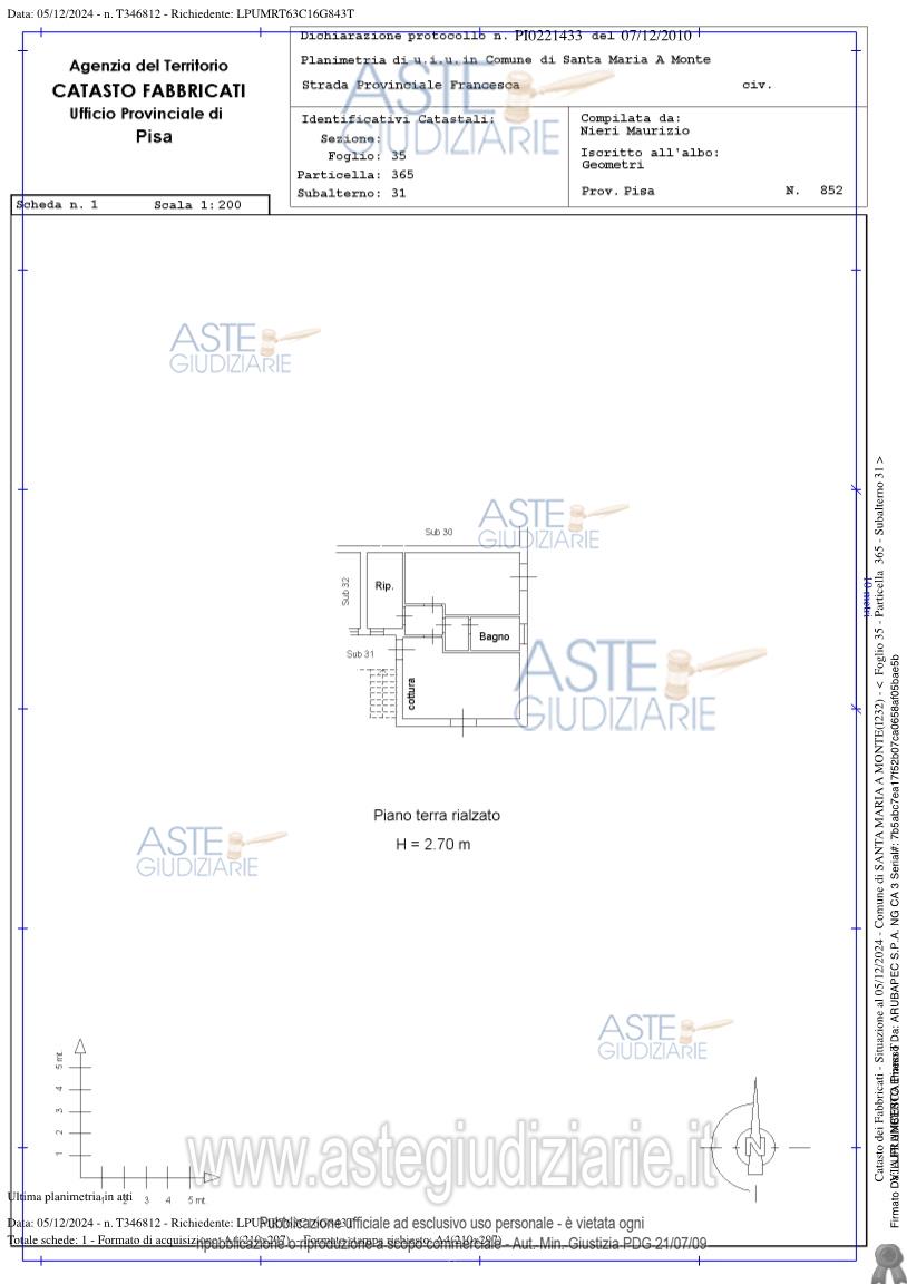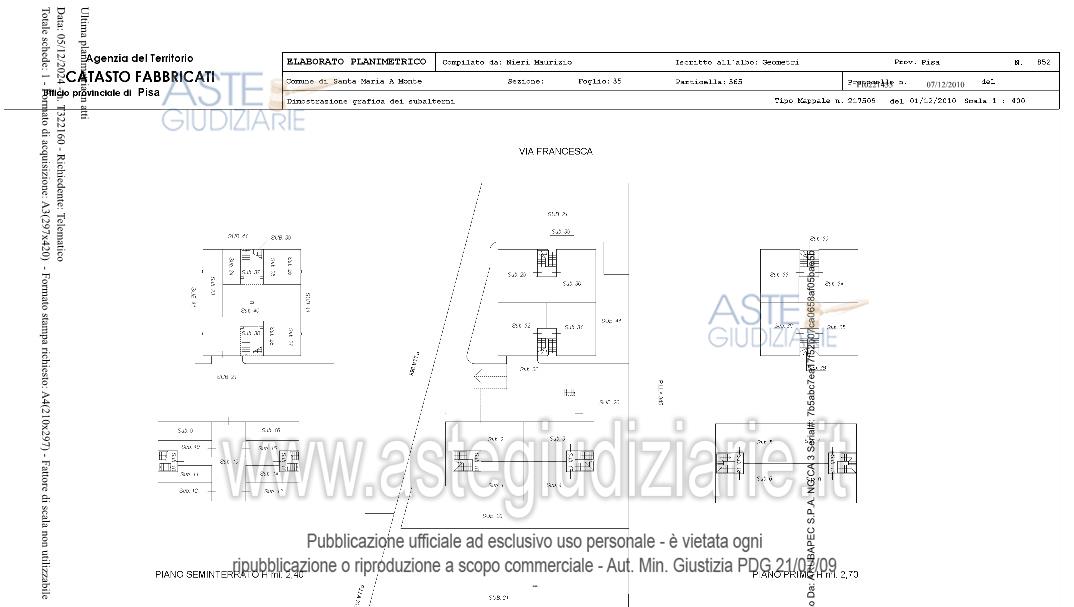 Vendita all'asta Senza incanto, con gara telematica asincrona - LOTTO 2: Il lotto 2 è composto da: a) appartamento sito a Santa Maria a Monte (PI), Via Provinciale Francesca, piano rialzato, lato sud-est, composto da soggiorno-pranzo angolo cottura, disimpegno, camera, bagno con antibagno e ripostiglio (bene n. 2); b) posto auto sito a Santa Maria a Monte (PI), Via Provinciale Francesca, piano seminterrato, lato sud (bene n. 11). Tale lotto è uno dei sei lotti facenti parte di un più ampio fabbricato, tutti all'asta mediante la presente procedura es. imm. Prezzo base € 84.000,00 (offerta minima € 63.000,00). Data inizio operazioni di vendita: 26/02/2026 ore 10:00. Professionista delegato alla vendita Avv. Gaetano Toscano - Email "g.toscano@studio.bartalena.net"; Tel. 05045146. Custode Giudiziario Francesco Casella - Email "ivgpisa@astagiudiziaria.com"; Tel. 050554790. Rif. Tribunale di Pisa - Espropriazione immobiliare (cartabia) n. 144/2024