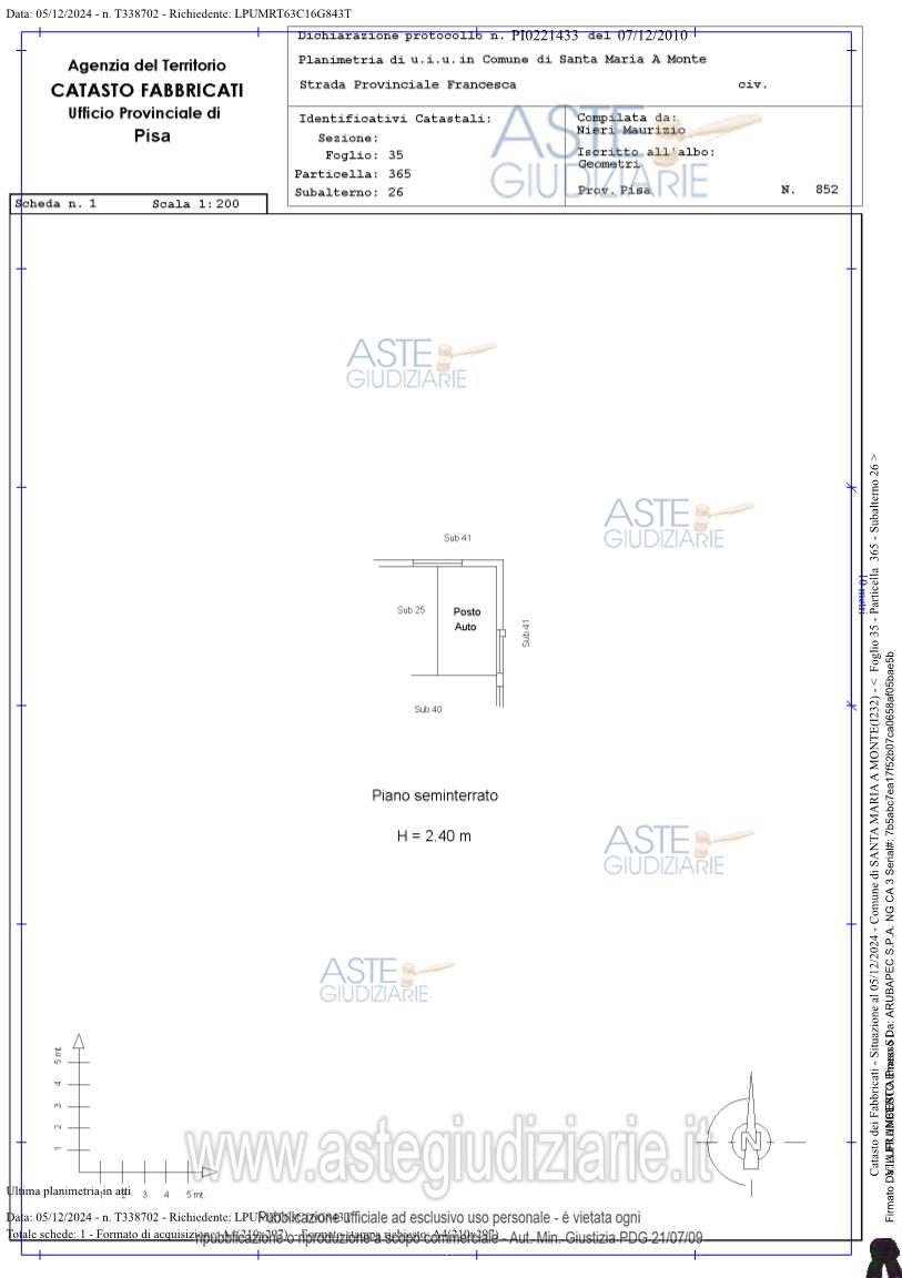 Vendita all'asta Senza incanto, con gara telematica asincrona - LOTTO 4: Il lotto 4 è composto da: a) appartamento sito a Santa Maria a Monte (PI), Via Provinciale Francesca, piano primo, lato nord-est, composto da soggiorno-pranzo angolo cottura, disimpegno, camera, locale armadi, bagno con antibagno e ripostiglio (bene n. 4); b) posto auto sito a Santa Maria a Monte (PI), Via Provinciale Francesca, piano seminterrato, lato nord-est (bene n. 9). Tale lotto è uno dei sei lotti facenti parte di un più ampio fabbricato, tutti all'asta mediante la presente procedura es. imm. Prezzo base € 92.000,00 (offerta minima € 69.000,00). Data inizio operazioni di vendita: 26/02/2026 ore 10:00. Professionista delegato alla vendita Avv. Gaetano Toscano - Email "g.toscano@studio.bartalena.net"; Tel. 05045146. Custode Giudiziario Francesco Casella - Email "ivgpisa@astagiudiziaria.com"; Tel. 050554790. Rif. Tribunale di Pisa - Espropriazione immobiliare (cartabia) n. 144/2024