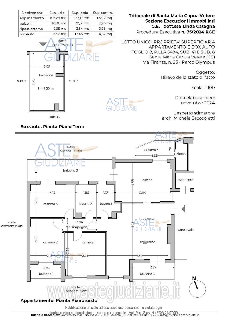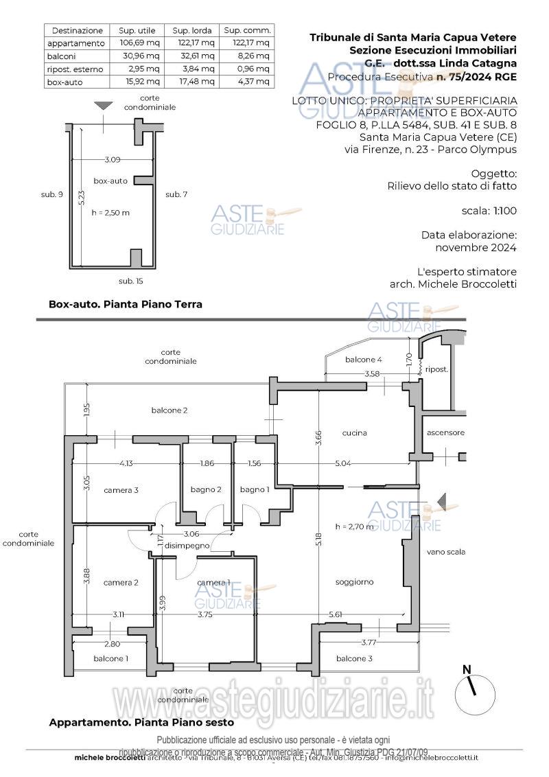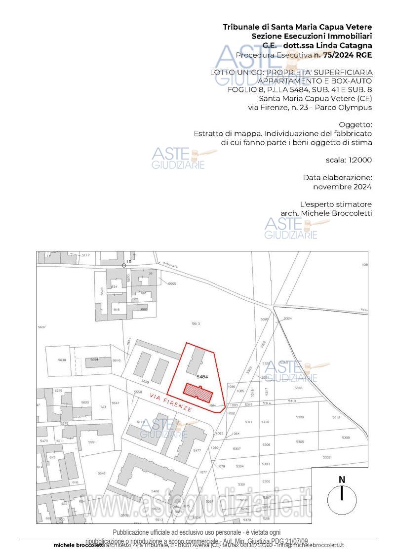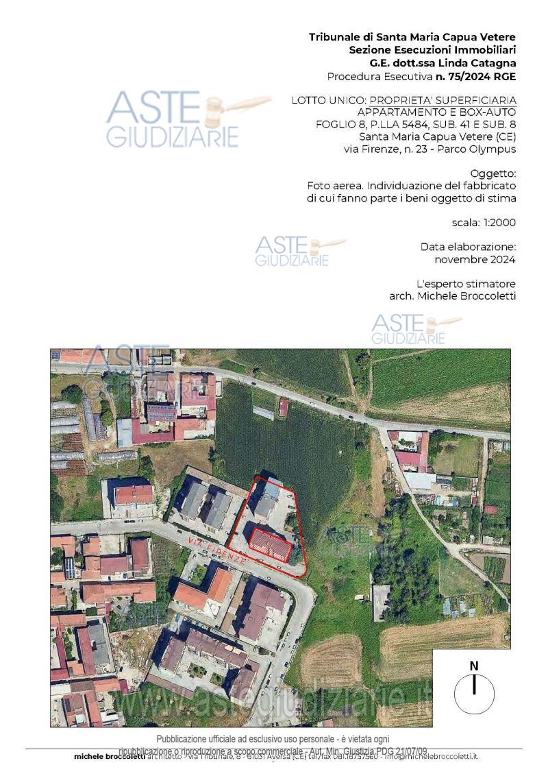 Vendita all'asta Senza incanto, con gara telematica asincrona - LOTTO UNICO: Proprietà superficiaria di un appartamento e di un box-auto, entrambi facenti parte di un edificio condominiale, denominato "Parco Olympus", scala A, sito in Santa Maria Capua Vetere (CE) alla via Firenze n. 23. Prezzo base € 70.500,00 (offerta minima € 52.875,00). Data inizio operazioni di vendita: 11/03/2026 ore 10:30. Professionista delegato alla vendita Avv. Giorgia Viola - Email "avv.giorgiaviola@libero.it"; Tel. 08118858628. Custode Giudiziario Avv. Giorgia Viola - Email "avv.giorgiaviola@libero.it"; Tel. 08118858628. Rif. Tribunale di Santa Maria Capua Vetere - Esecuzione immobiliare post legge 80 n. 75/2024