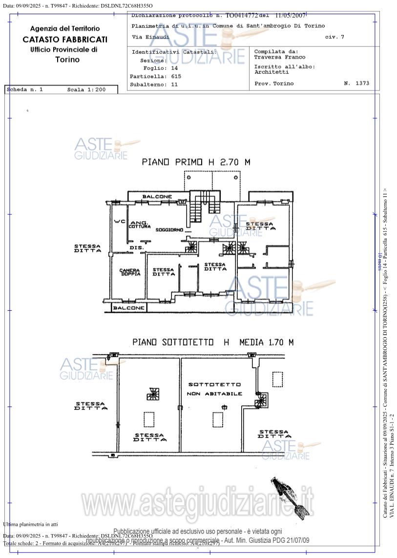 Vendita all'asta Senza incanto, con gara telematica asincrona - LOTTO 1: al piano primo (secondo fuori terra): alloggio composto da ingresso su soggiorno-zonacottura, disimpegno, camera, bagno e due balconi, oltre sottotetto non abitabilecomunicante mediante scala int. Prezzo base € 120.000,00 (offerta minima € 90.000,00). Data inizio operazioni di vendita: 06/07/2026 ore 15:30. Giudice Simona Gambacorta. Professionista delegato alla vendita Avv. Giuseppe Pensi - Email "giuseppe.pensi@inwind.it". Custode Giudiziario Avv. Giuseppe Pensi - Email "giuseppe.pensi@inwind.it". Rif. Tribunale di Torino - Espropriazione immobiliare (cartabia) n. 459/2025