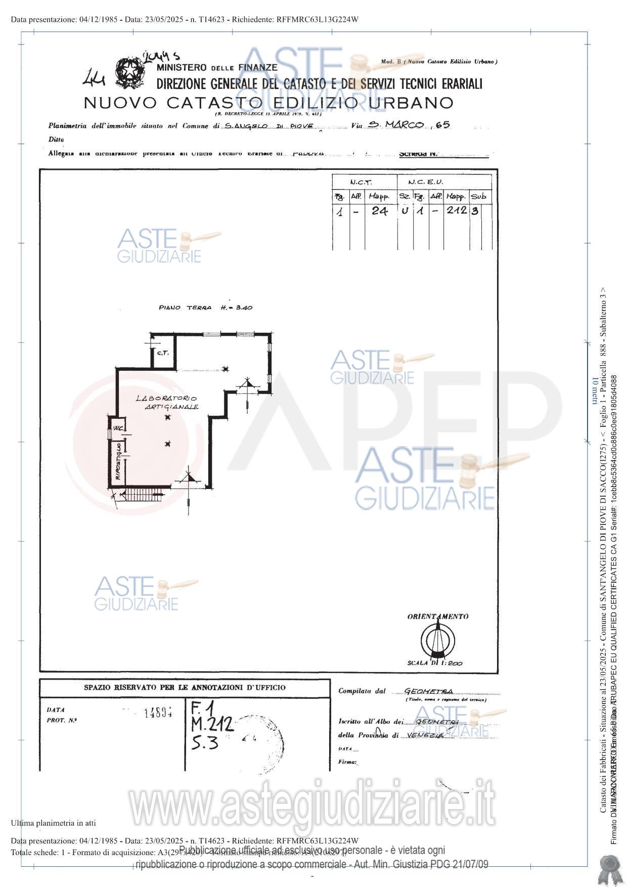 Vendita all'asta Senza incanto, con gara telematica sincrona - LOTTO UNICO: Lotto Unico - piena proprietà di fabbricato, sito in Comune di Sant'Angelo di Piove di Sacco (PD), località Celeseo, via San Marco n. 65 e precisamente trattasi di edificio composto da un laboratorio artigianale al piano terra con servizi e C.T. di mq. 180 e un appartamento al piano primo, accessibile da scala esterna, di mq. 128, con l'area coperta e scoperta pertinenziale di catastali mq. 520. Il laboratorio è occupato con titolo, l'appartamento è in corso di liberazione. Prezzo base € 165.000,00 (offerta minima € 123.750,00). Data vendita 09/04/2026 ore 14:15. Giudice Pasqualetto. Professionista delegato alla vendita Not. Roberto Paone - Email "aste@apepnotai.it"; Tel. 049651228. Custode Giudiziario Apep - Email "visita@apepnotai.it"; Tel. 049651228. Rif. Tribunale di Padova - Espropriazione immobiliare (cartabia) n. 96/2025