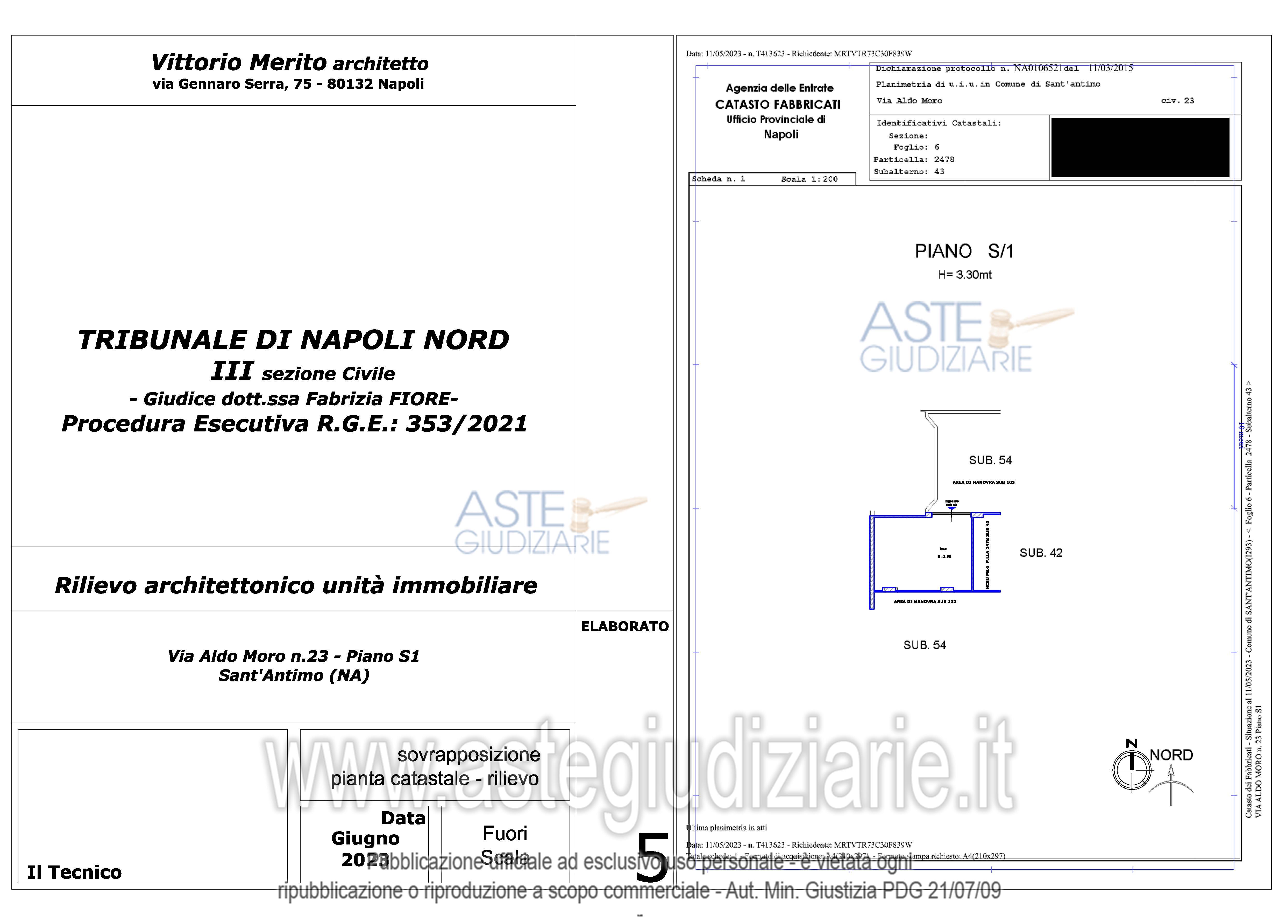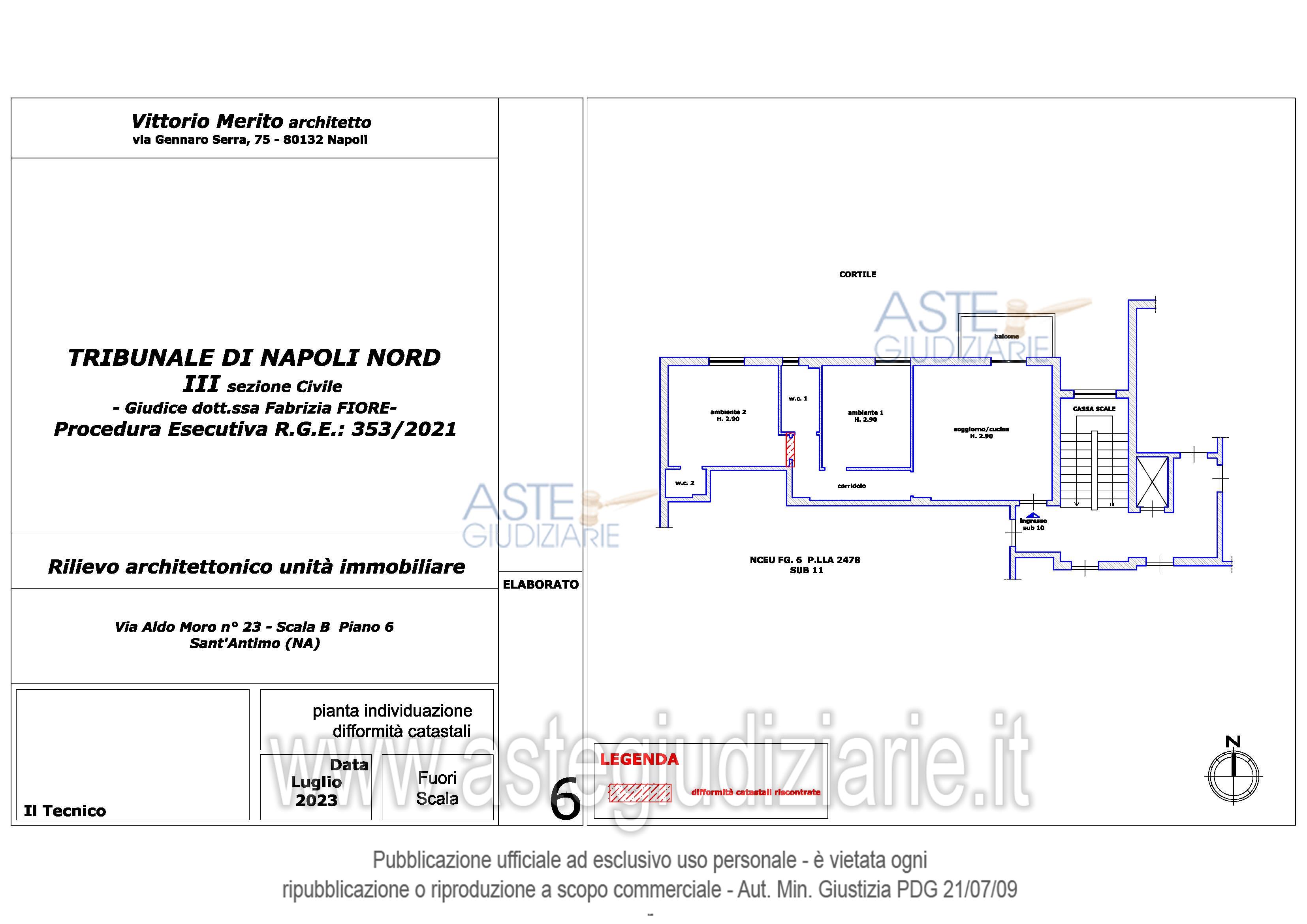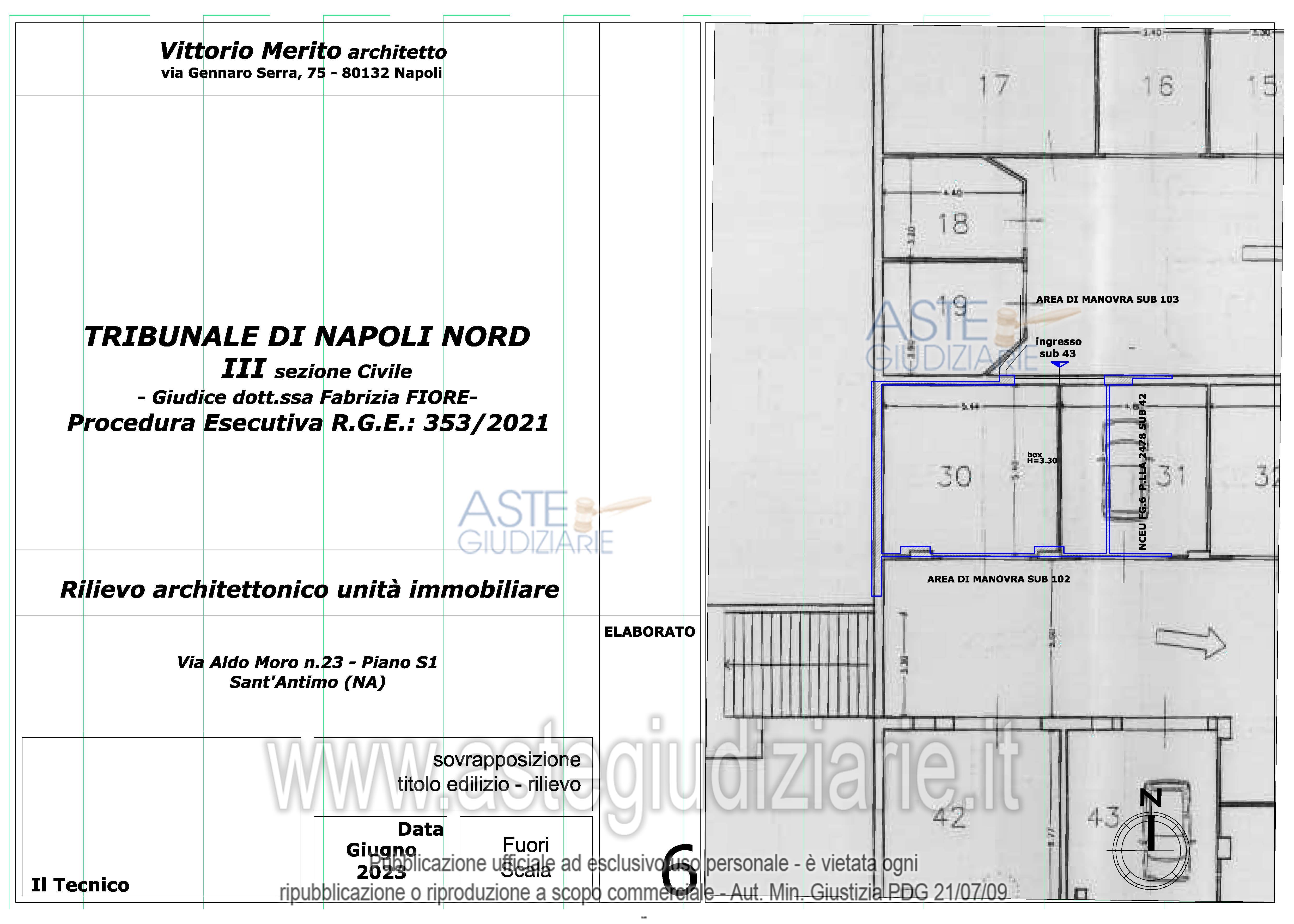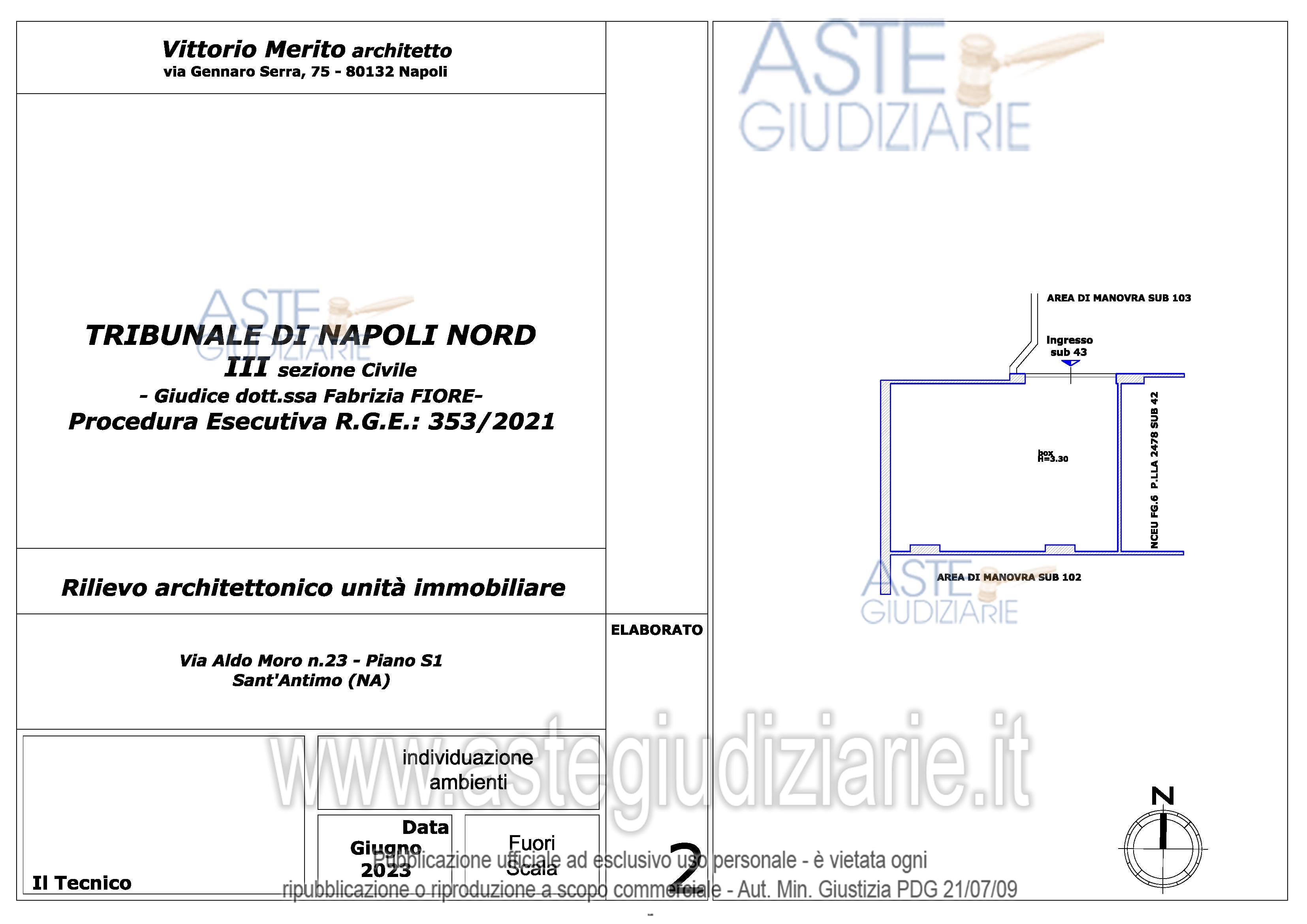 Vendita all'asta Senza incanto, con gara telematica asincrona - LOTTO 22: BENE 1 – Appartamento libero sito nel Comune di Sant’Antimo (Na) a via Aldo Moro n° 55 (catastalmente civ. 23), scala B piano 6 “Parco Omissis” composto da soggiorno/cucina, n. 2 ambienti, n. 2 w.c., corridoio e n. 1 balcone; in NCEU foglio 6, particella 2478, sub. 10, cat. A/2, classe 6, consistenza 4 vani, sup. cat. totale 76 mq. BENE 2 - Garage. occupato sine titulo, in NCEU foglio 6, part. 2478, sub 43 cat. C/6, classe 3, consistenza 36 mq, sup. cat. 38 mq. Prezzo base € 96.000,00 (offerta minima € 72.000,00). Data inizio operazioni di vendita: 27/11/2025 ore 16:00. Custode Giudiziario Dott. Francesco Russo - Email "studiocasillorusso@libero.it"; Tel. 0815404454. Rif. Tribunale di Napoli Nord - Esecuzione immobiliare post legge 80 n. 353/2021