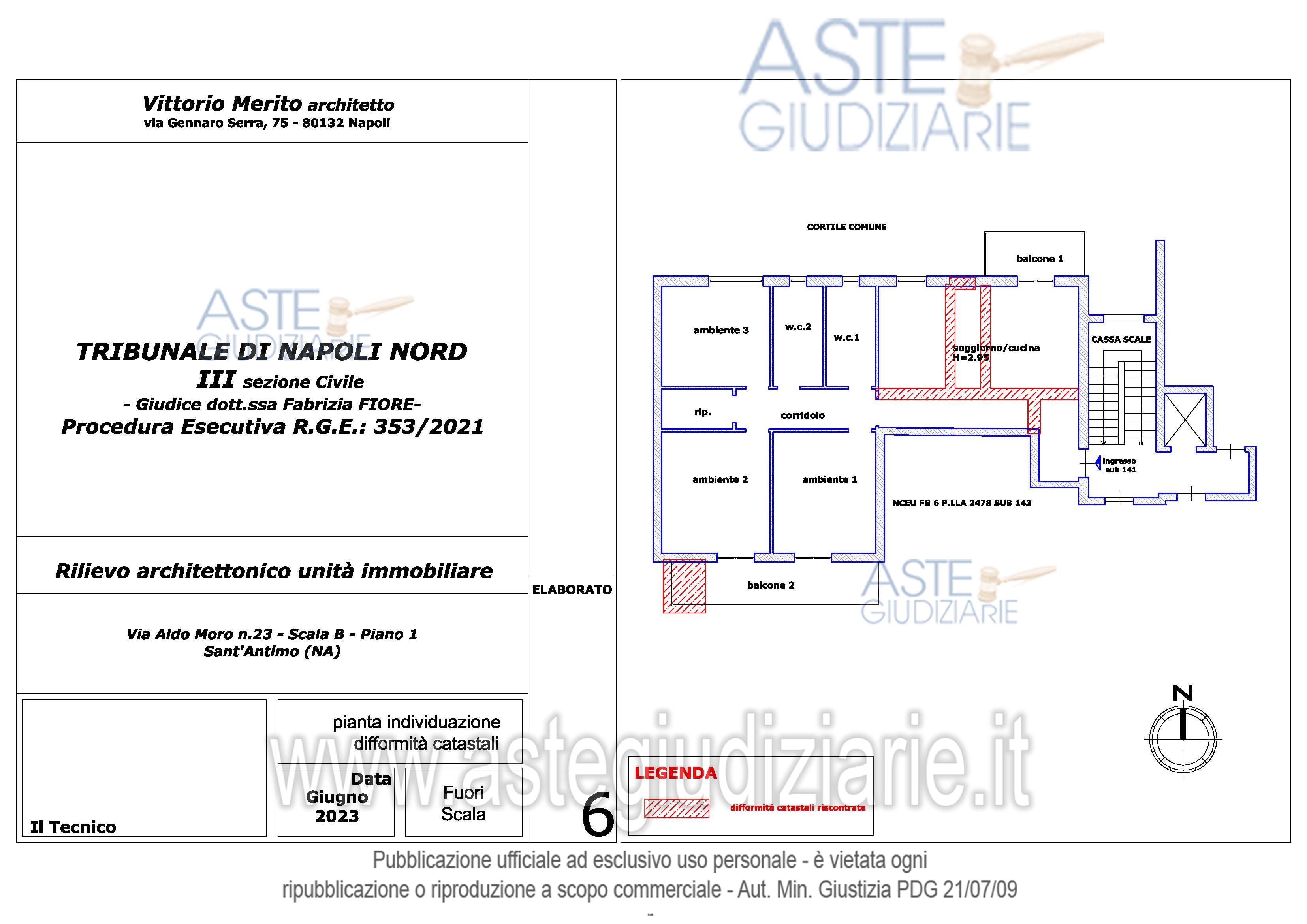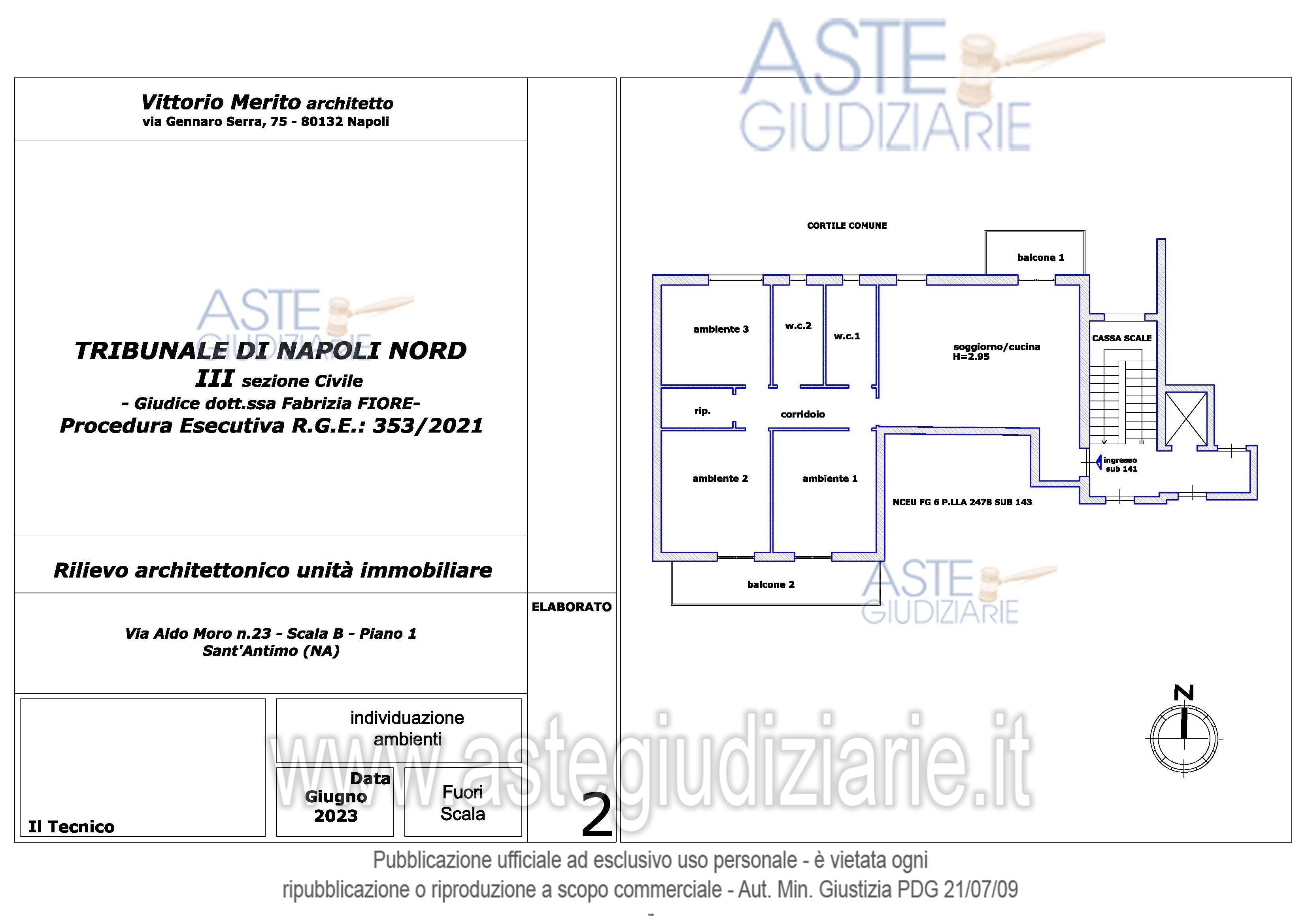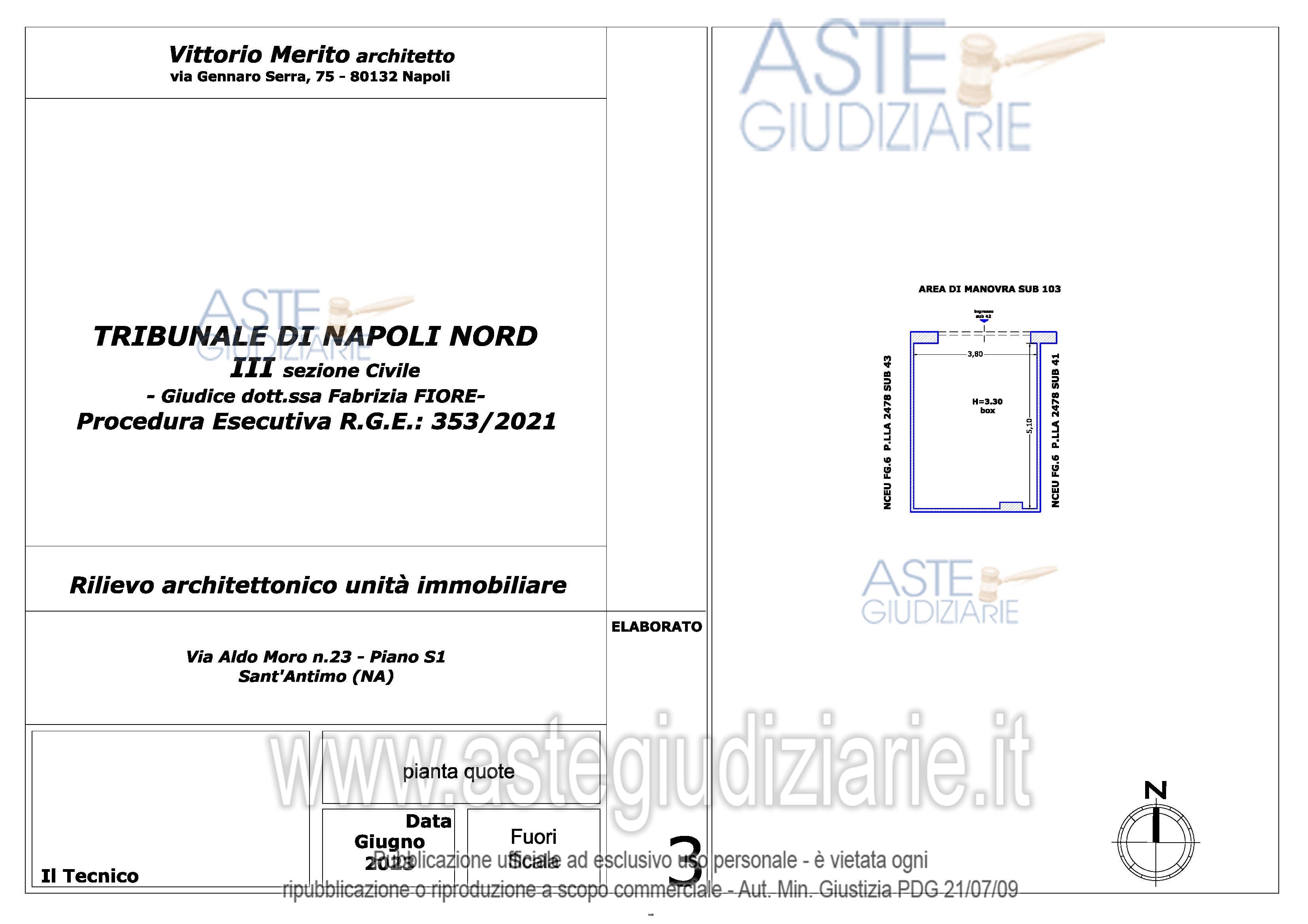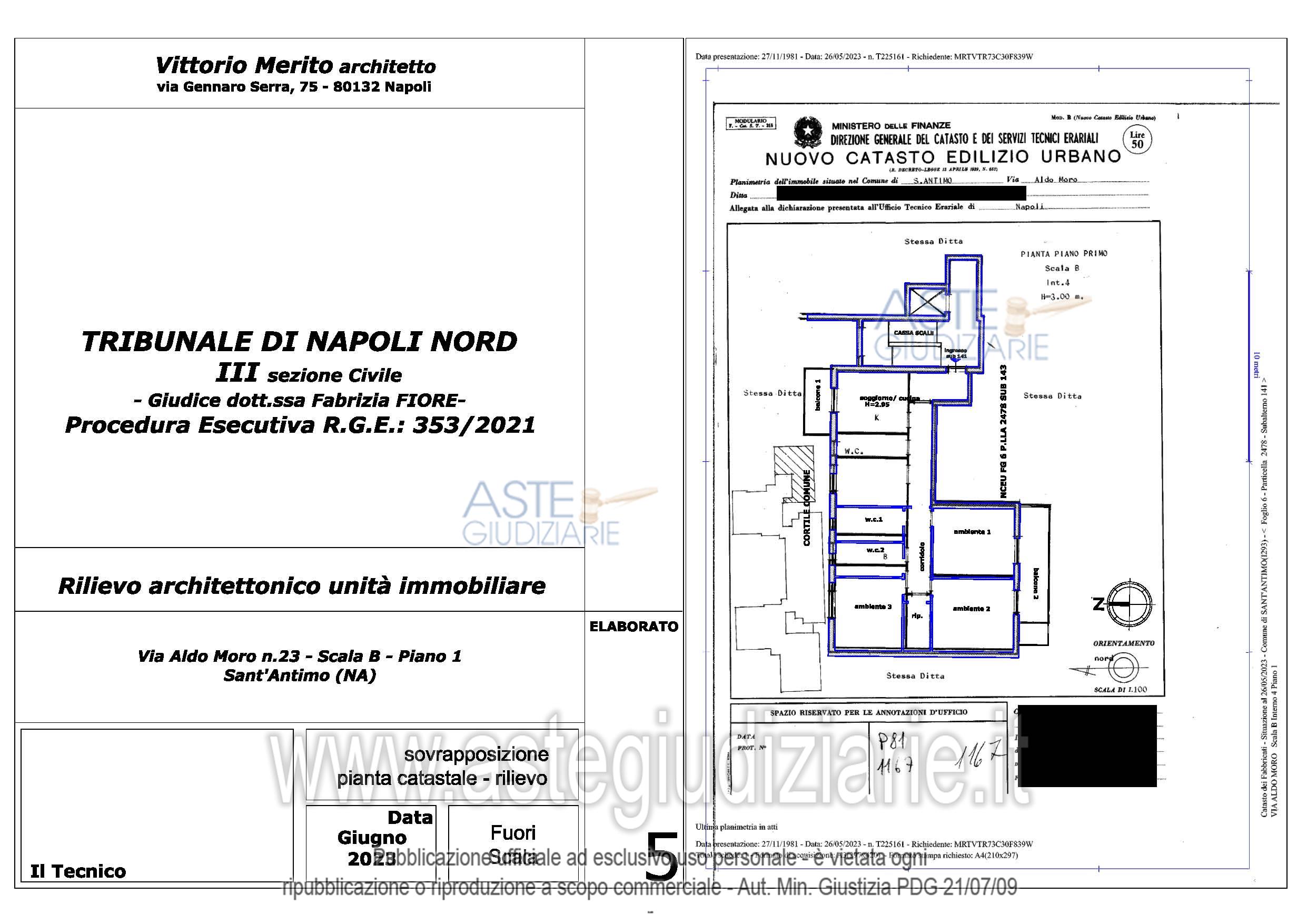 Vendita all'asta Senza incanto, con gara telematica asincrona - LOTTO 35: BENE 1 – Appartamento sito nel Comune di Sant’Antimo (Na) a via Aldo Moro 55, scala B, interno 4, piano 1 “Parco Omissis” composto da soggiorno/cucina, n. 3 ambienti, n. 2 w.c., corridoio, ripostiglio e n. 2 balconi; in NCEU foglio 6, particella 2478, sub. 141, cat. A/2, classe 6, consistenza 6,5 vani, sup. cat. totale 125 mq . BENE 2 - Garage al paino S1, in NCEU foglio 6, part. 2478, sub 42, cat. C/6, classe 3, consistenza 20 mq, sup. cat. 21 mq. I beni de quibus risultano liberi. Prezzo base € 141.400,00 (offerta minima € 106.050,00). Data inizio operazioni di vendita: 27/11/2025 ore 16:00. Custode Giudiziario Dott. Francesco Russo - Email "studiocasillorusso@libero.it"; Tel. 0815404454. Rif. Tribunale di Napoli Nord - Esecuzione immobiliare post legge 80 n. 353/2021