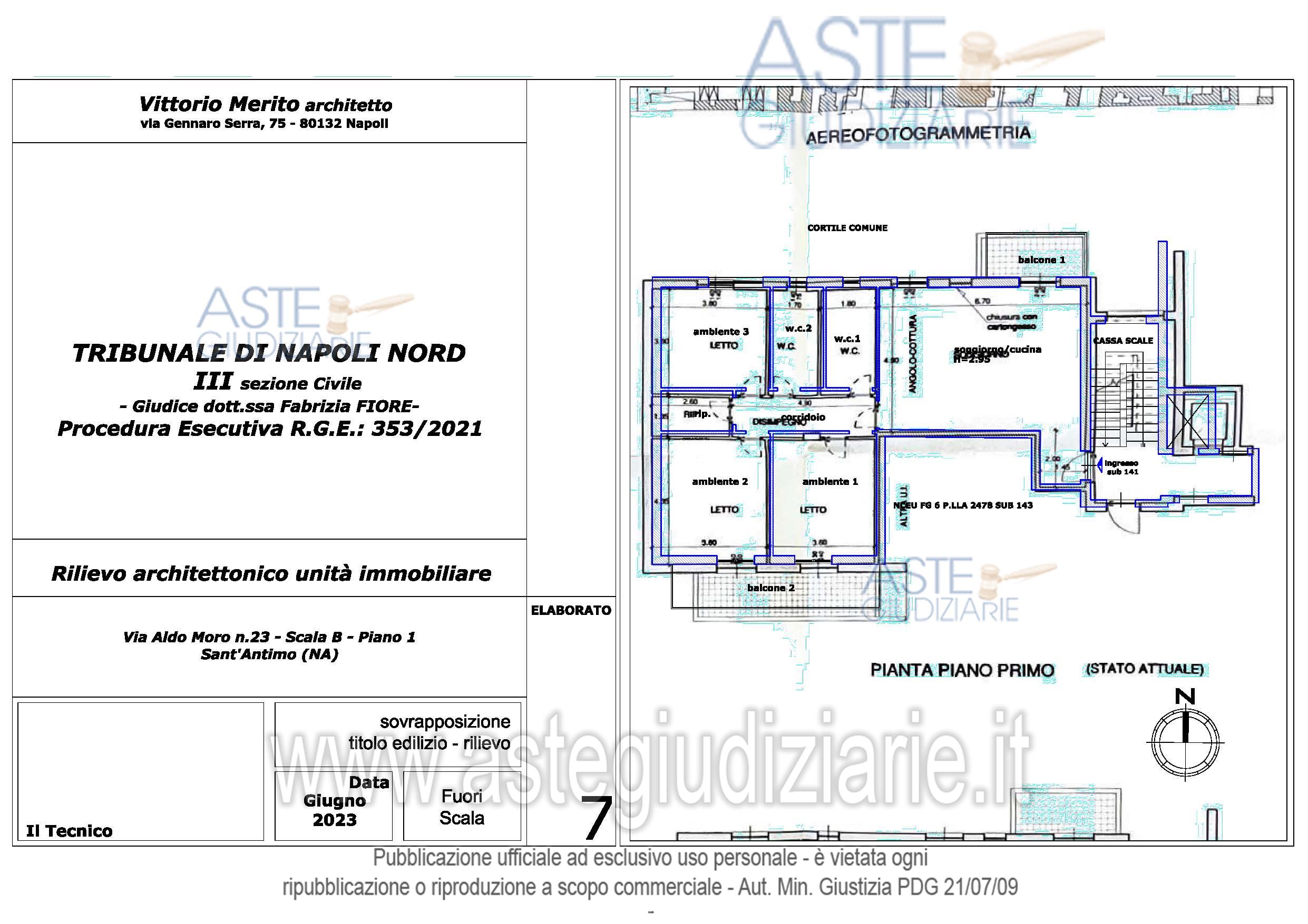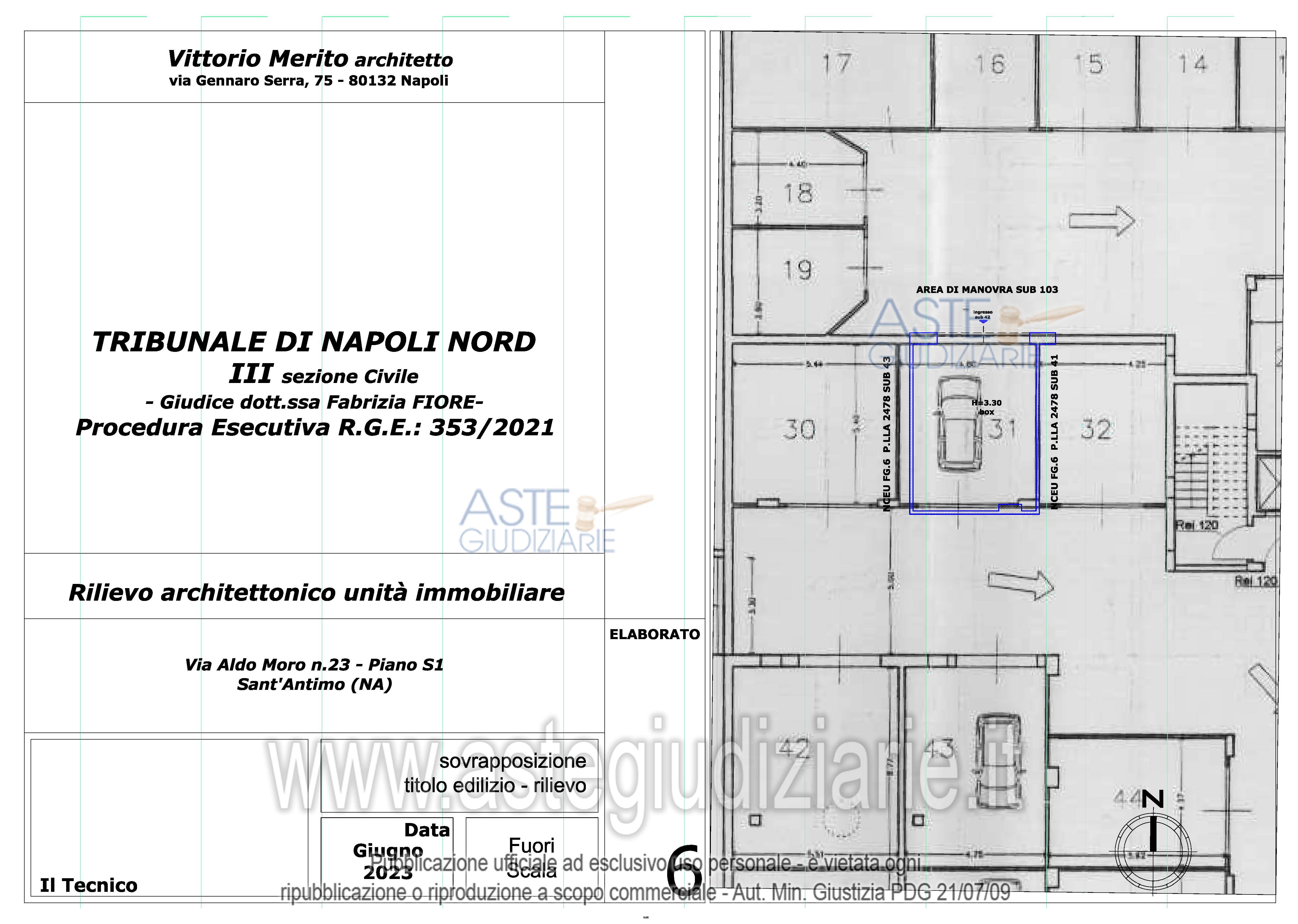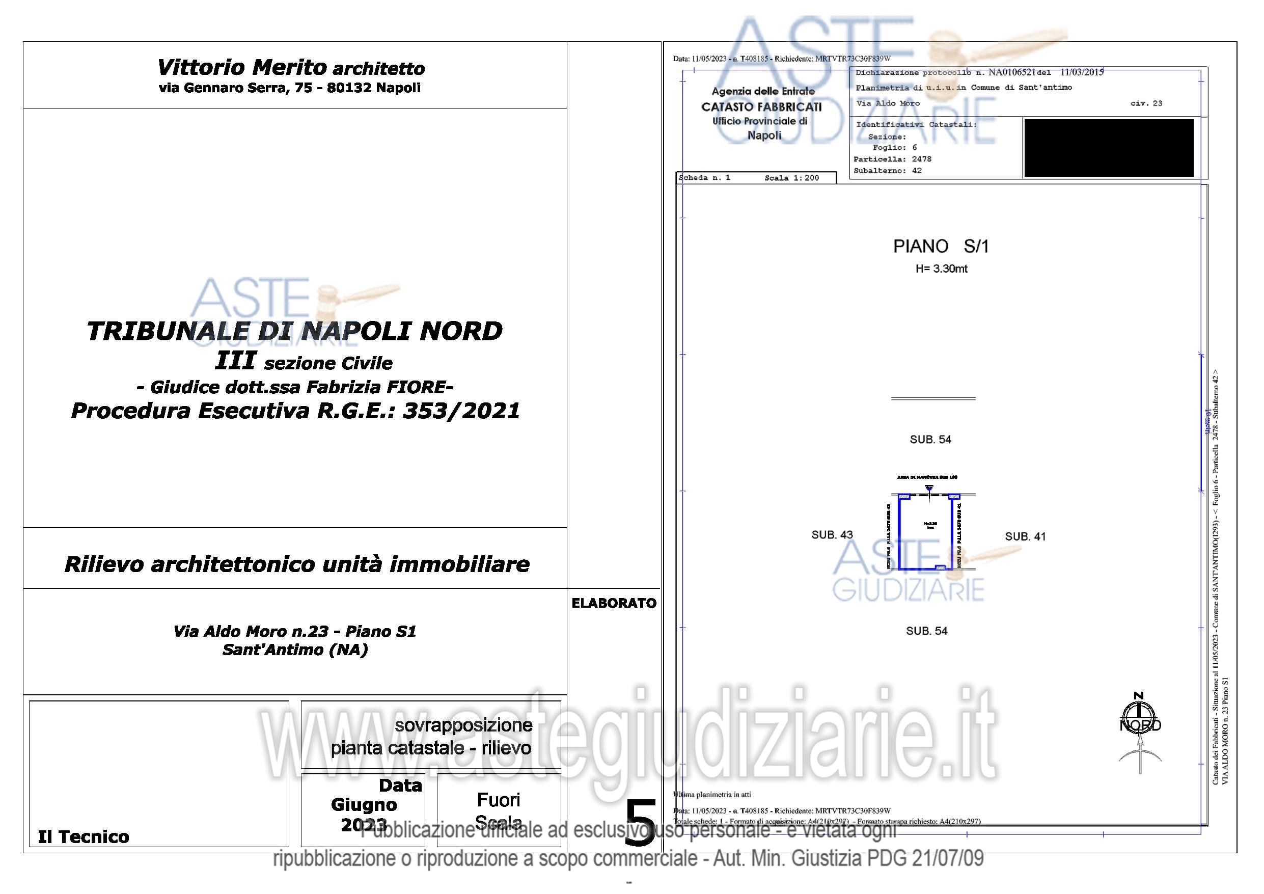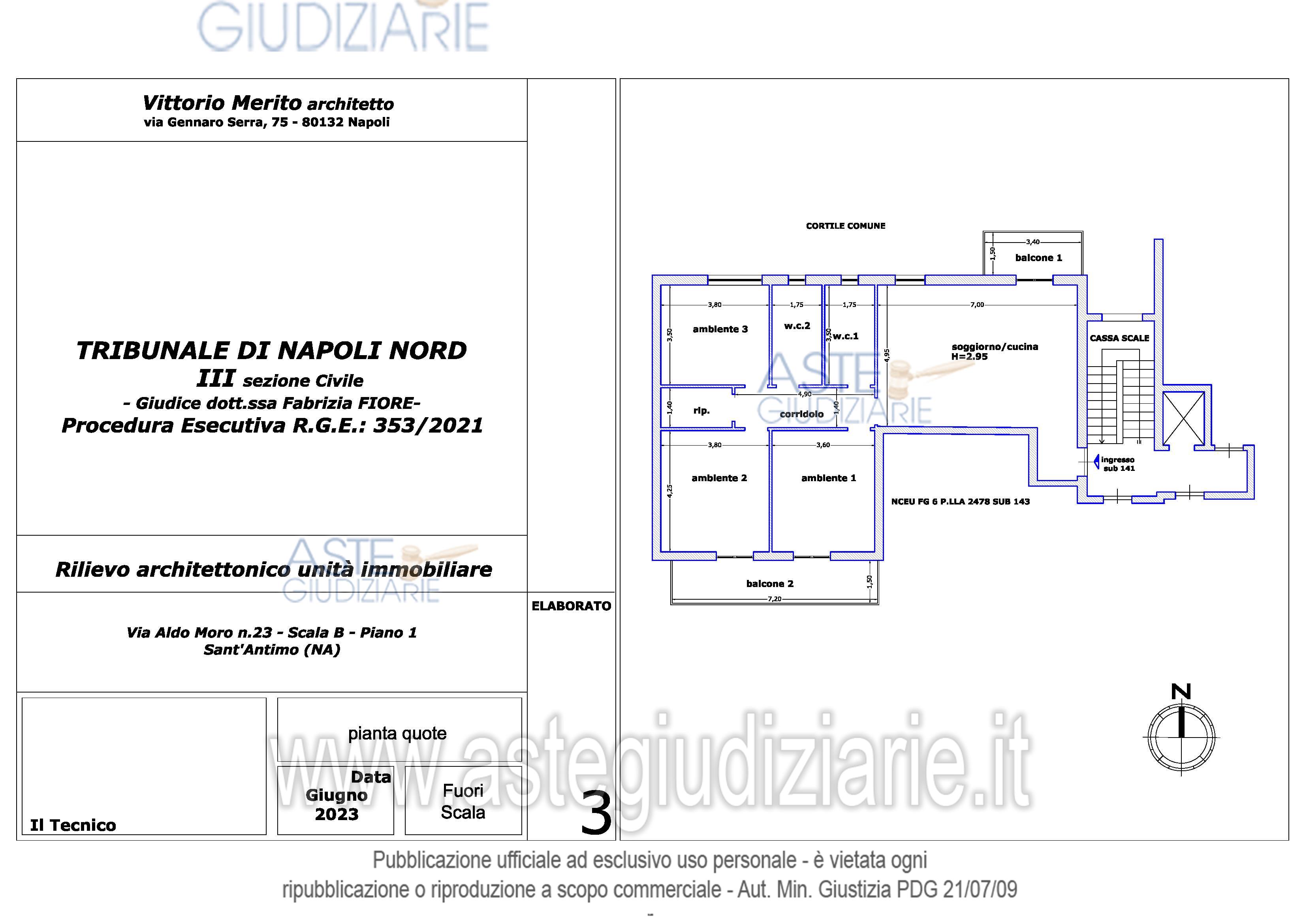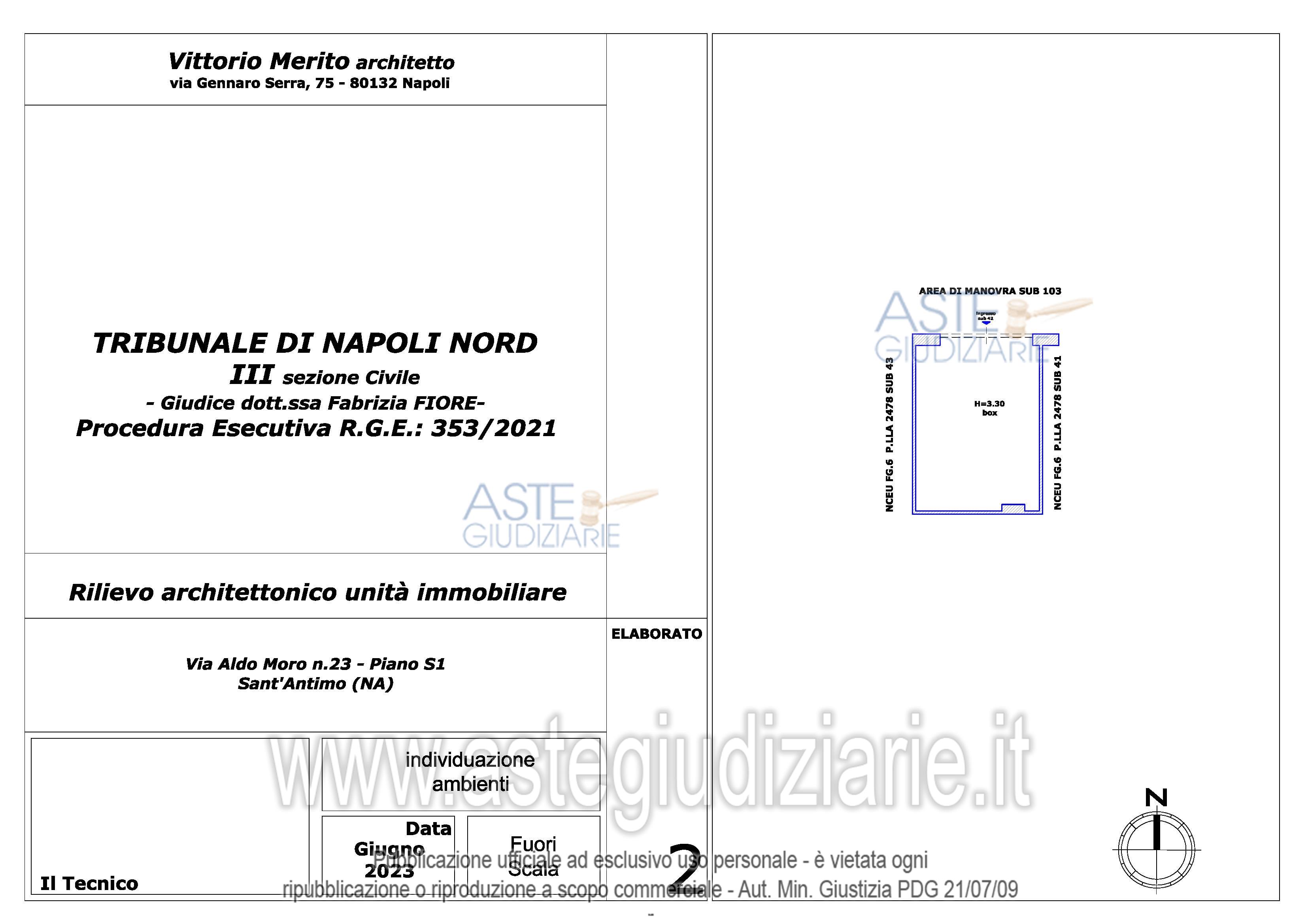 Vendita all'asta Senza incanto, con gara telematica asincrona - LOTTO 35: BENE 1 – Appartamento sito nel Comune di Sant’Antimo (Na) a via Aldo Moro 55, scala B, interno 4, piano 1 “Parco Omissis” composto da soggiorno/cucina, n. 3 ambienti, n. 2 w.c., corridoio, ripostiglio e n. 2 balconi; in NCEU foglio 6, particella 2478, sub. 141, cat. A/2, classe 6, consistenza 6,5 vani, sup. cat. totale 125 mq . BENE 2 - Garage al paino S1, in NCEU foglio 6, part. 2478, sub 42, cat. C/6, classe 3, consistenza 20 mq, sup. cat. 21 mq. I beni de quibus risultano liberi. Prezzo base € 141.400,00 (offerta minima € 106.050,00). Data inizio operazioni di vendita: 27/11/2025 ore 16:00. Custode Giudiziario Dott. Francesco Russo - Email "studiocasillorusso@libero.it"; Tel. 0815404454. Rif. Tribunale di Napoli Nord - Esecuzione immobiliare post legge 80 n. 353/2021