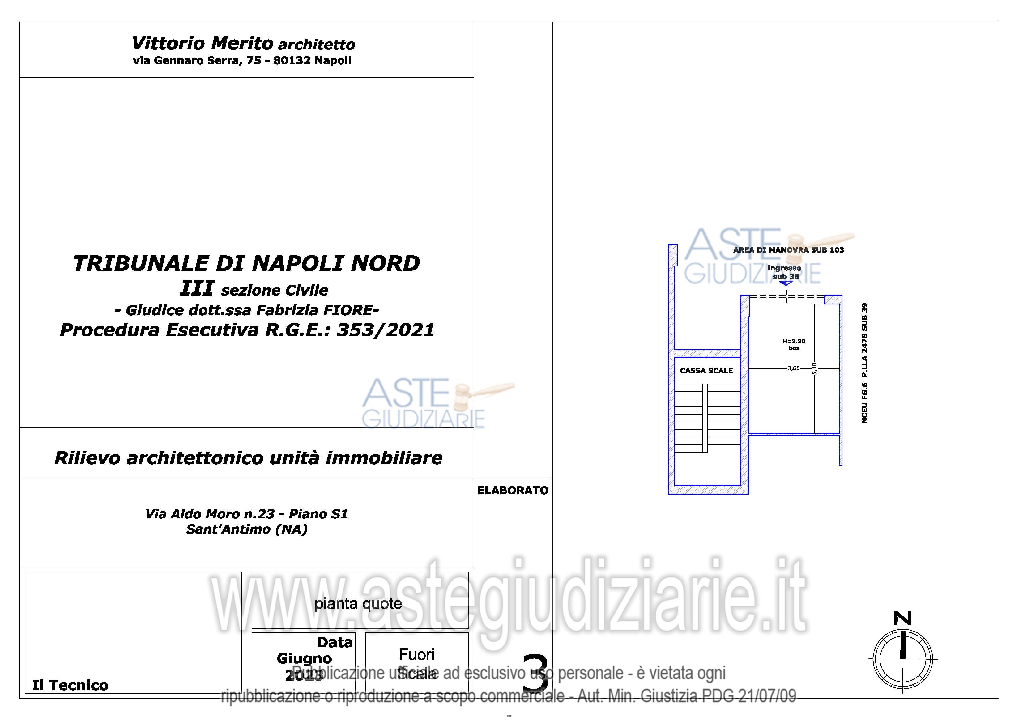 Vendita all'asta Senza incanto, con gara telematica asincrona - LOTTO 11: BENE 1 – Appartamento, ubicato nel Comune di Sant’Antimo (Na) a via Aldo Moro n° 55 (catastalmente civ. 23), scala A - piano T – “Parco Omissis”, identificato al NCEU del Comune di Sant’Antimo al foglio 6, particella 2478, sub. 17, cat. A/2, classe 5, consistenza 3,5 vani, sup. cat. totale 68 mq escluse aree scoperte 63 mq, composto da: soggiorno/cucina, n. 2 ambienti, n. 1 w.c., disimpegno e n. 2 balconi. BENE 2 - Garage- foglio 6, part. 2478, sub. 17, consistenza 3,5 vani, sup. cat. totale 68 mq . Prezzo base € 82.400,00 (offerta minima € 61.800,00). Data inizio operazioni di vendita: 27/11/2025 ore 16:00. Custode Giudiziario Dott. Francesco Russo - Email "studiocasillorusso@libero.it"; Tel. 0815404454. Rif. Tribunale di Napoli Nord - Esecuzione immobiliare post legge 80 n. 353/2021