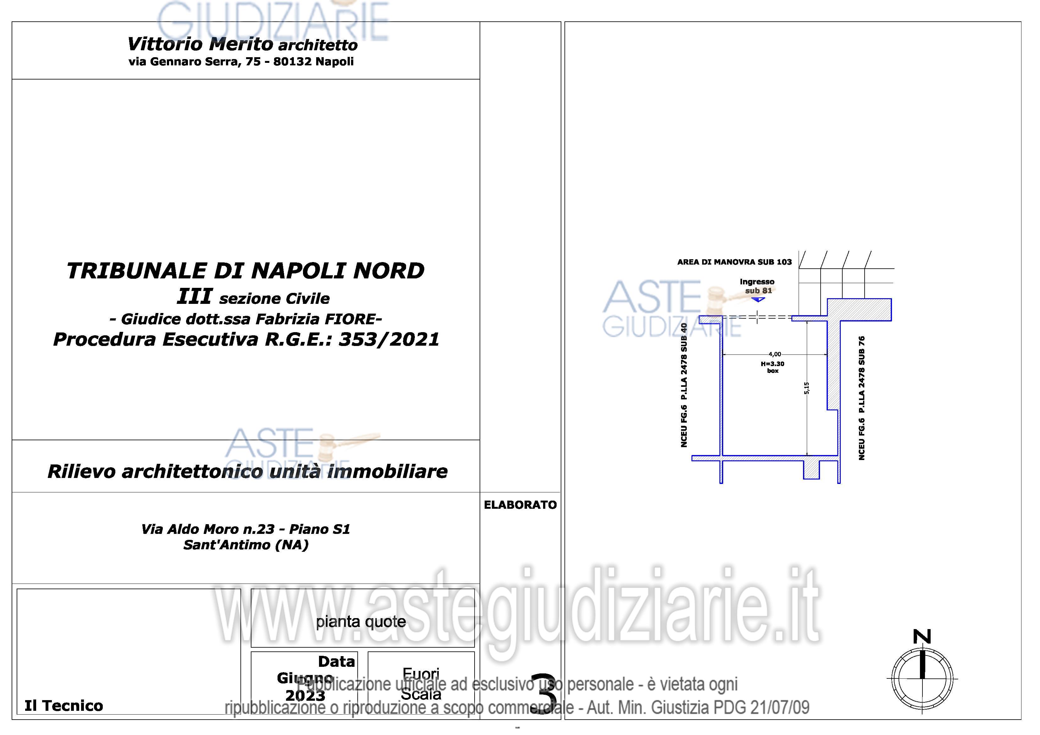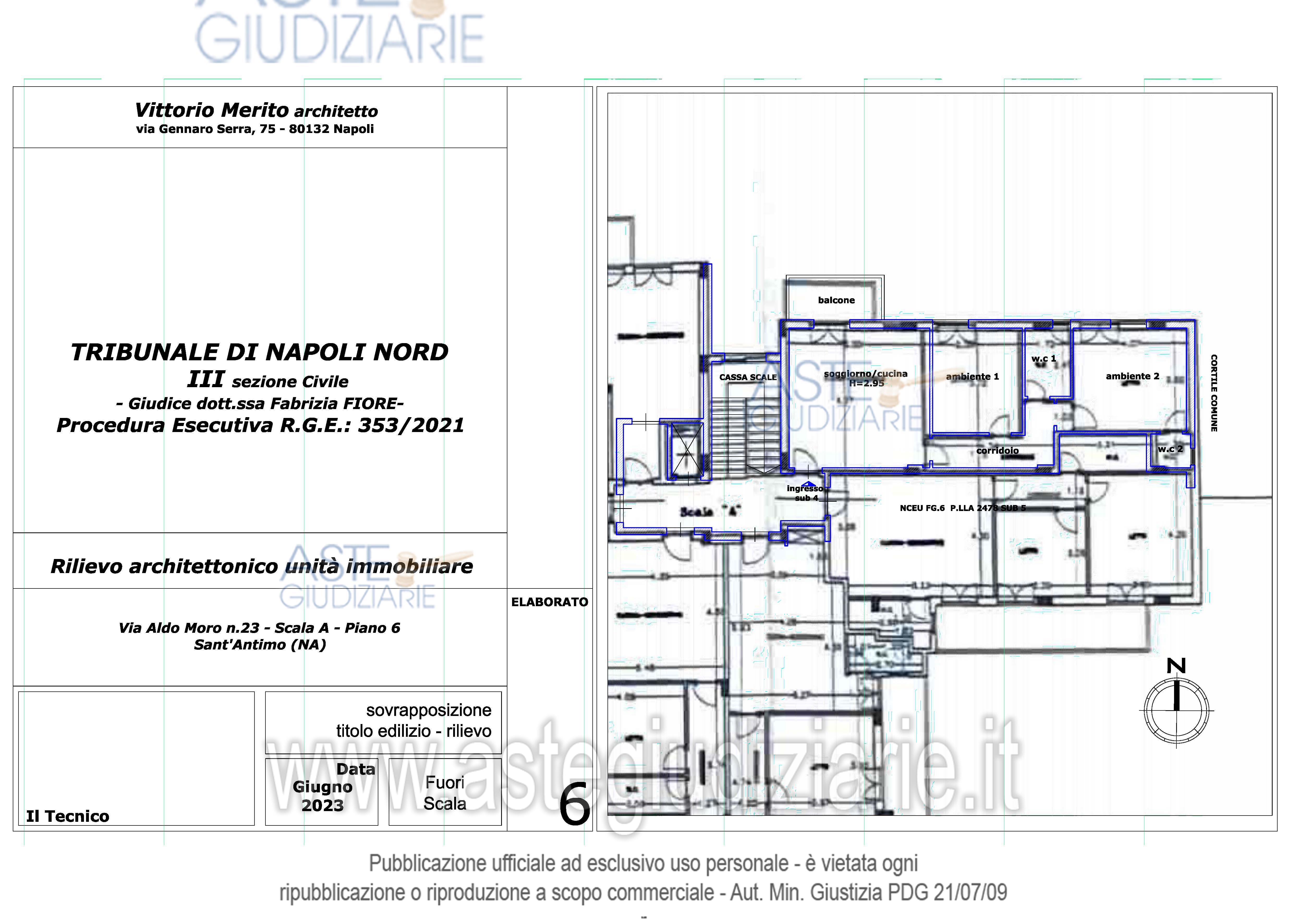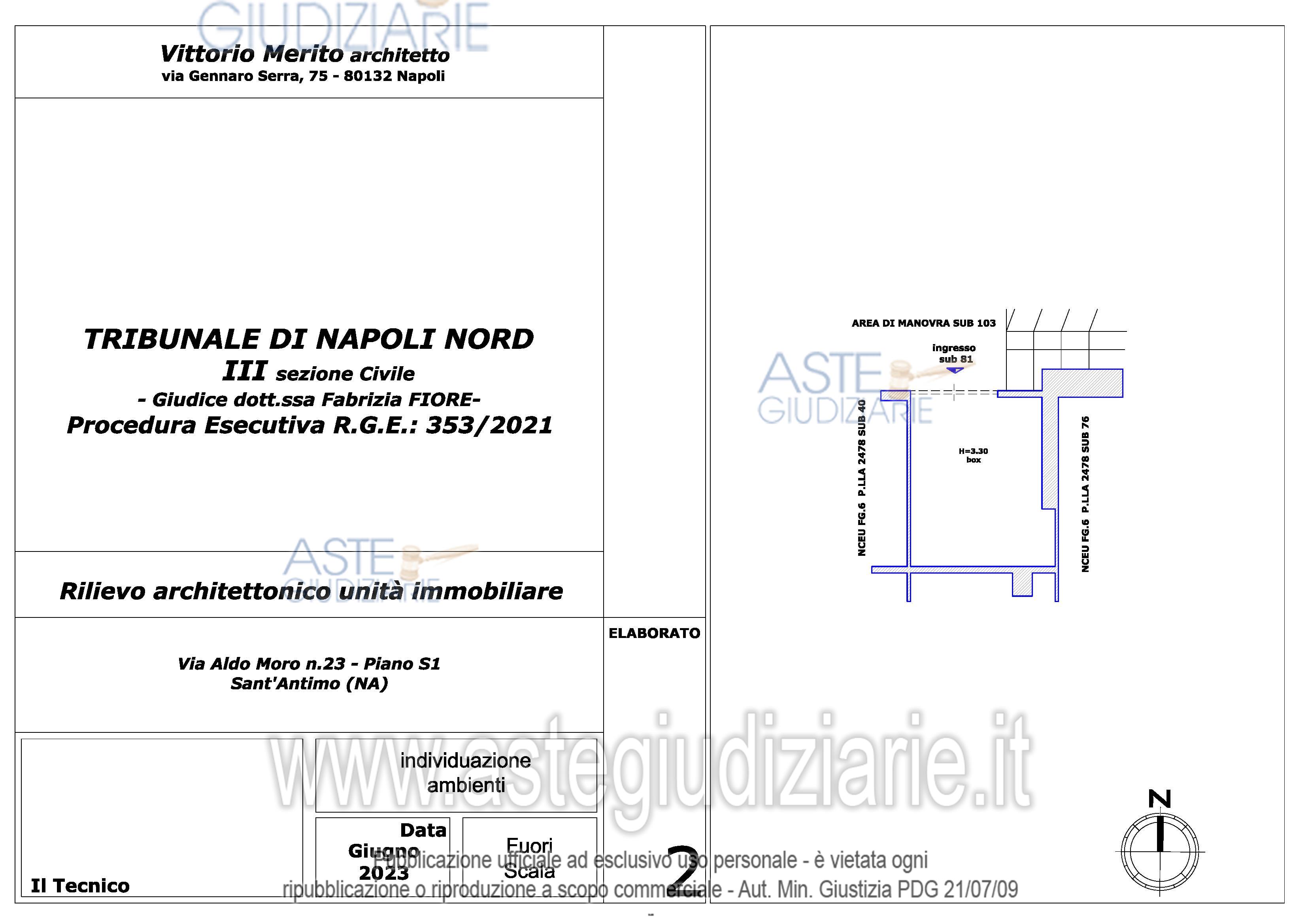 Vendita all'asta Senza incanto, con gara telematica asincrona - LOTTO 14: BENE 1 – Appartamento ubicato nel Comune di Sant’Antimo (Na) a via Aldo Moro n° 55 (catastalmente civ. 23), scala A - piano 6 – “Parco Omissis” composto da: soggiorno/cucina, n. 2 ambienti, n. 2 w.c., corridoio e n. 1 balcone; riportato in NCEU al foglio 6, particella 2478, sub. 4, cat. A/2, classe 6, consistenza 4 vani, sup. cat. totale 76 mq escluse aree scoperte 74 mq. BENE 2 - Garage riportato nel NCEU del Comune di Sant’Antimo, foglio 6, particella 2478, sub. 81. I beni de quibus risultano liberi . Prezzo base € 92.800,00 (offerta minima € 69.600,00). Data inizio operazioni di vendita: 27/11/2025 ore 16:00. Custode Giudiziario Dott. Francesco Russo - Email "studiocasillorusso@libero.it"; Tel. 0815404454. Rif. Tribunale di Napoli Nord - Esecuzione immobiliare post legge 80 n. 353/2021
