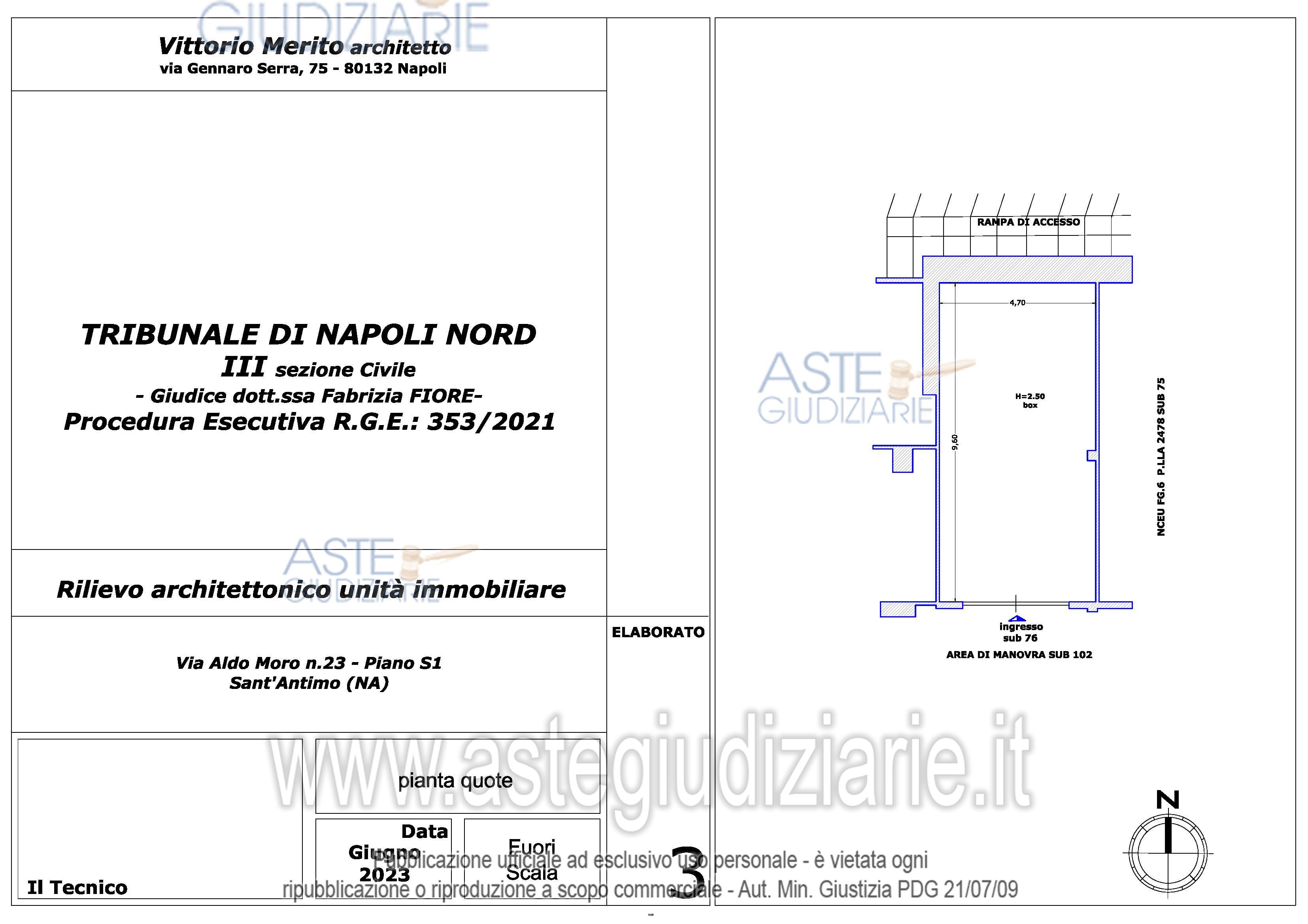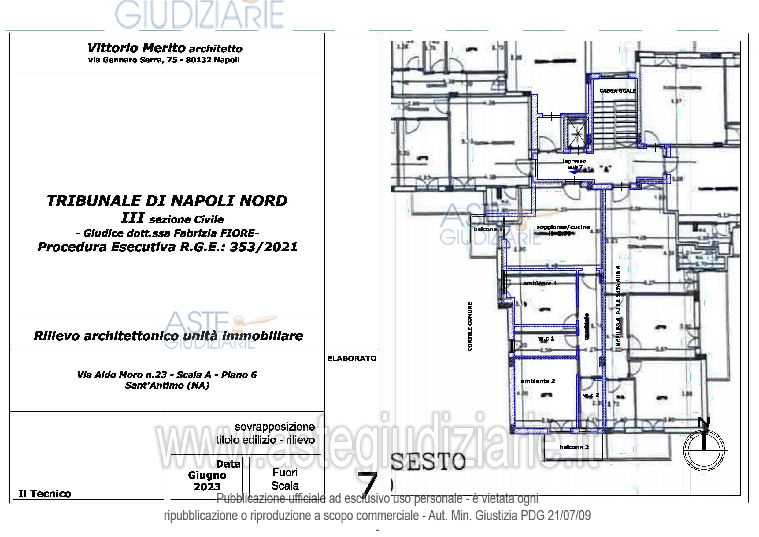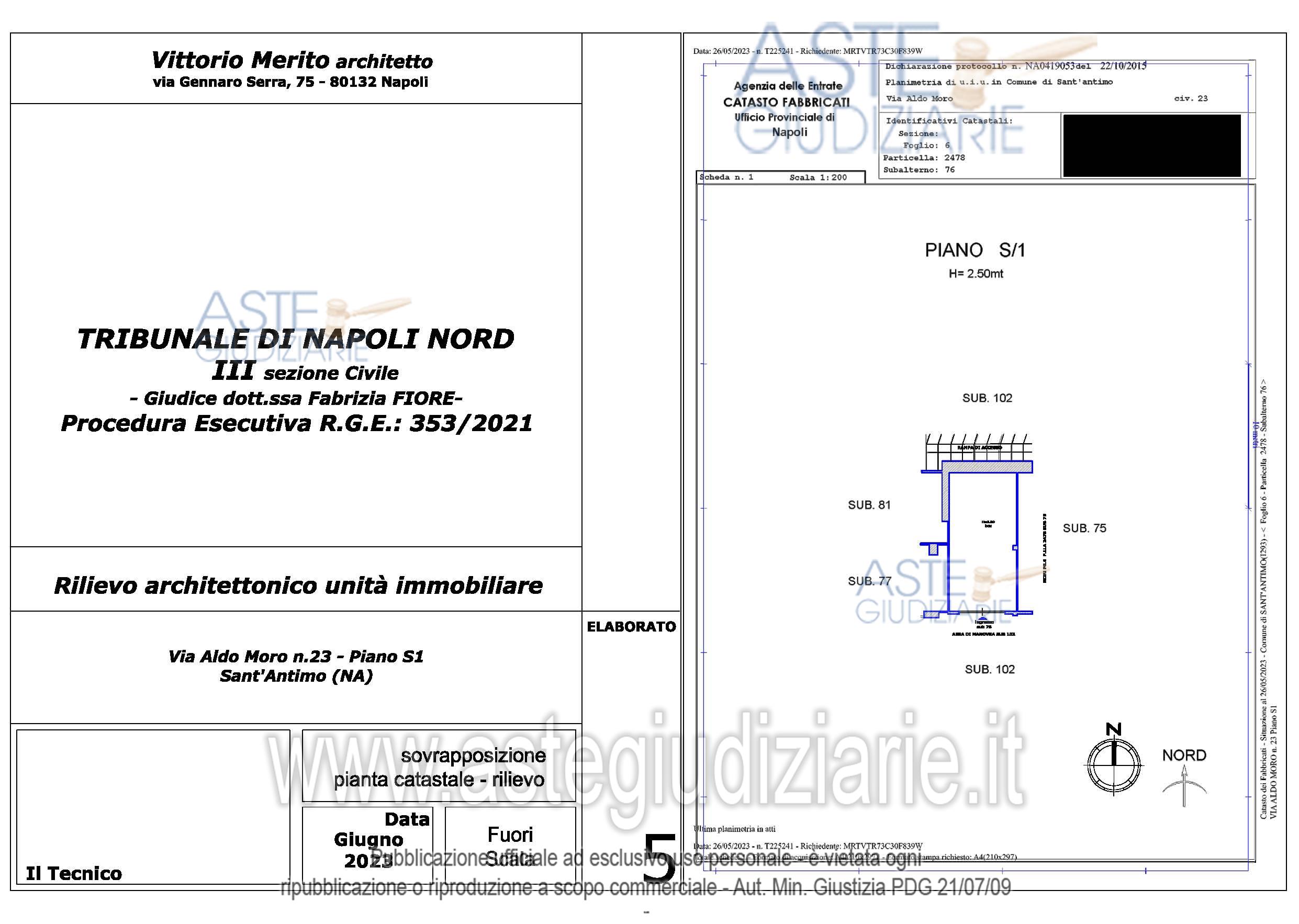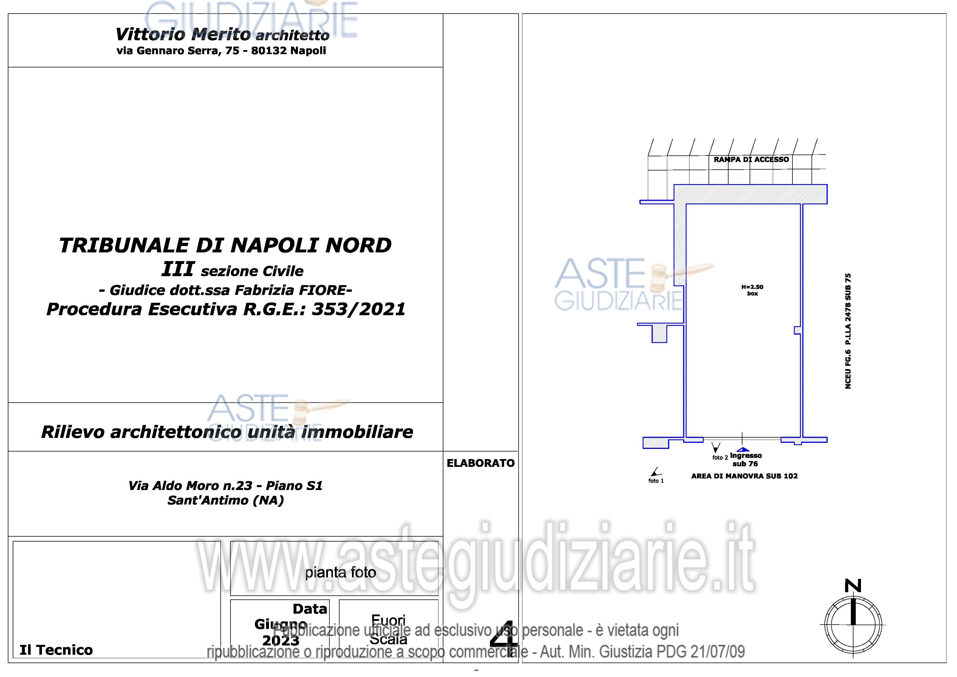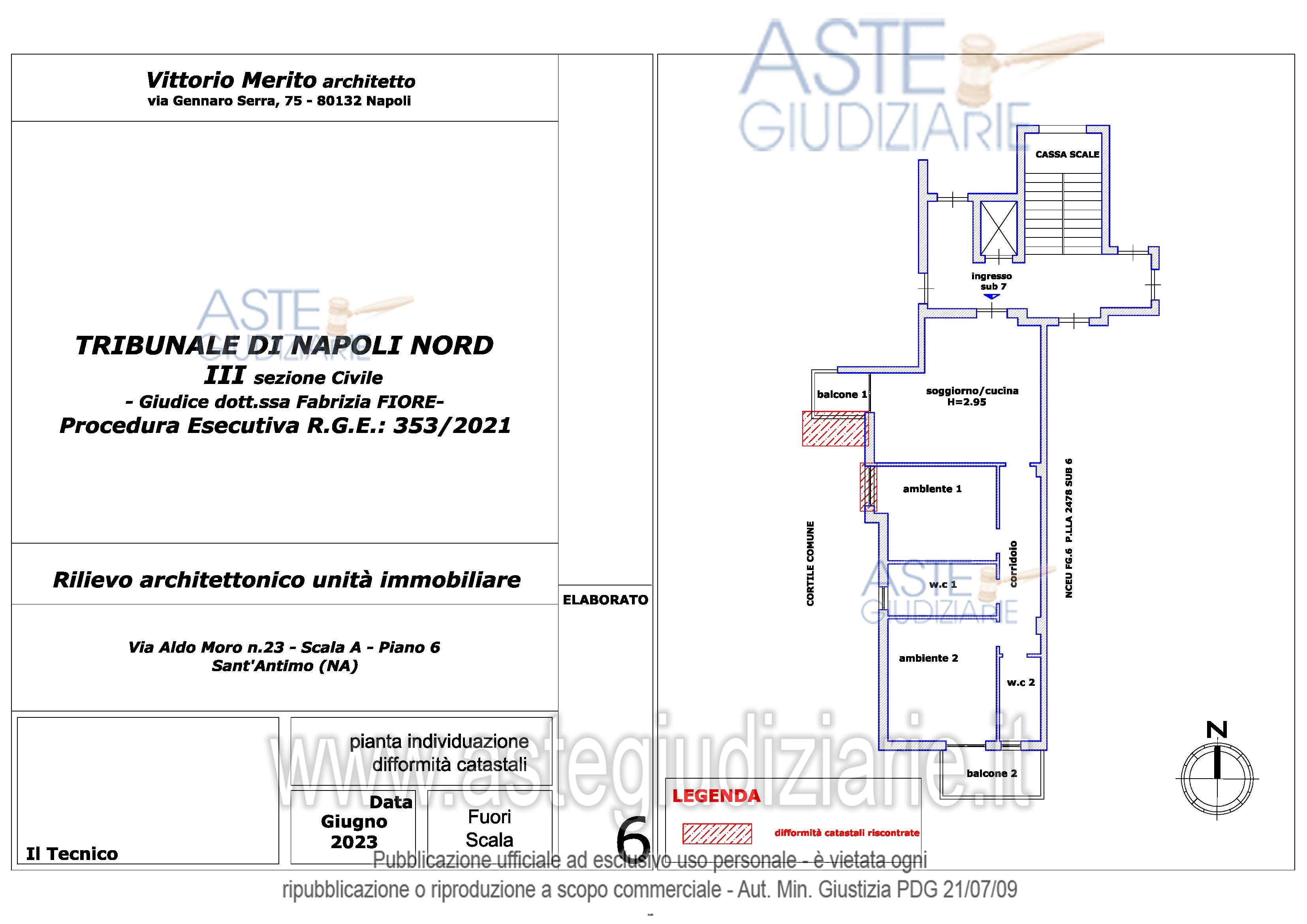 Vendita all'asta Senza incanto, con gara telematica asincrona - LOTTO 16: BENE 1 – Appartamento libero ubicato nel Comune di Sant’Antimo (Na) via Aldo Moro n° 55 (catastalmente civ. 23) scala A piano 6 “Parco Omissis” composto da soggiorno/cucina, n. 2 ambienti, n. 2 w.c., corridoio e n. 2 balconi in NCEU foglio 6, particella 2478, sub. 7, cat. A/2, consistenza 4 vani, sup. cat. totale 79 mq escluse aree scoperte 76 mq, rendita € 340,86. BENE 2 - Garage occupato sine titulo, in NCEU foglio 6, particella 2478, sub 76 cat. C/6, classe 3, consistenza 45 mq, sup. cat. 51 mq. Prezzo base € 109.400,00 (offerta minima € 82.050,00). Data inizio operazioni di vendita: 27/11/2025 ore 16:00. Custode Giudiziario Dott. Francesco Russo - Email "studiocasillorusso@libero.it"; Tel. 0815404454. Rif. Tribunale di Napoli Nord - Esecuzione immobiliare post legge 80 n. 353/2021