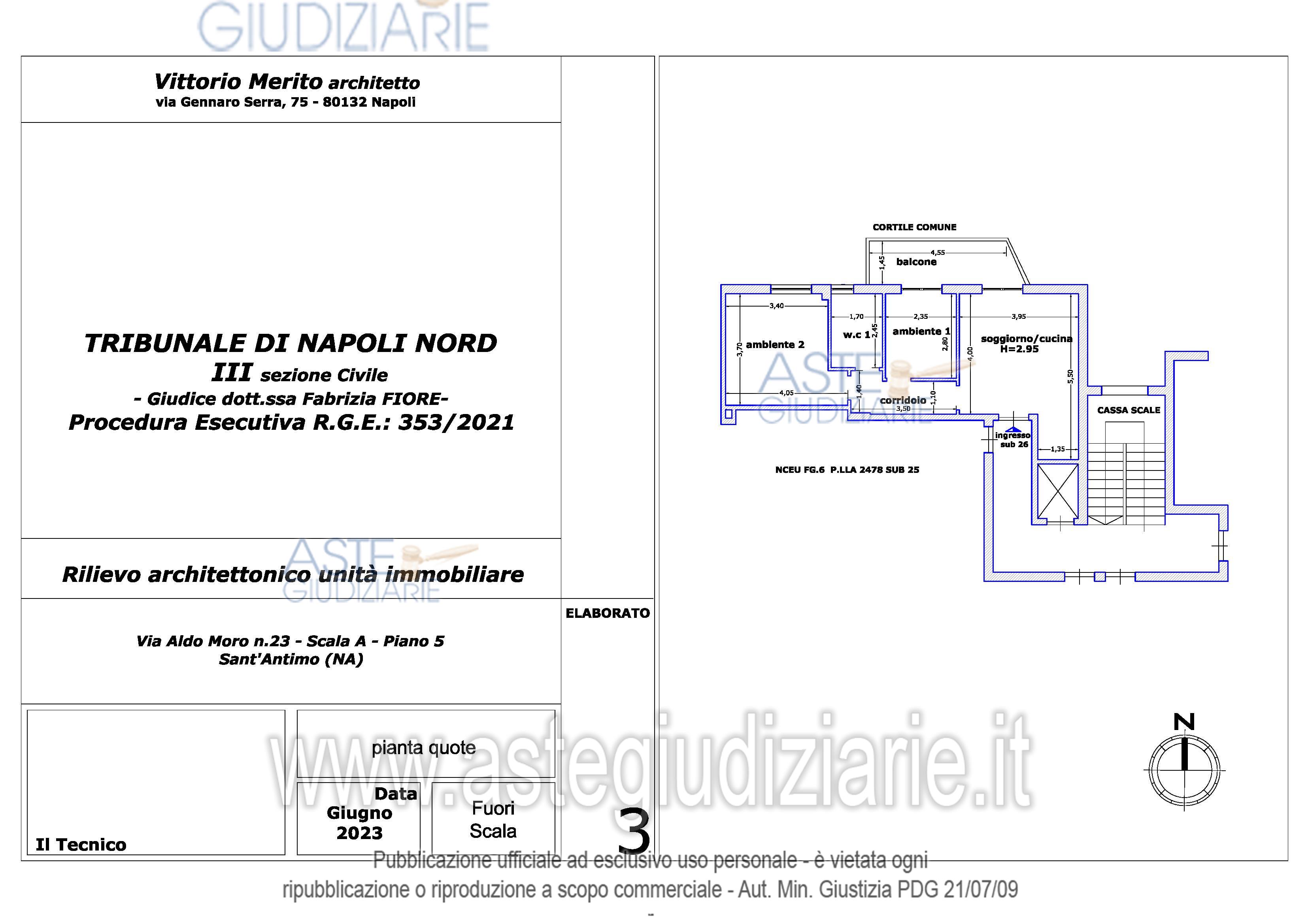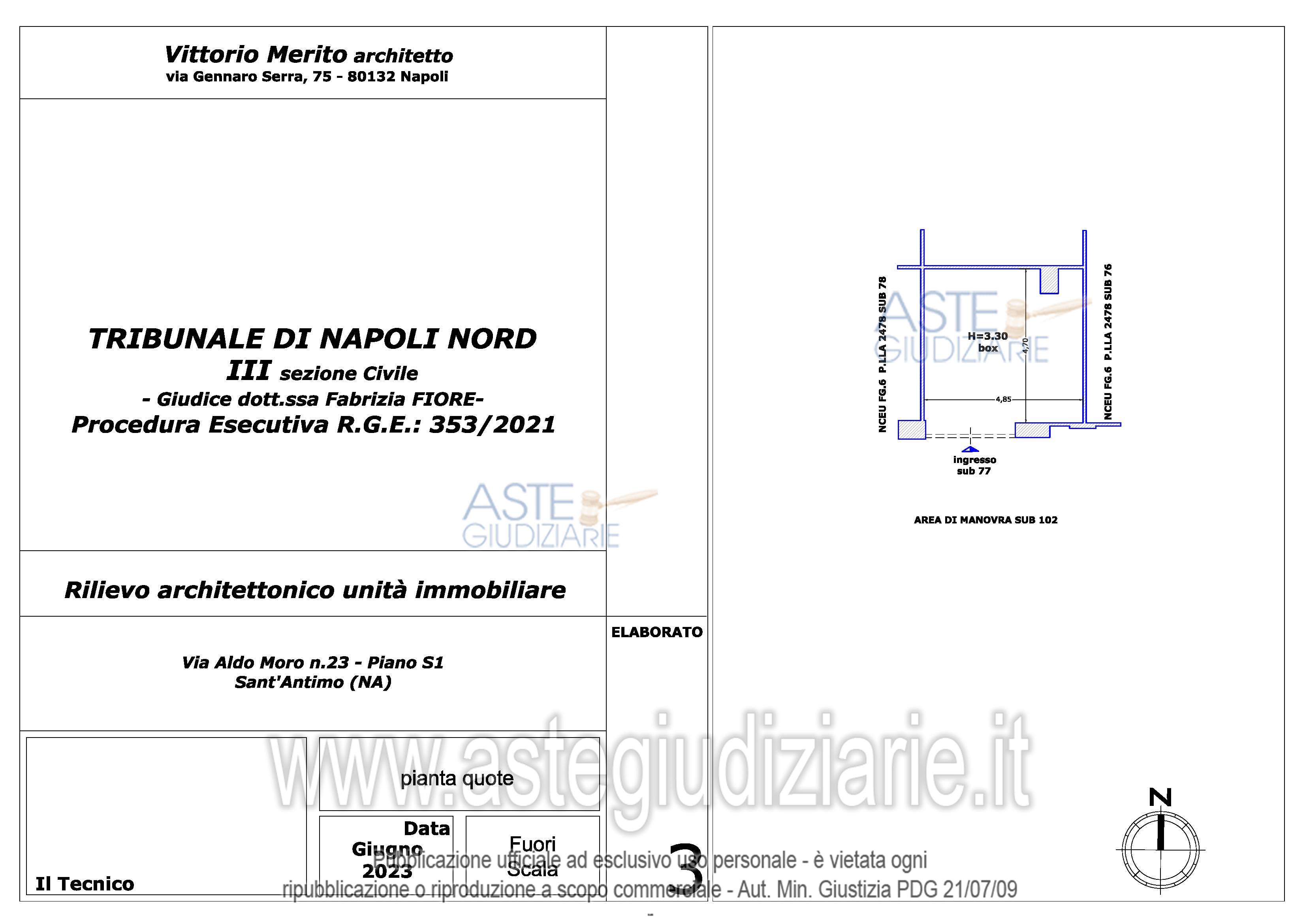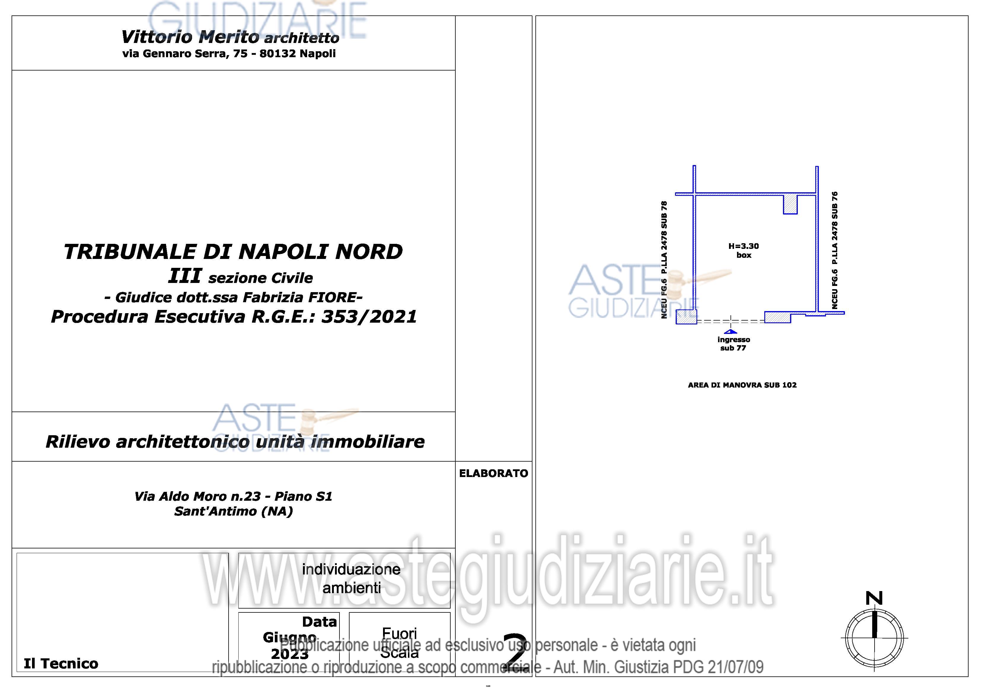 Vendita all'asta Senza incanto, con gara telematica asincrona - LOTTO 17: BENE 1 – Appartamento sito nel Comune di Sant’Antimo (Na) via Aldo Moro n° 55 (catastalmente civ. 23), scala A piano 5 “Parco Omissis” composto da soggiorno/cucina, n. 2 ambienti, n. 1 w.c., corridoio e n. 1 balcone in NCEU al foglio 6, particella 2478, sub. 26, cat. A/2, classe 6, consistenza 3 vani, sup. cat. totale 59 mq escluse aree scoperte 56 mq, rendita € 255,65. BENE 2 - Garage in NCEU foglio 6, particella 2478, sub. 77, cat. C/6, consistenza 21 mq, sup. cat. 23 mq. I beni de quibus sono liberi . Prezzo base € 70.000,00 (offerta minima € 52.500,00). Data inizio operazioni di vendita: 27/11/2025 ore 16:00. Custode Giudiziario Dott. Francesco Russo - Email "studiocasillorusso@libero.it"; Tel. 0815404454. Rif. Tribunale di Napoli Nord - Esecuzione immobiliare post legge 80 n. 353/2021