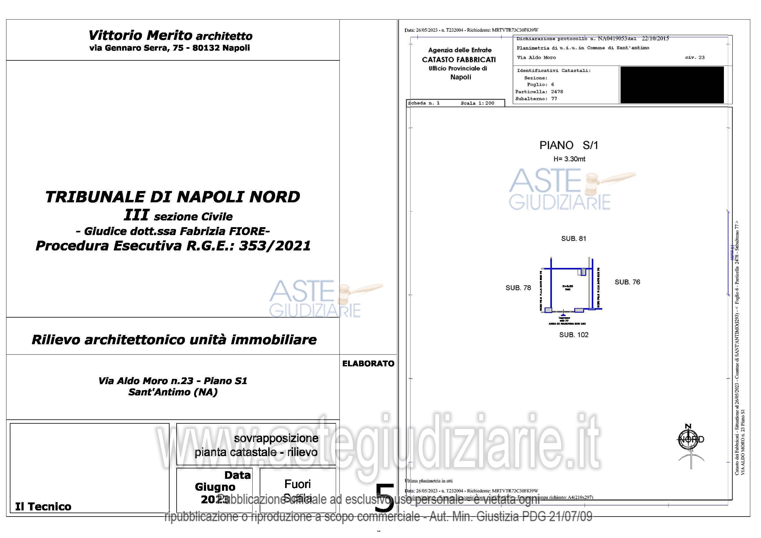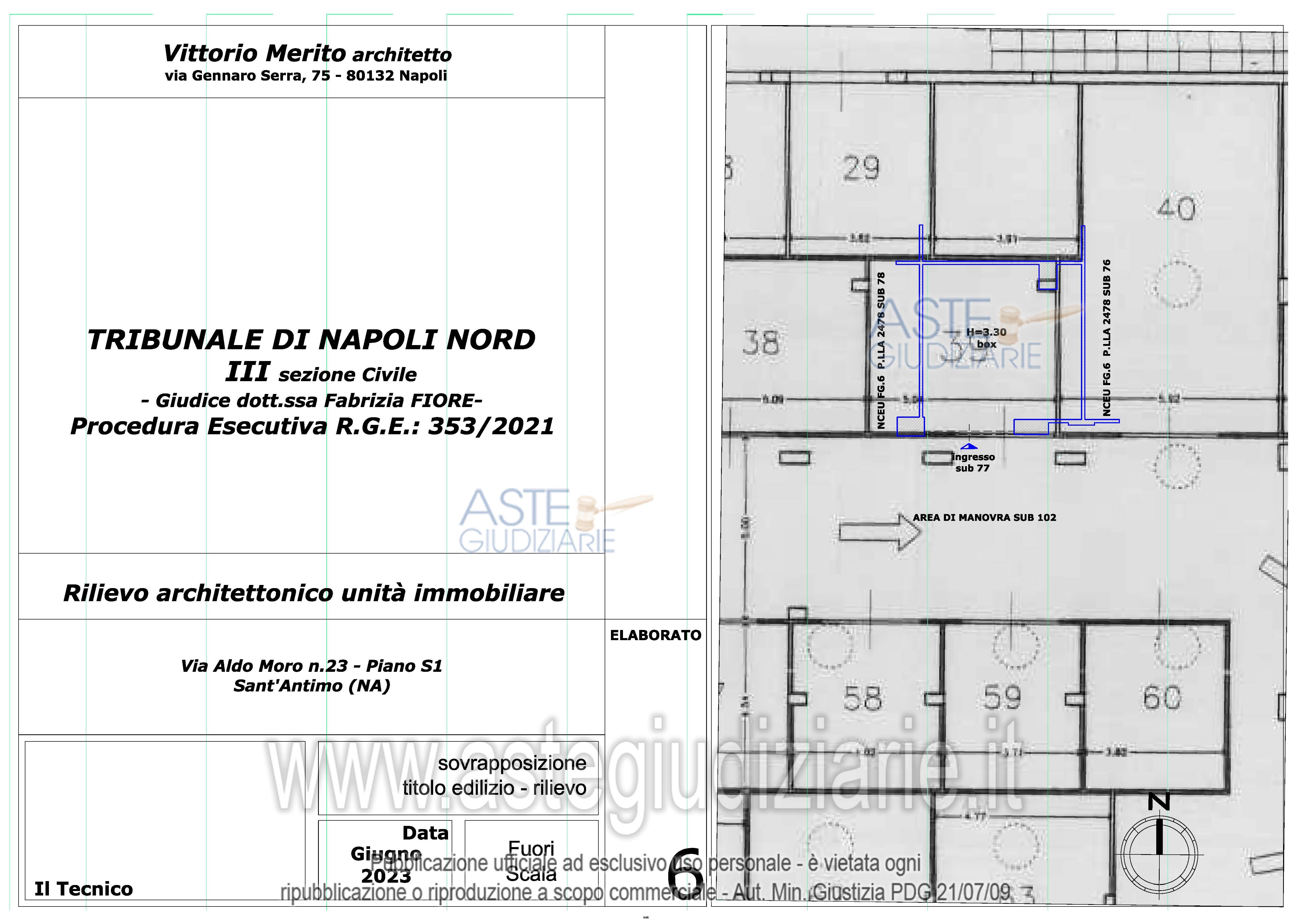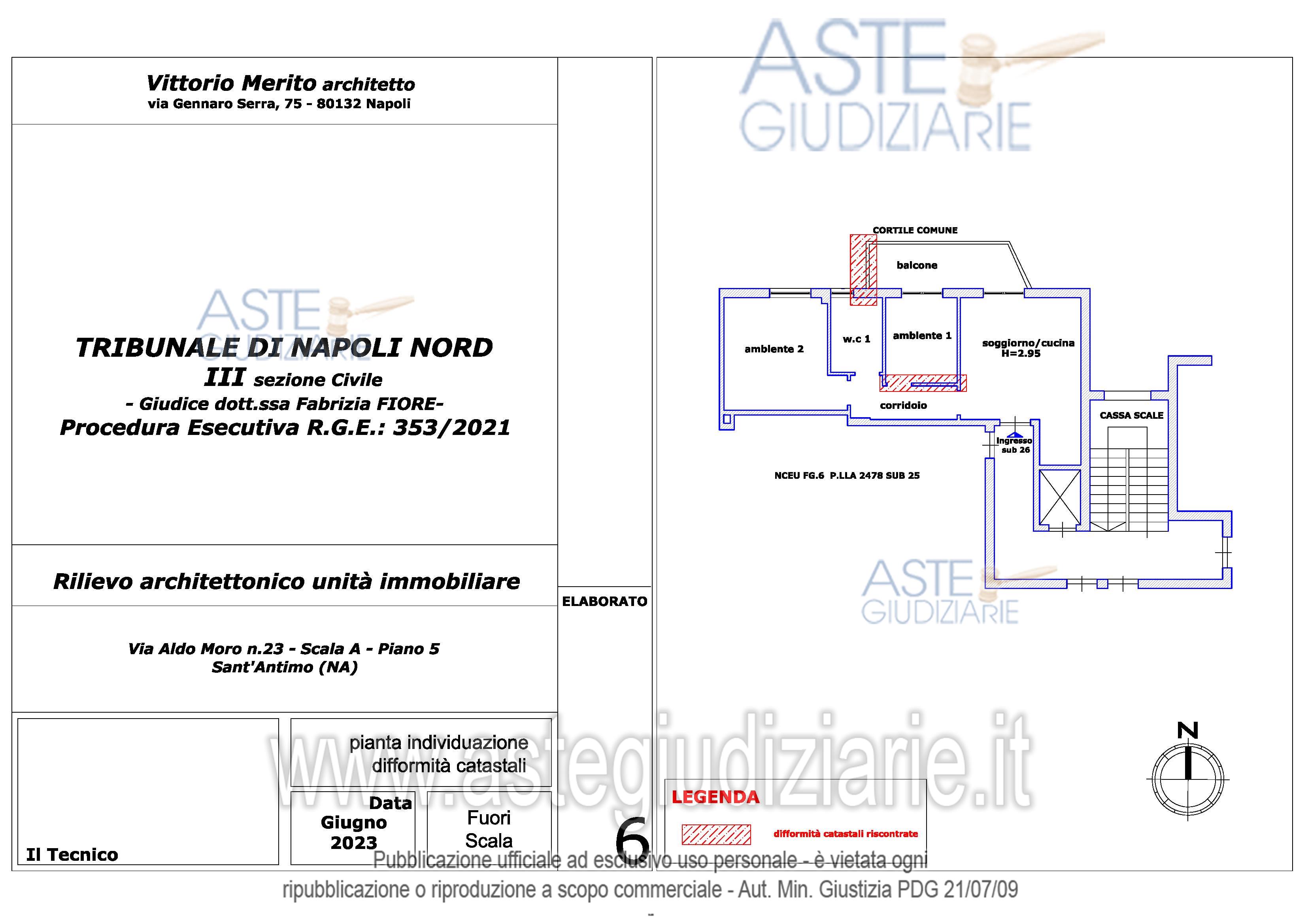 Vendita all'asta Senza incanto, con gara telematica asincrona - LOTTO 17: BENE 1 – Appartamento sito nel Comune di Sant’Antimo (Na) via Aldo Moro n° 55 (catastalmente civ. 23), scala A piano 5 “Parco Omissis” composto da soggiorno/cucina, n. 2 ambienti, n. 1 w.c., corridoio e n. 1 balcone in NCEU al foglio 6, particella 2478, sub. 26, cat. A/2, classe 6, consistenza 3 vani, sup. cat. totale 59 mq escluse aree scoperte 56 mq, rendita € 255,65. BENE 2 - Garage in NCEU foglio 6, particella 2478, sub. 77, cat. C/6, consistenza 21 mq, sup. cat. 23 mq. I beni de quibus sono liberi . Prezzo base € 70.000,00 (offerta minima € 52.500,00). Data inizio operazioni di vendita: 27/11/2025 ore 16:00. Custode Giudiziario Dott. Francesco Russo - Email "studiocasillorusso@libero.it"; Tel. 0815404454. Rif. Tribunale di Napoli Nord - Esecuzione immobiliare post legge 80 n. 353/2021