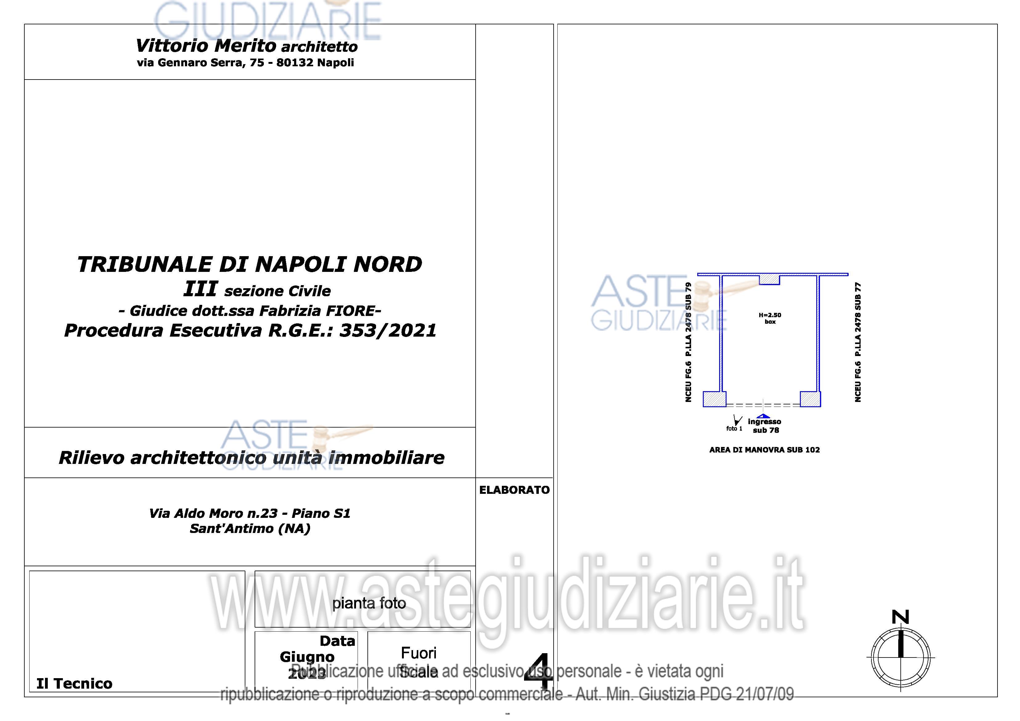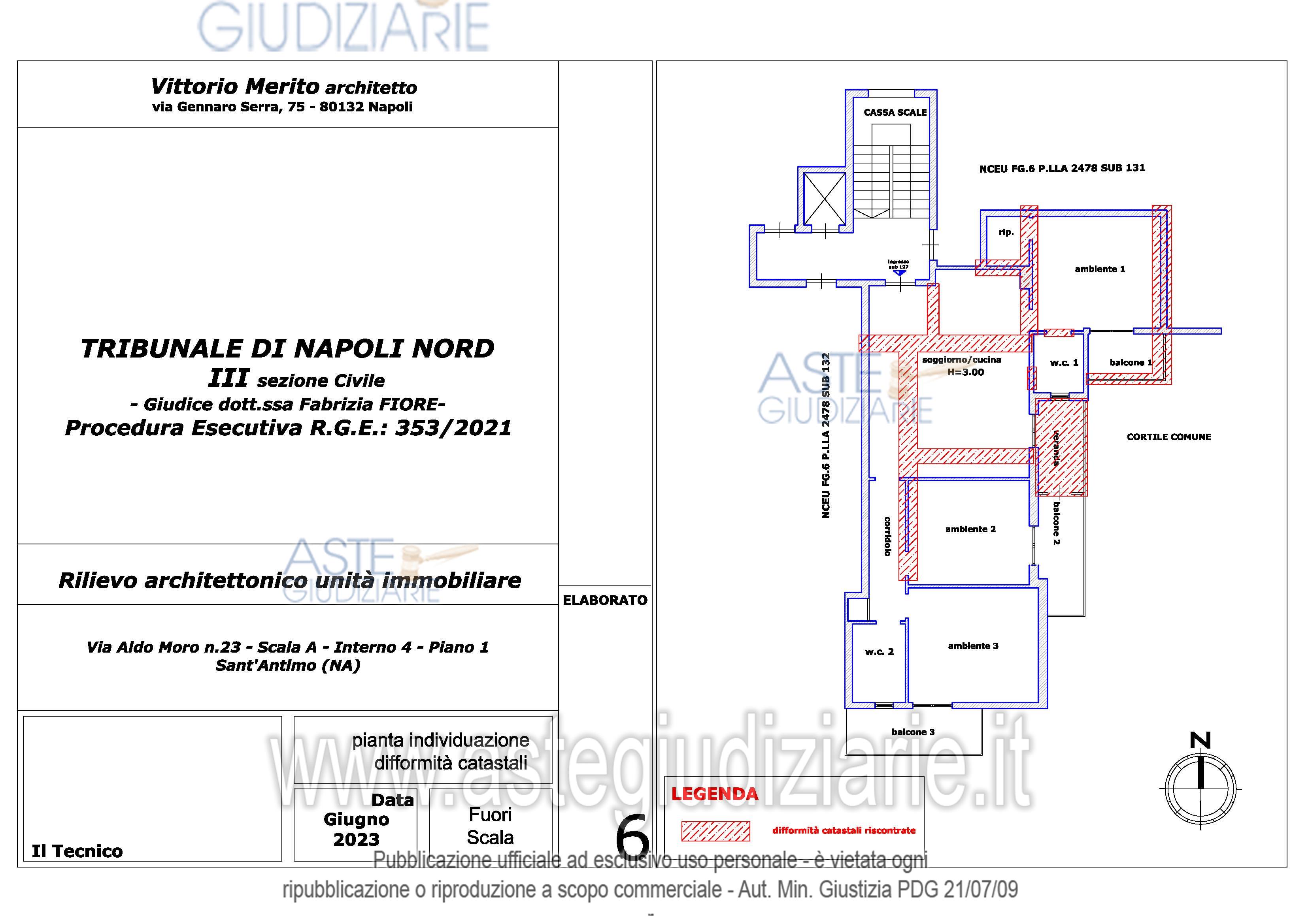 Vendita all'asta Senza incanto, con gara telematica asincrona - LOTTO 18: BENE 1 – Appartamento occupato sine titulo Comune di Sant’Antimo (Na) via Aldo Moro n° 55 (catastalmente civ. 23), scala A, interno 4, - piano 1 – “Parco Omissis” composto da: soggiorno/cucina, n. 3 ambienti, n. 2 w.c., corridoio, ripostiglio, veranda e n. 3 balconi in NCEU foglio 6, particella 2478, sub. 127, cat. A/2, classe 6, consistenza 5,5 vani, sup. cat. totale 114 mq. BENE 2 - Garage libero in NCEU del , foglio 6, particella 2478, sub. 78, cat. C/6, classe 3, consistenza 18 mq, sup. cat. 20 mq. . Prezzo base € 131.900,00 (offerta minima € 98.925,00). Data inizio operazioni di vendita: 27/11/2025 ore 16:00. Custode Giudiziario Dott. Francesco Russo - Email "studiocasillorusso@libero.it"; Tel. 0815404454. Rif. Tribunale di Napoli Nord - Esecuzione immobiliare post legge 80 n. 353/2021