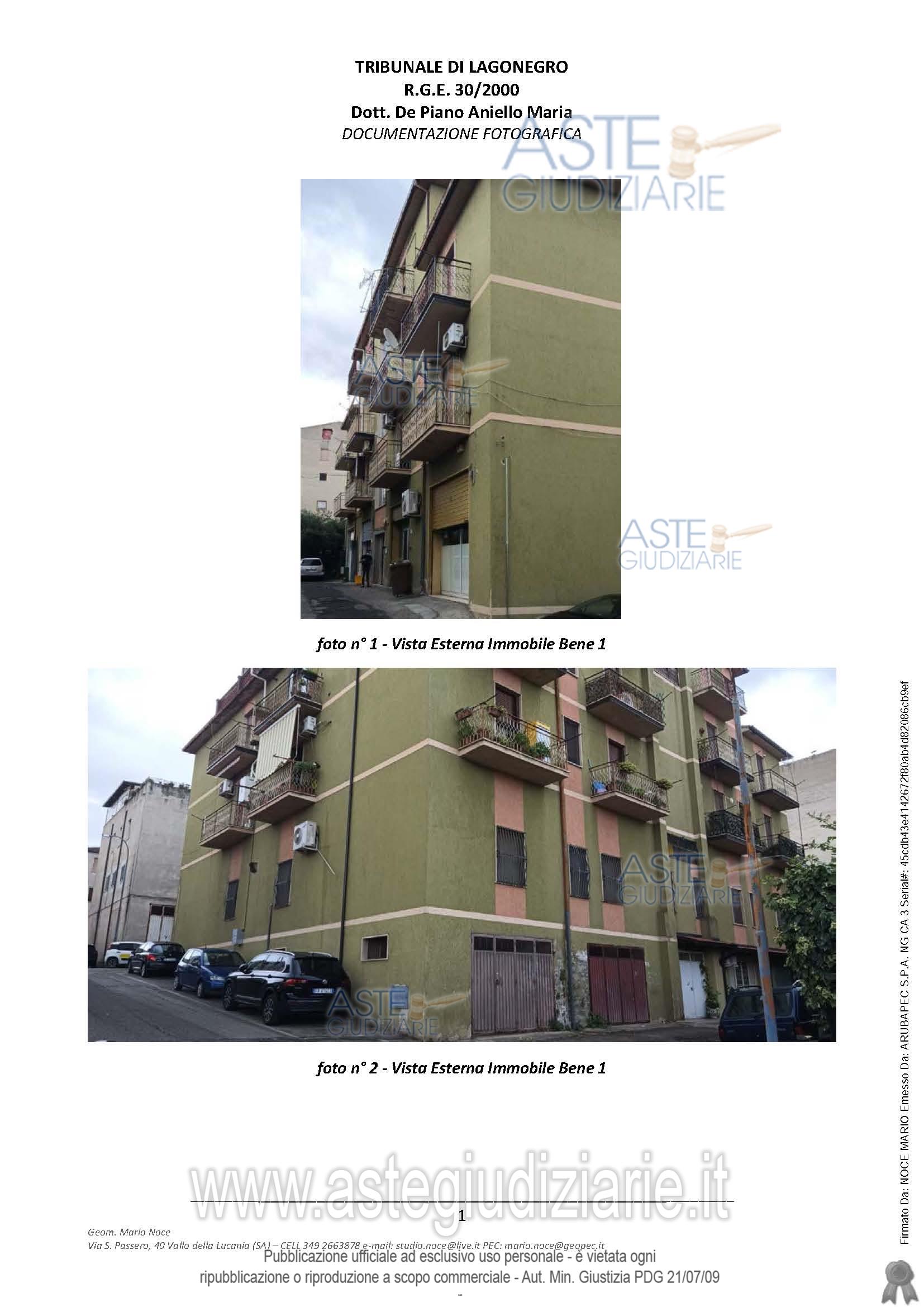 Vendita all'asta Senza incanto, con gara telematica asincrona - LOTTO UNICO: Appartamento, ad uso abitativo, con pertinente locale deposito . Prezzo base € 36.572,00 (offerta minima € 27.429,00). Data inizio operazioni di vendita: 24/03/2026 ore 16:00. Professionista delegato alla vendita Avv. Rosaria Galatro - Email "rosaria.galatro@virgilio.it"; Cell. 3319057060; Tel. 3319057060. Custode Giudiziario Avv. Rosaria Galatro - Email "rosaria.galatro@virgilio.it"; Cell. 3319057060; Tel. 3319057060. Rif. Tribunale di Lagonegro - Esecuzione immobiliare post legge 80 n. 30/2000