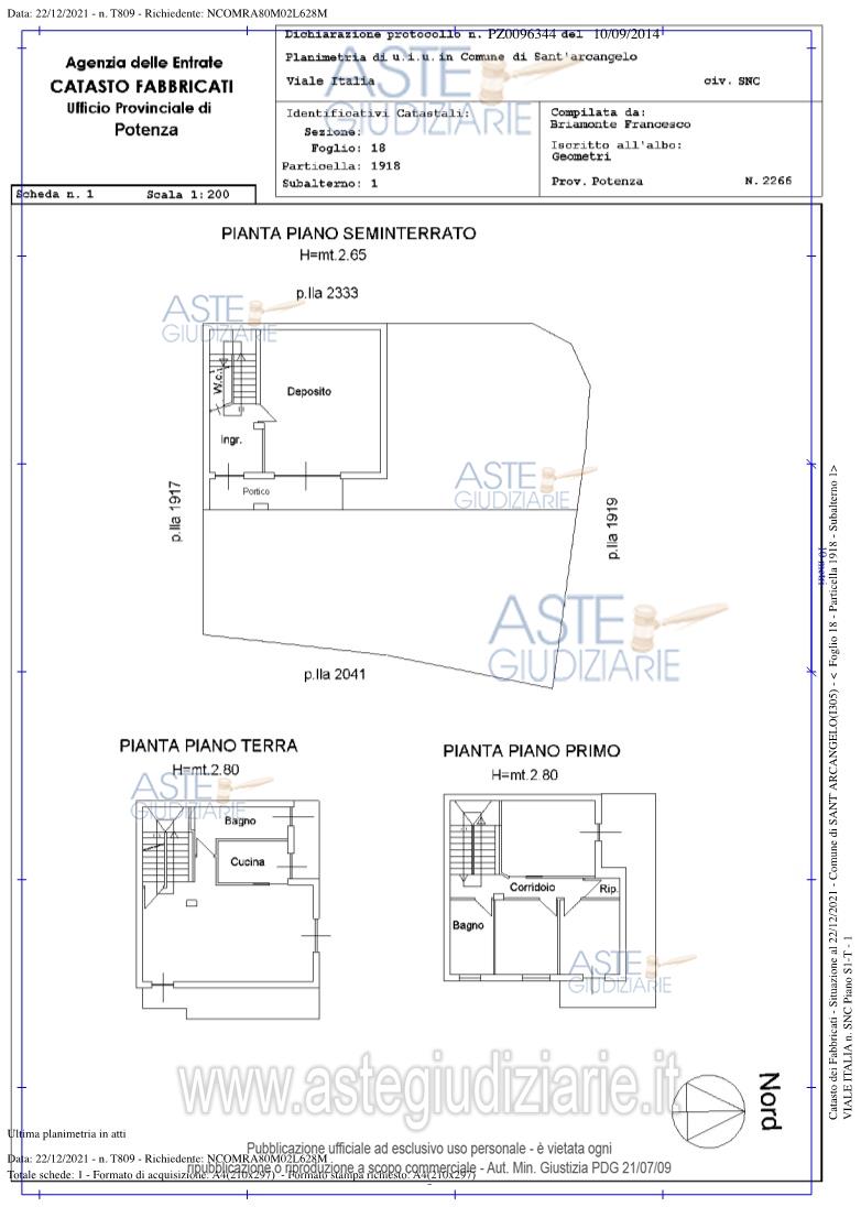 Vendita all'asta Senza incanto, con gara telematica asincrona - LOTTO UNICO: Abitazione, ubicata in Sant’Arcangelo (PZ) Viale Italia, snc Fg.18 Part. 1918 Sub.1. Prezzo base € 122.000,00 (offerta minima € 91.500,00). Data inizio operazioni di vendita: 08/04/2026 ore 15:00. Giudice Dott. Aniello Maria De Piano. Professionista delegato alla vendita Avv. Paolo Alfano - Email "paolo.alfano@gmail.com"; Cell. 3475175268. Custode Giudiziario Dott. Massimiliano Carnevale - Email "studiocommercialecarnevale@gmail.com"; Cell. 335495522. Rif. Tribunale di Lagonegro - Esecuzione immobiliare post legge 80 n. 84/2014