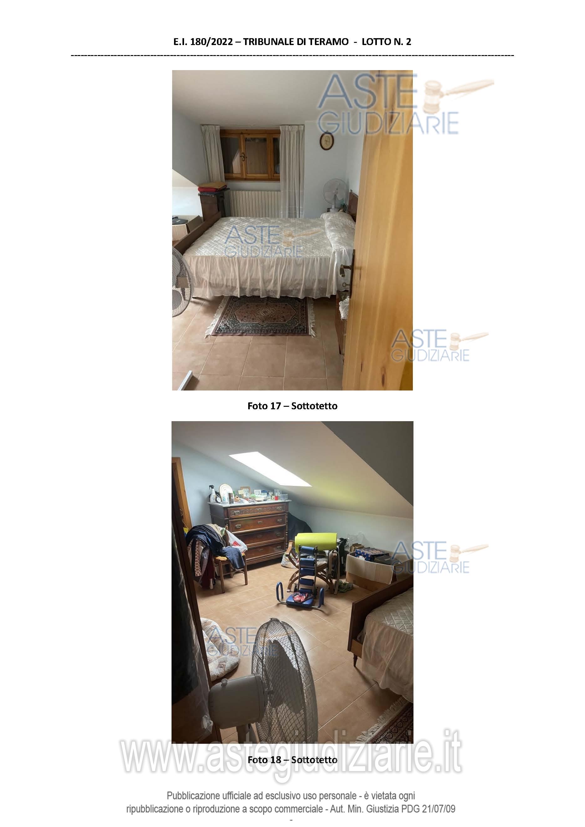 Vendita all'asta Senza incanto, con gara telematica asincrona - LOTTO 2: Appartamento al piano primo e soffitta al piano sottotetto con accesso al piano terra da scalinata interna esclusiva. Prezzo base € 180.000,00 (offerta minima € 135.000,00). Data inizio operazioni di vendita: 29/04/2026 ore 15:00. Giudice Flavio Conciatori. Professionista delegato alla vendita Dott. Ivan Di Cesare - Email "ivandicesare@tin.it"; Cell. 3292737358. Custode Giudiziario Dott. Ivan Di Cesare - Email "ivandicesare@tin.it"; Cell. 3292737358. Rif. Tribunale di Teramo - Esecuzione immobiliare post legge 80 n. 180/2022