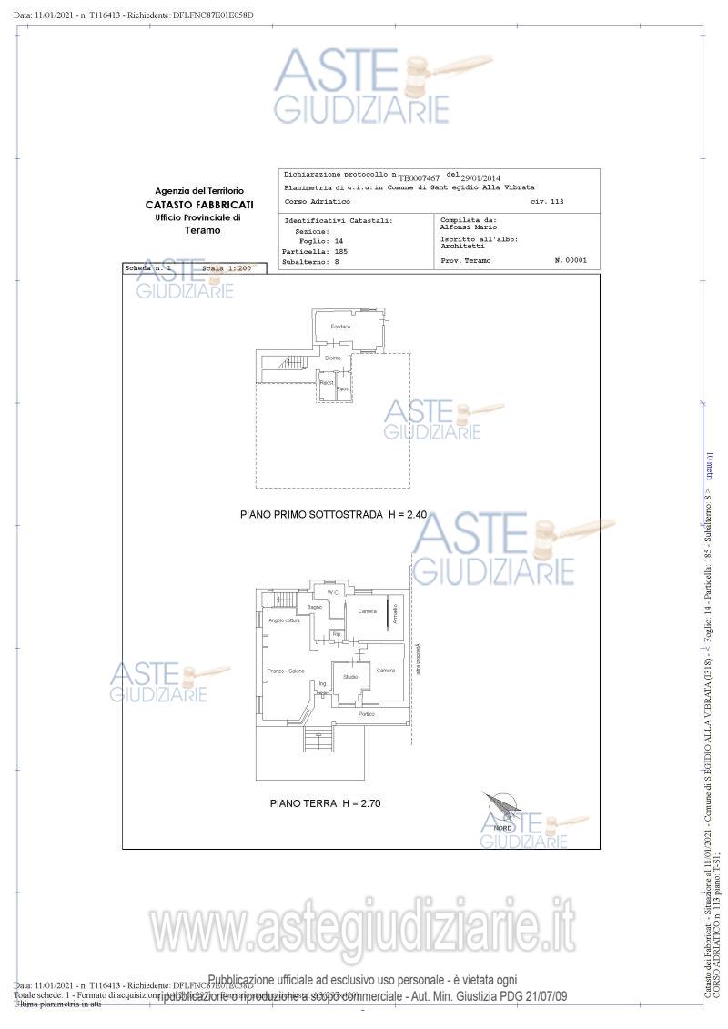 Vendita all'asta Senza incanto, con gara telematica asincrona - LOTTO UNICO: Piena proprietà su appartamento di Civile abitazione posto al piano terra, della superficie catastale di mq. 157 circa. L'edificio, sito a Sant'Egidio alla Vibrata, è collocato in zona centrale, in Corso Adriatico. Prezzo base € 96.000,00 (offerta minima € 72.000,00). Data inizio operazioni di vendita: 28/01/2026 ore 15:00. Professionista delegato alla vendita Dott. Angiolino Di Francesco - Email "angiolinodifrancesco@gmail.com"; Cell. 3356572793; Tel. 0858005789. Custode Giudiziario Dott. Angiolino Di Francesco - Email "angiolinodifrancesco@gmail.com"; Cell. 3356572793; Tel. 0858005789. Rif. Tribunale di Teramo - Esecuzione immobiliare post legge 80 n. 156/2020