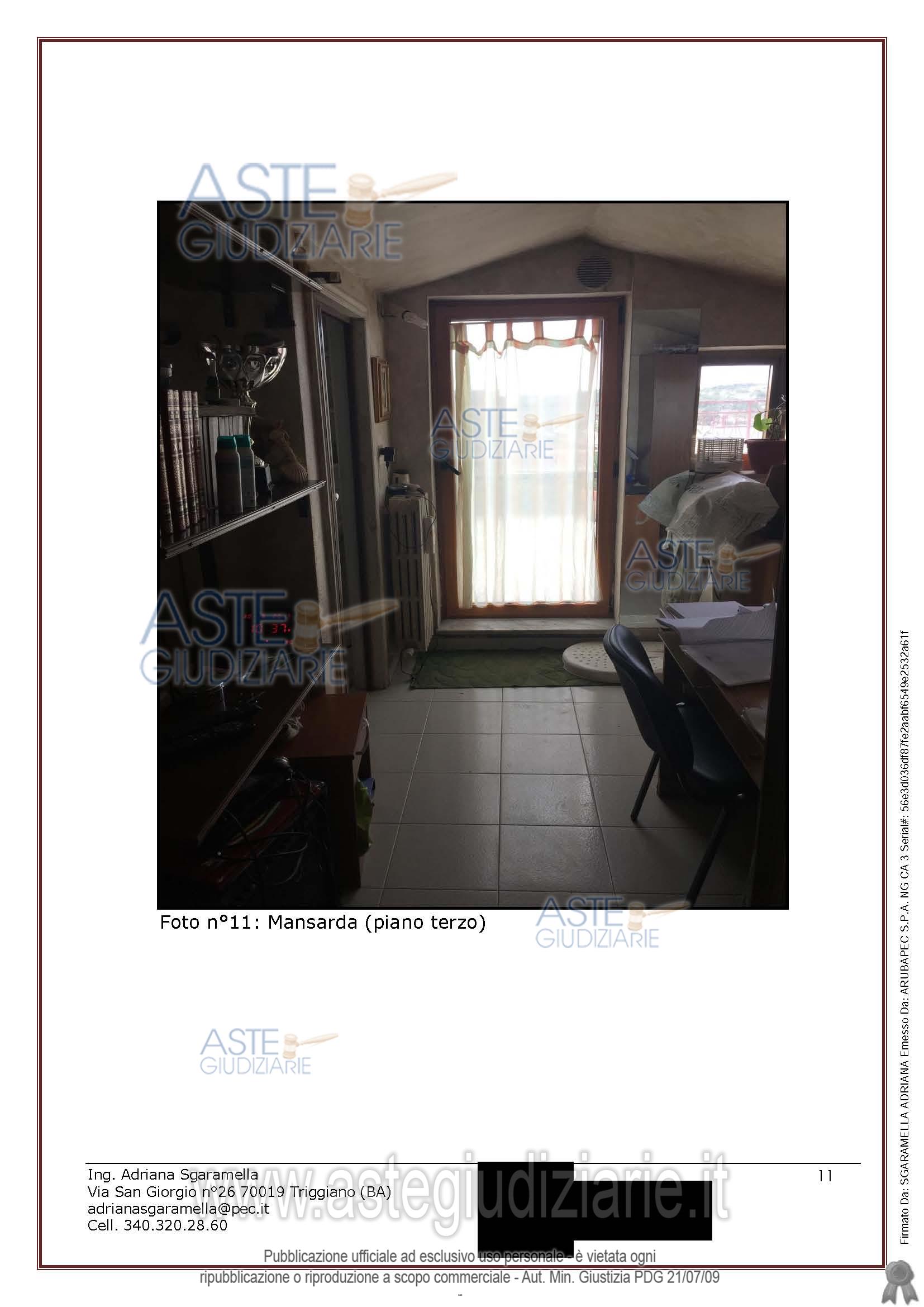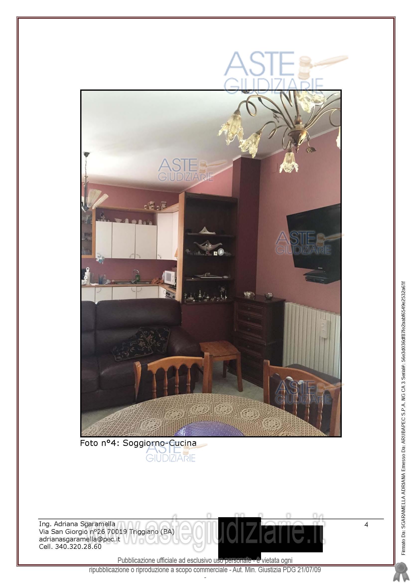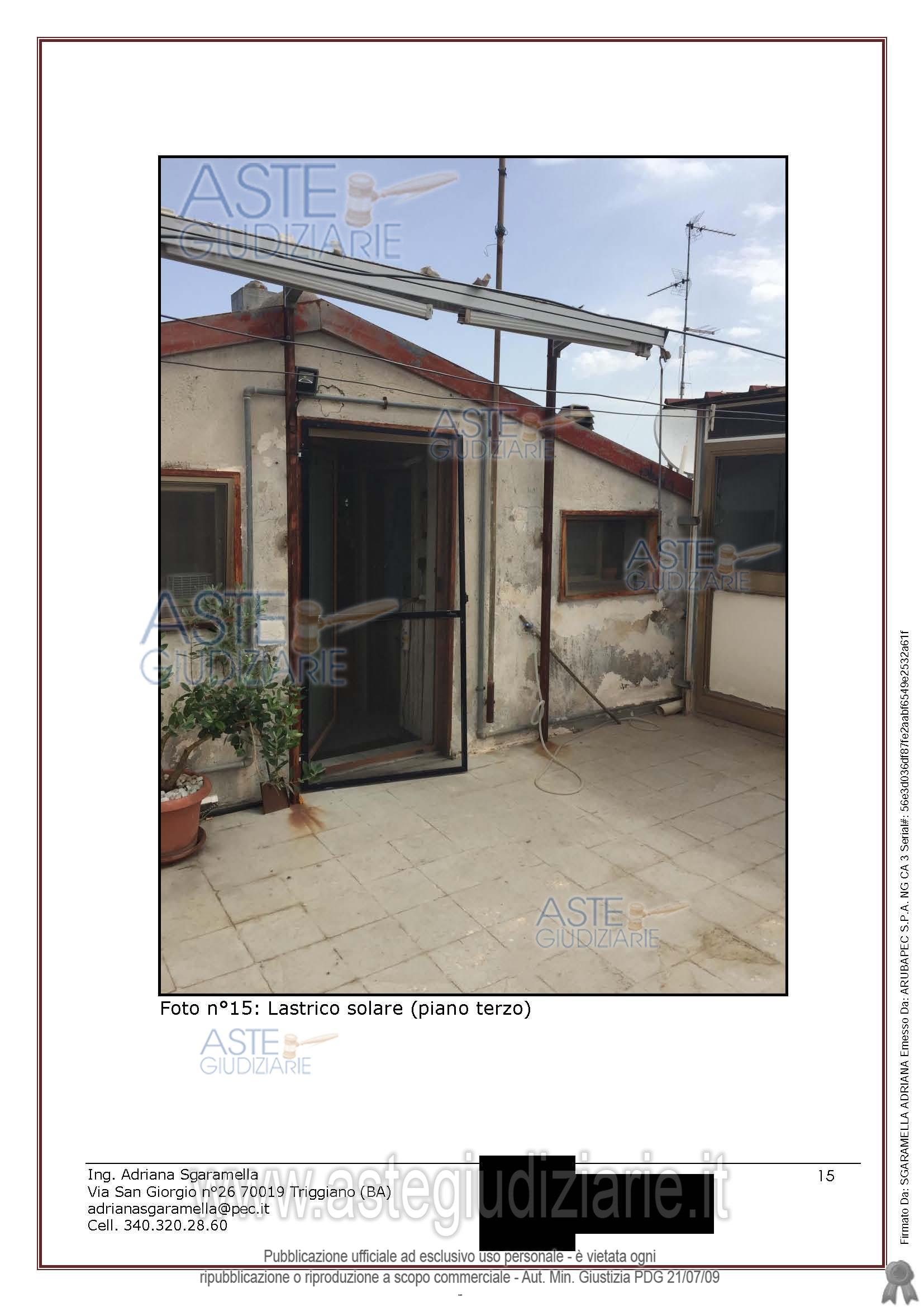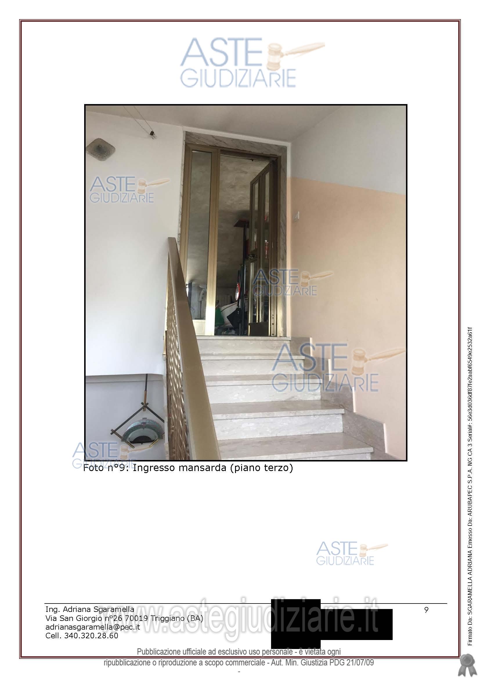 Vendita all'asta Senza incanto, con gara telematica asincrona - LOTTO 1: Abitazione composta da cucina soggiorno tipo open-space, due camere da letto e bagno, dotata di due balconi con affaccio sulla via Pisani e sulla via Laterza; l'immobile si completa di una mansarda ubicata al piano terzo, censita come deposito, cui si accede dallo stesso vano scala che permette l'ingresso all'abitazione. Inoltre è pertinenziale del deposito una porzione di lastrico solare. Prezzo base € 53.630,00 (offerta minima € 40.223,00). Data inizio operazioni di vendita: 12/03/2026 ore 11:00. Giudice Dott. Marina Cavallo. Professionista delegato alla vendita Avv. Maria Stella Tritto - Email "stellatritto@libero.it". Custode Giudiziario Avv. Maria Stella Tritto - Email "stellatritto@libero.it". Rif. Tribunale di Bari - Esecuzione immobiliare post legge 80 n. 98/2017